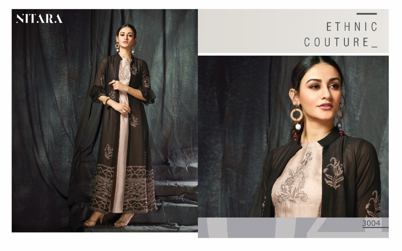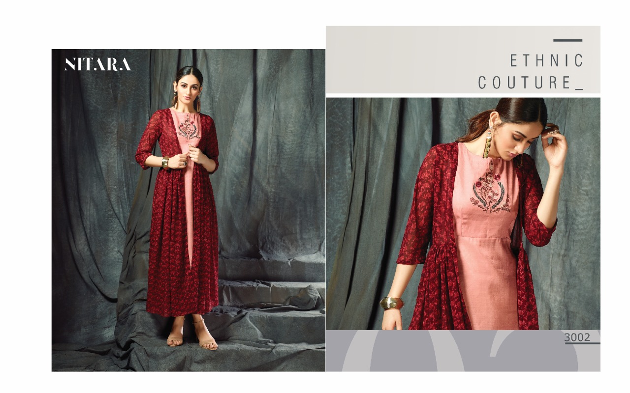 *NITARA* is back with one the Most awaited collection of the season *Anoli* - Cape jackets with Inner and embroidery. ? Catlog Name - *ANOLI* ?Fabric- *JACKET - GEORGETTE , INNER - SILK* ?No. Of Piece - *5* ?Avg. Price - *1195/-* Per Piece ?Size Available - *M,L,XL,XXL* ?Dispatch Date- from today . Set only . GST extra . ?Only Full set. |