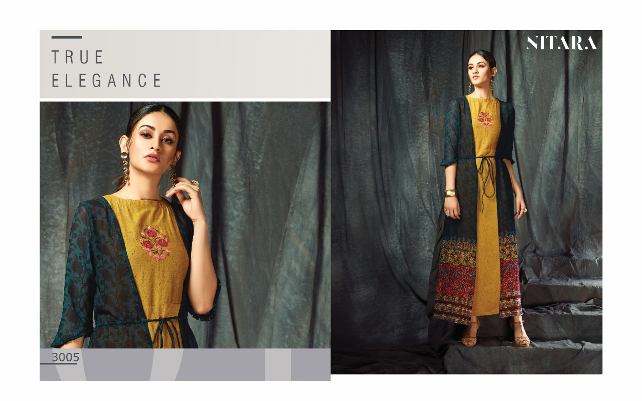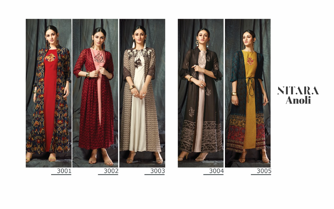 Buy Online Anoli By Nitara 3001 Series Fancy Georgette Party Wear Kurti Catlog Wholesale Dealer Surat 5 Pcs of Full Catalogue at Wholesale Price. Looking for Anoli By Nitara 3001 Series Fancy Georgette Party Wear Kurti Catlog Wholesale Dealer Surat Full Catalouge at Best Price? Buy Now Anoli By Nitara 3001 Series Fancy Georgette Party Wear Kurti Catlog Wholesale Dealer Surat at Wholesale Rate of Rs 5975 with Total 5 Pcs from authroized dealer and supplier of NITARA Brand. Cost of Each piece is just only Rs 1195 which is very low and affordable price to resale the product in your retail store ,This is Surat based Wholesale Supplier & Dealer of NITARA Brand. Click on Brand name to Know more about NITARA Brand's products.Call or Whatsapp on 9898838984 for booking or enquiry