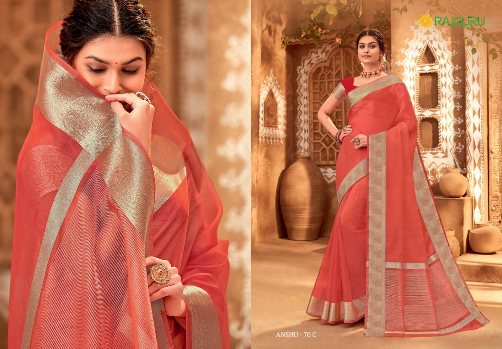 Anshu Vol 70 Contrast By Rajguru Fancy Saree With Blouse