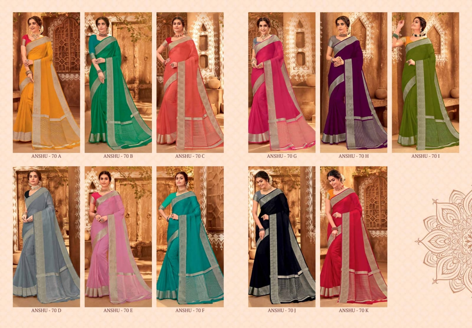 Buy Online Anshu Vol 70 Contrast By Rajguru Fancy Saree With Blouse 11 Pcs of Full Catalogue at Wholesale Price. Looking for Anshu Vol 70 Contrast By Rajguru Fancy Saree With Blouse Full Catalouge at Best Price? Buy Now Anshu Vol 70 Contrast By Rajguru Fancy Saree With Blouse at Wholesale Rate of Rs 0 with Total 11 Pcs from authroized dealer and supplier of Brand. Cost of Each piece is just only Rs 0 which is very low and affordable price to resale the product in your retail store ,This is Surat based Wholesale Supplier & Dealer of Brand. Click on Brand name to Know more about Brand's products.Call or Whatsapp on 9898838984 for booking or enquiry