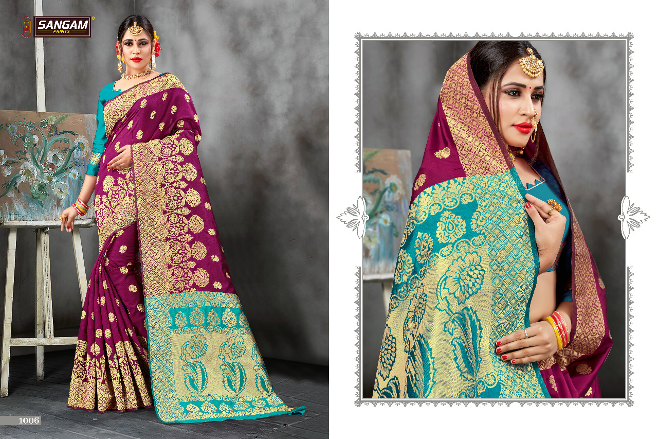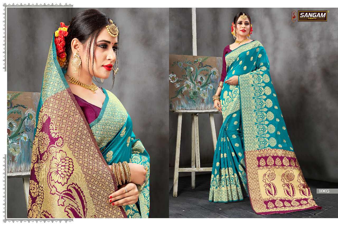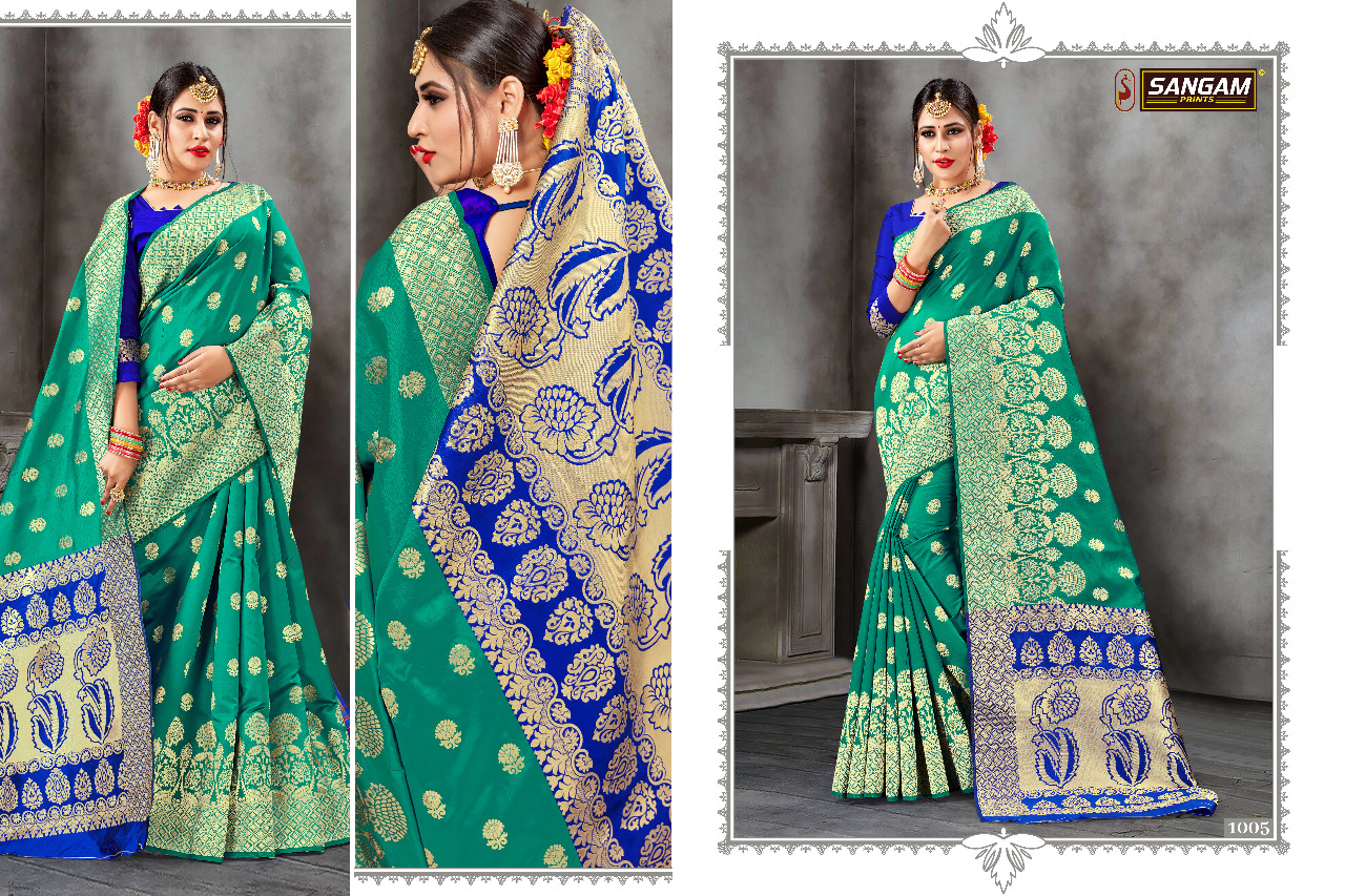 Buy Online Antara By Sangam Series 1001 To 1008 Silk Buti Designer Occasion Wear Sarees Wholesale Suppliers And Dealer Surat 8 Pcs of Full Catalogue at Wholesale Price. Looking for Antara By Sangam Series 1001 To 1008 Silk Buti Designer Occasion Wear Sarees Wholesale Suppliers And Dealer Surat Full Catalouge at Best Price? Buy Now Antara By Sangam Series 1001 To 1008 Silk Buti Designer Occasion Wear Sarees Wholesale Suppliers And Dealer Surat at Wholesale Rate of Rs 7400 with Total 8 Pcs from authroized dealer and supplier of SANGAM Brand. Cost of Each piece is just only Rs 925 which is very low and affordable price to resale the product in your retail store ,This is Surat based Wholesale Supplier & Dealer of SANGAM Brand. Click on Brand name to Know more about SANGAM Brand's products.Call or Whatsapp on 9898838984 for booking or enquiry