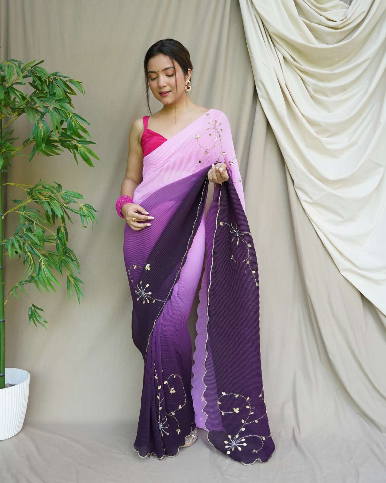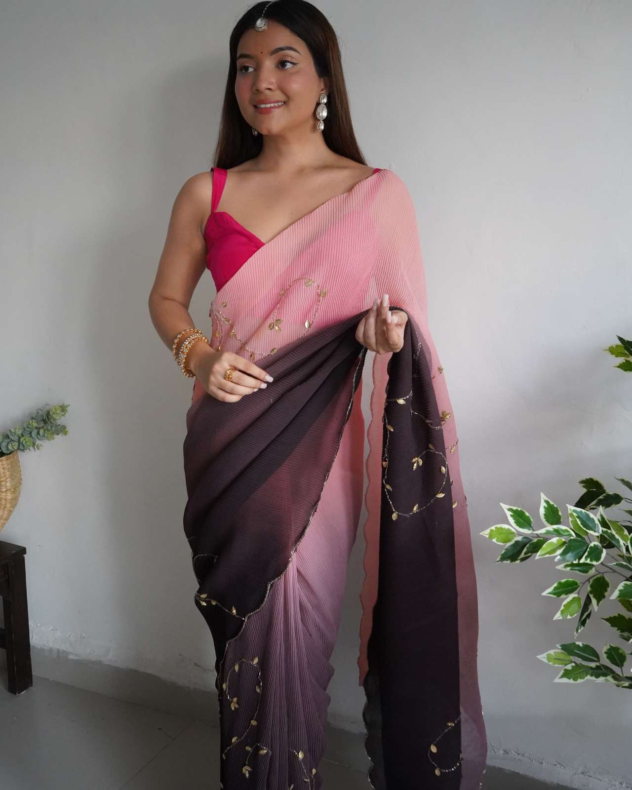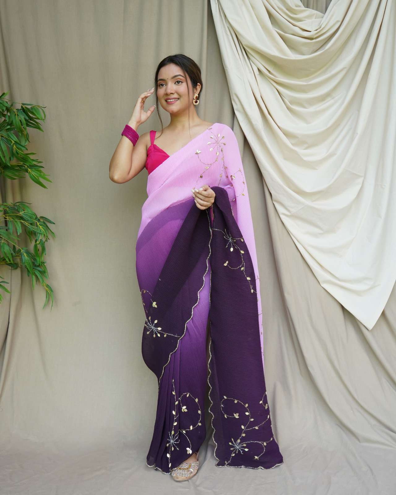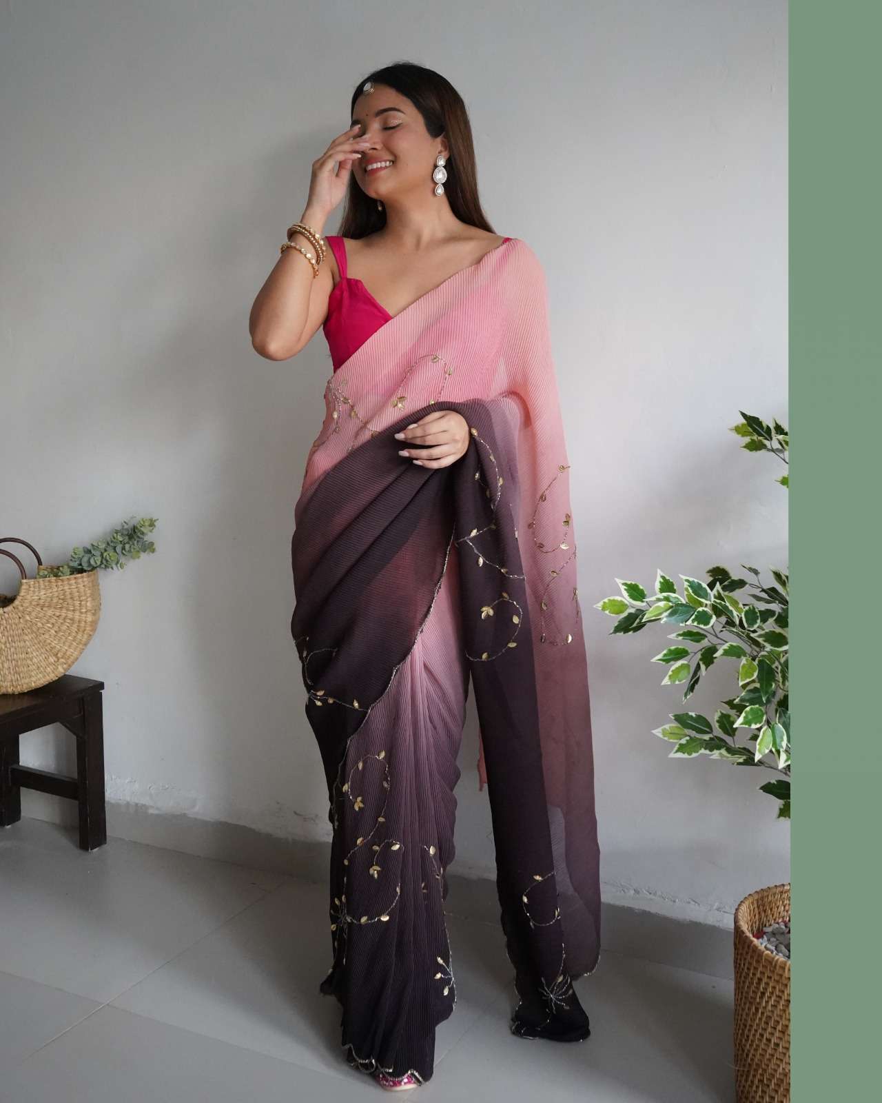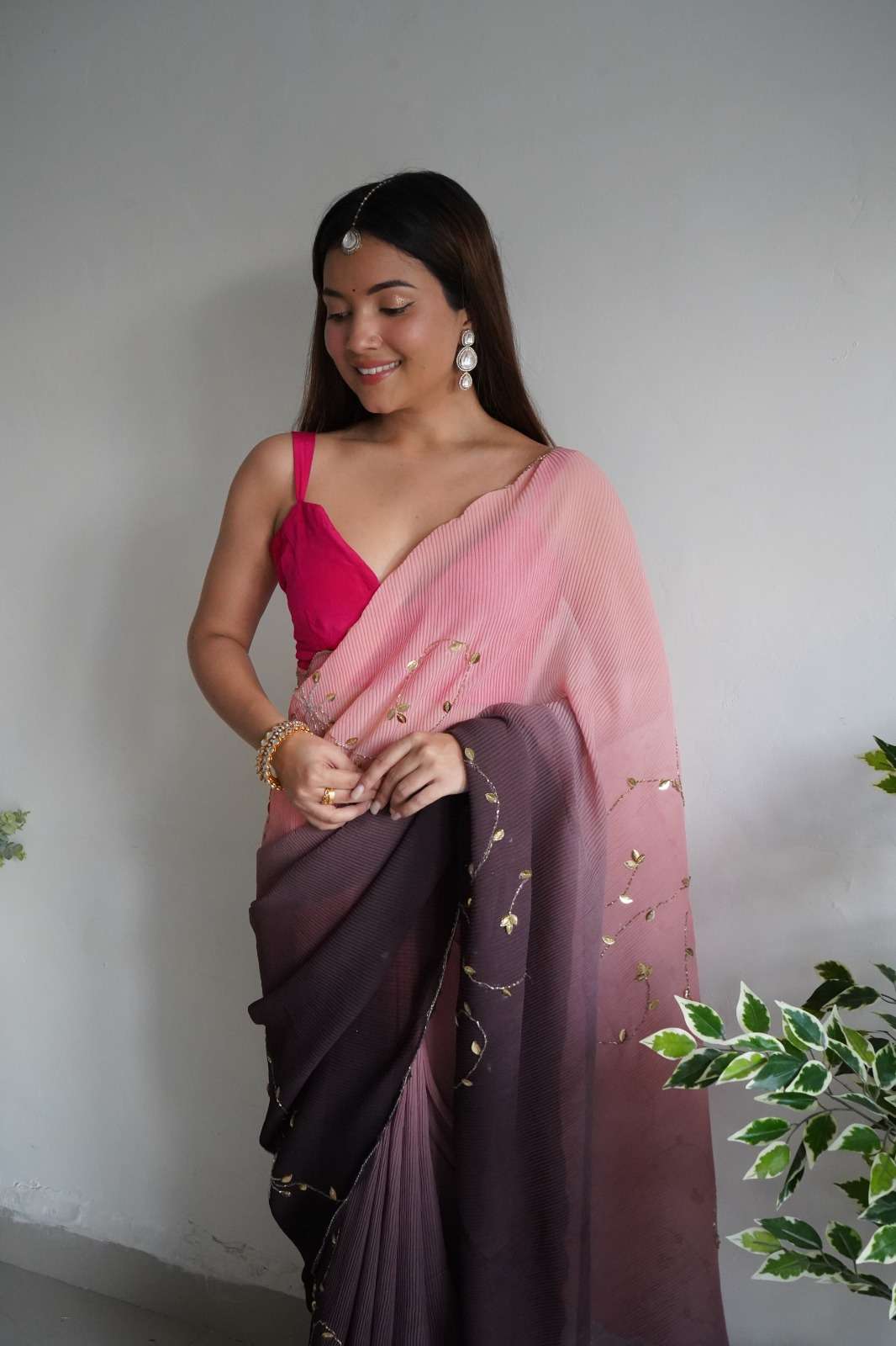 Catalog Name : *ANTARA* No of Pcs : 4 Fabric : Georgette Work :Crushed Hand Work With Cut Work with banglori sattin silk blouse