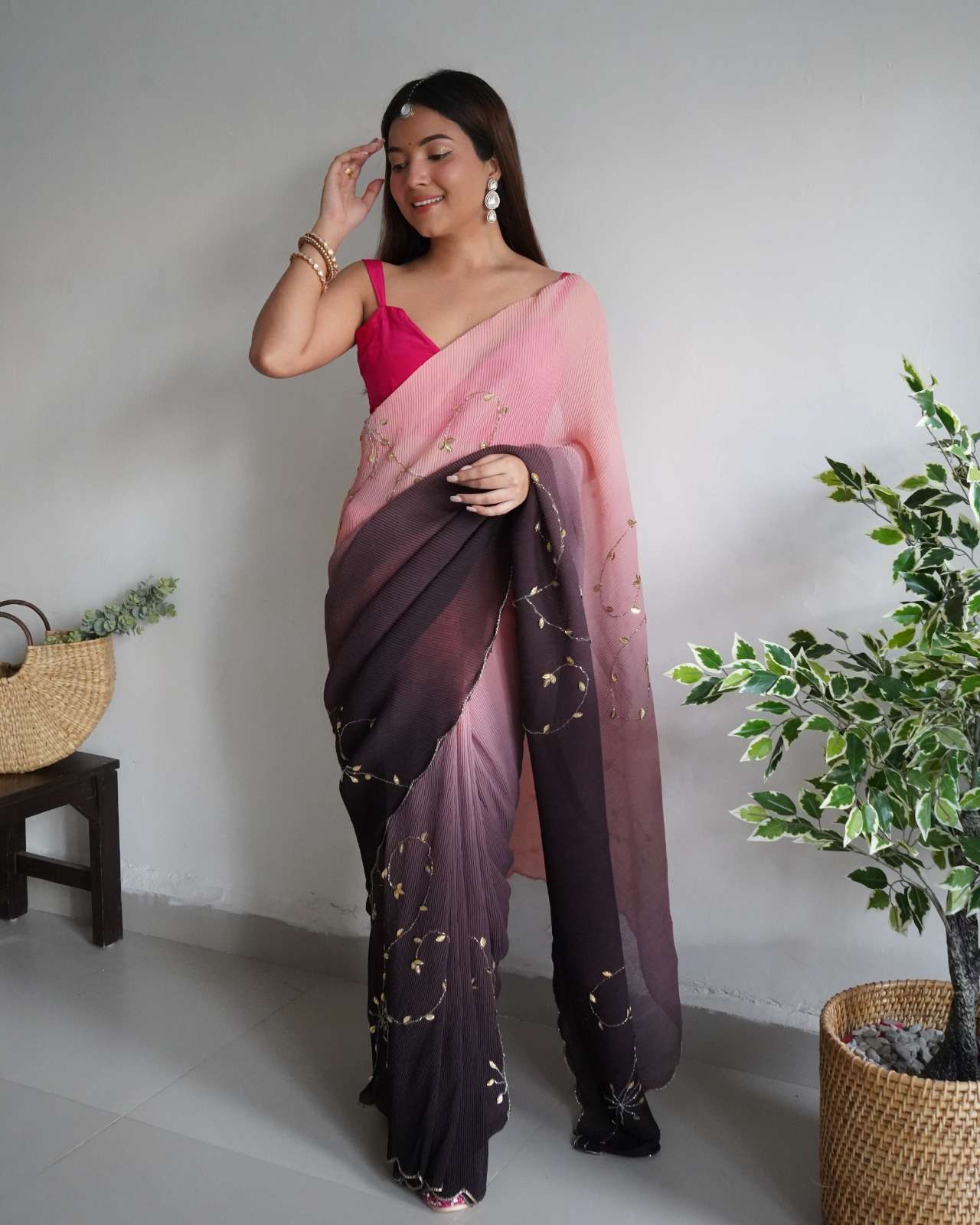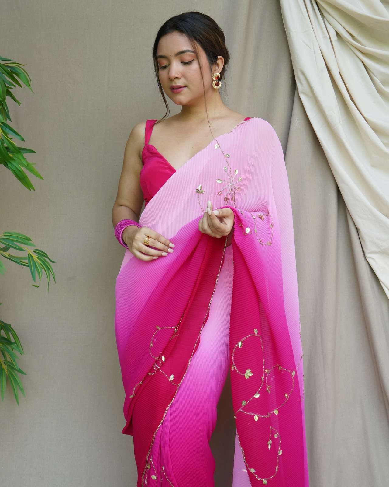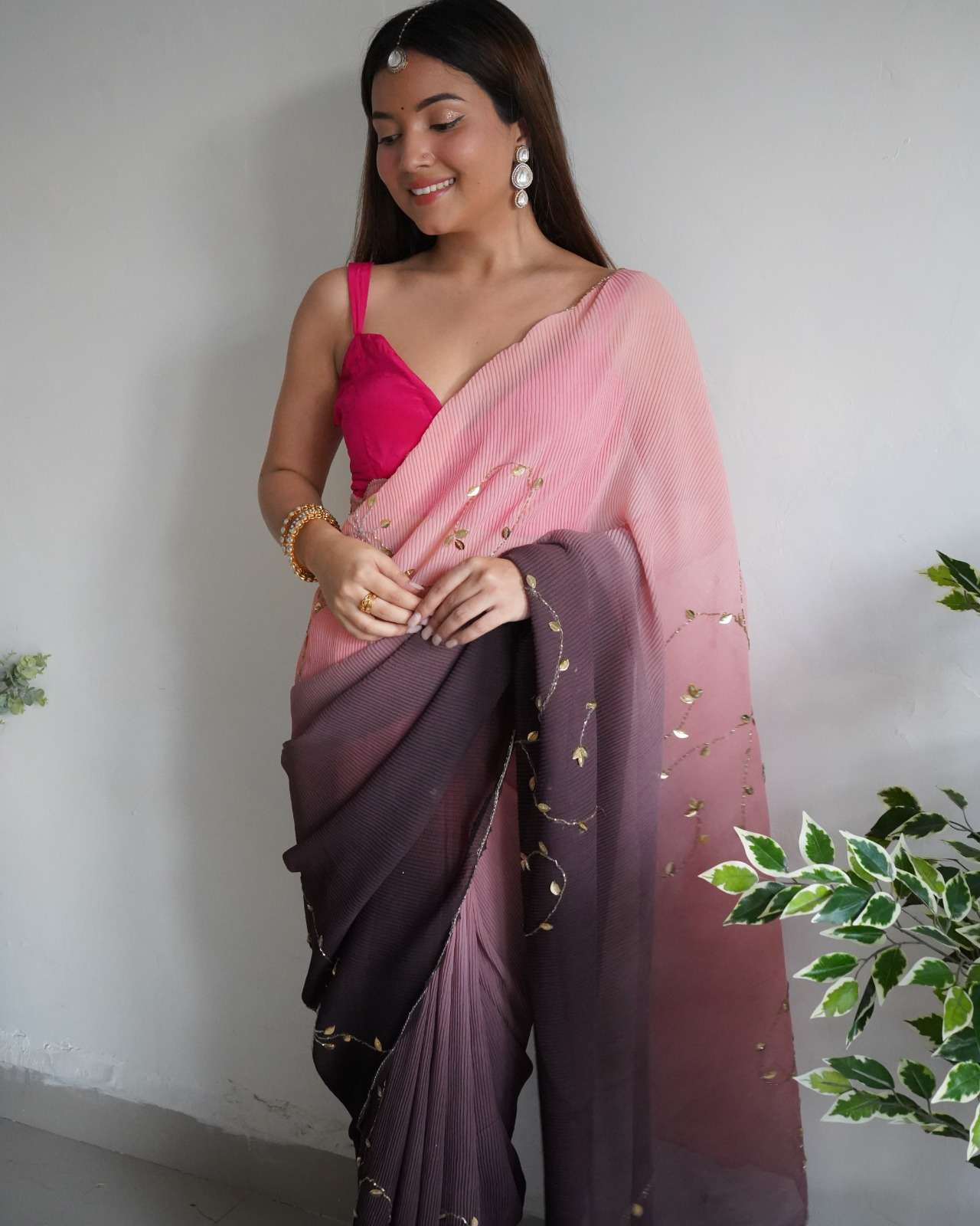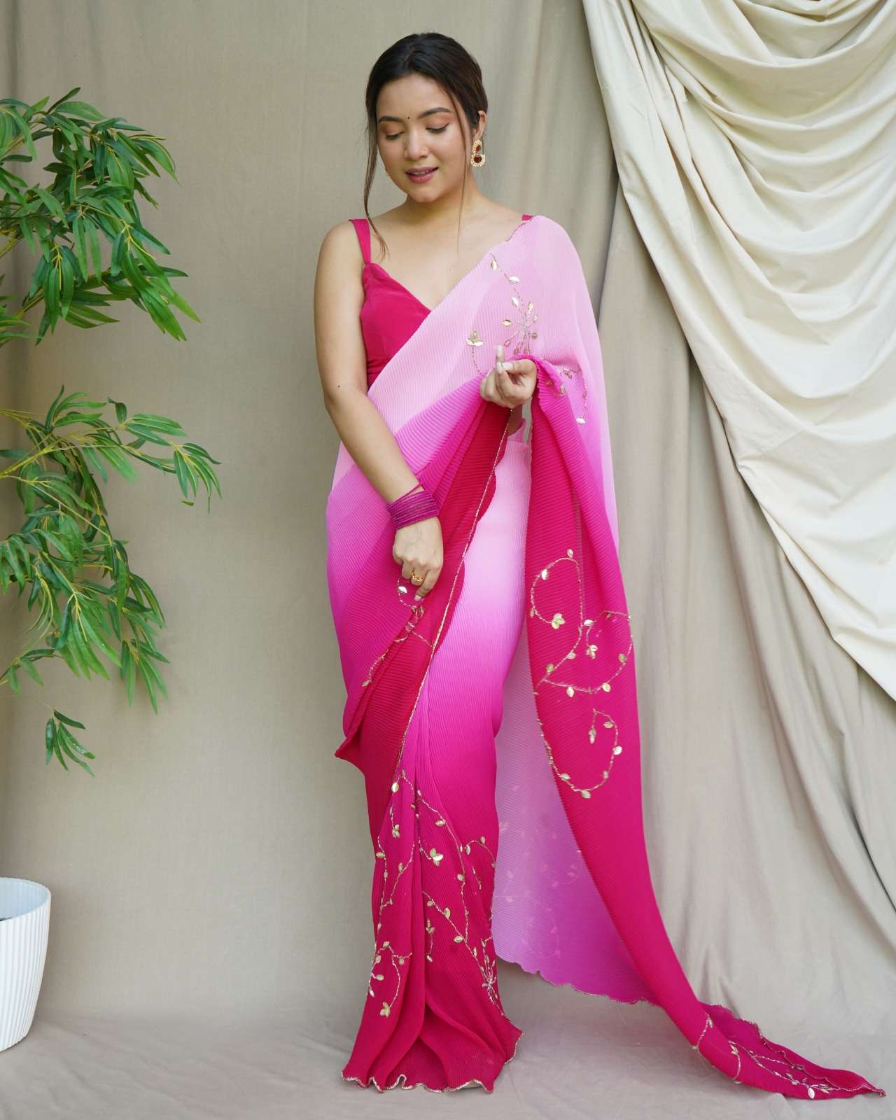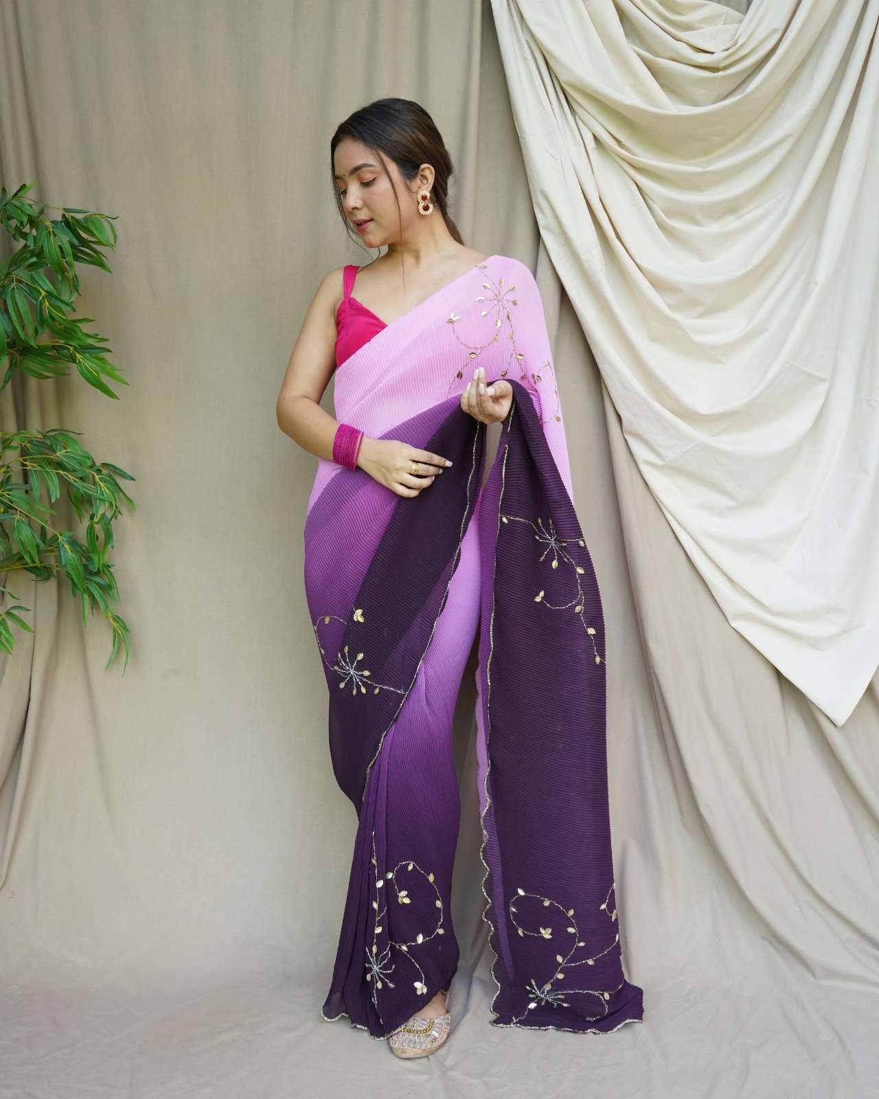 Catalog Name : *ANTARA* No of Pcs : 4 Fabric : Georgette Work :Crushed Hand Work With Cut Work with banglori sattin silk blouse