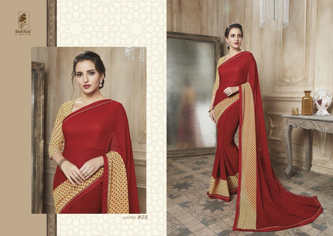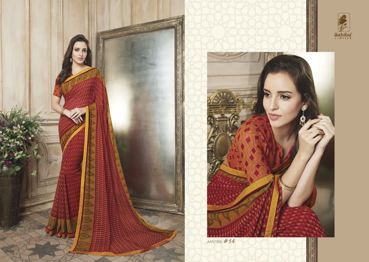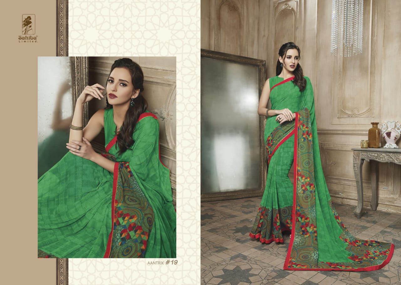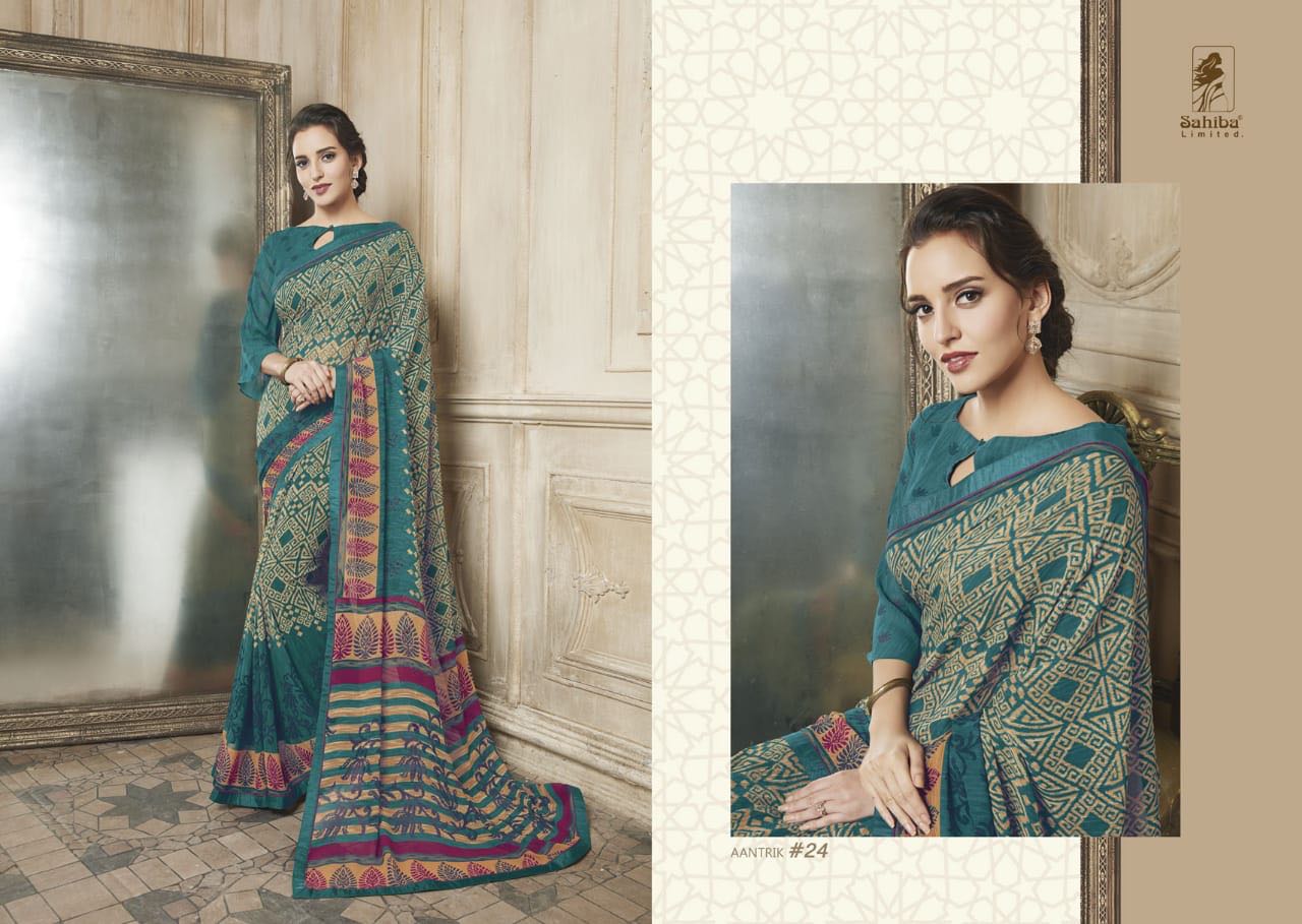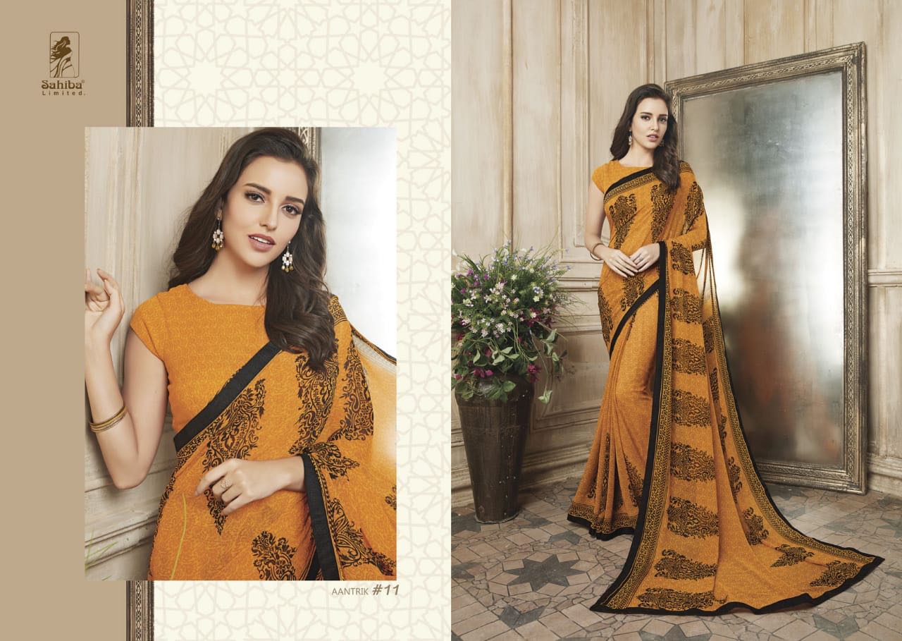 Buy Online Antarik By Sahiba Georgette Printed Sarees Wholesale Supplier And Dealer India 18 Pcs of Full Catalogue at Wholesale Price. Looking for Antarik By Sahiba Georgette Printed Sarees Wholesale Supplier And Dealer India Full Catalouge at Best Price? Buy Now Antarik By Sahiba Georgette Printed Sarees Wholesale Supplier And Dealer India at Wholesale Rate of Rs 11700 with Total 18 Pcs from authroized dealer and supplier of SAHIBA Brand. Cost of Each piece is just only Rs 650 which is very low and affordable price to resale the product in your retail store ,This is Surat based Wholesale Supplier & Dealer of SAHIBA Brand. Click on Brand name to Know more about SAHIBA Brand's products.Call or Whatsapp on 9898838984 for booking or enquiry