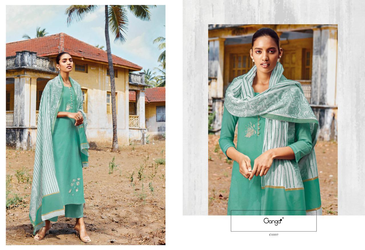 ANTIQUE MYSTER BY GANGA WHOLESALE *GANGA* TOP-PURE SUPERIOR COTTON PRINTED WITH EMBROIDERY & HANDWORK BOTTOM-COTTON DUPATTA-PURE FINEST SILK JACQUARD WITH BLOCK PRINT |