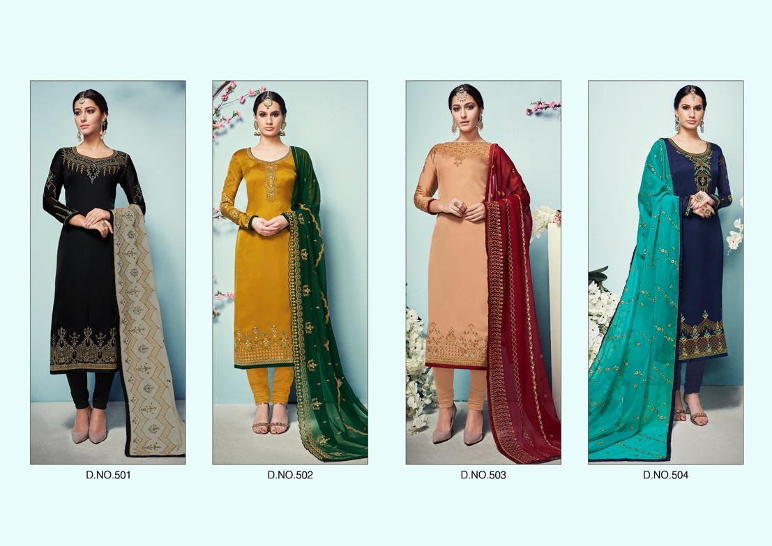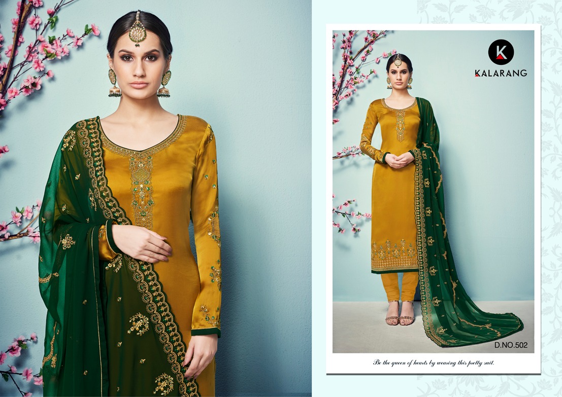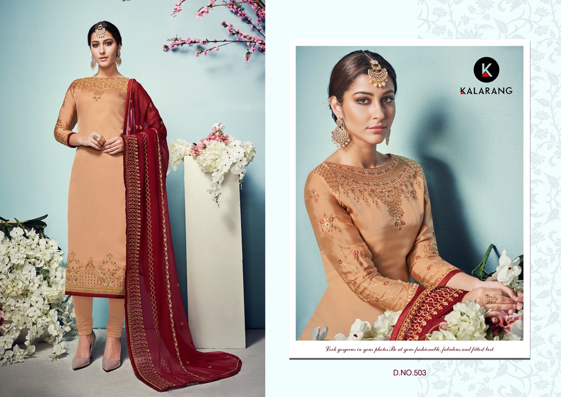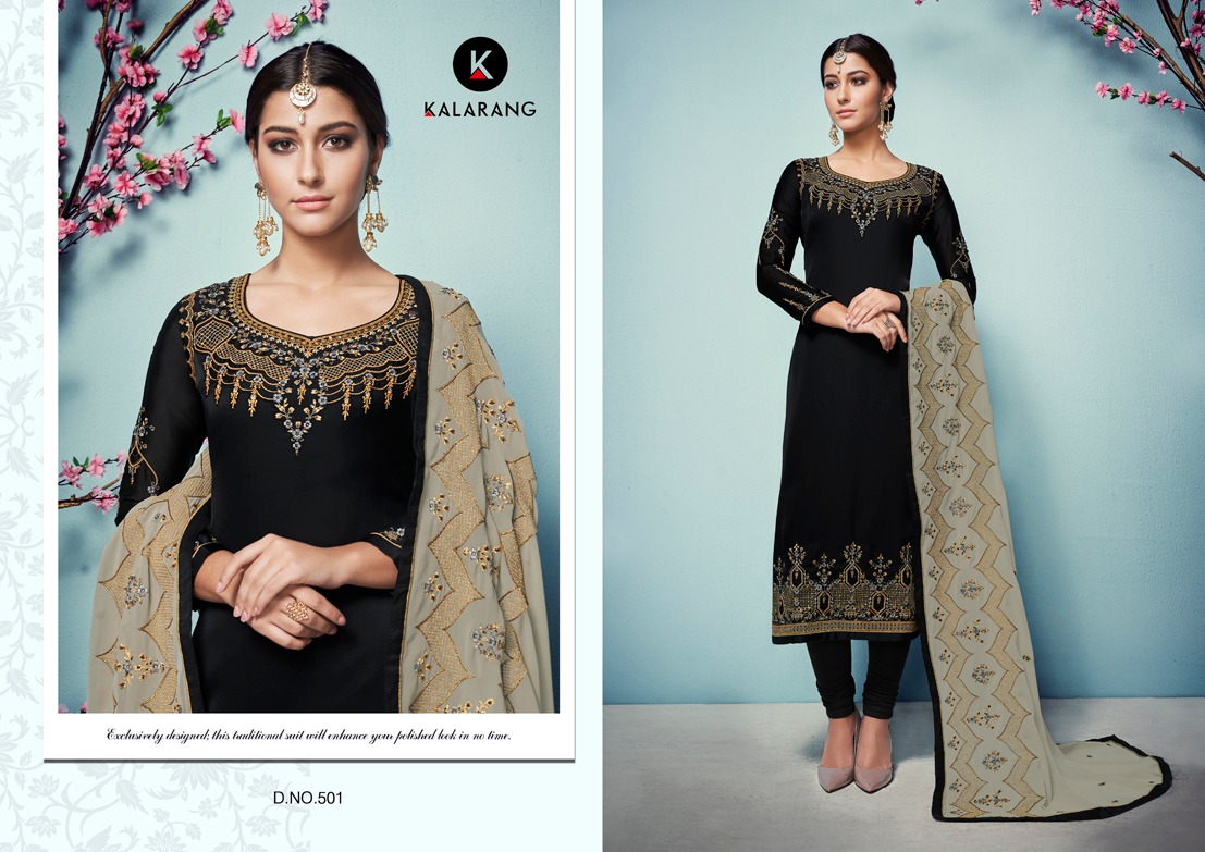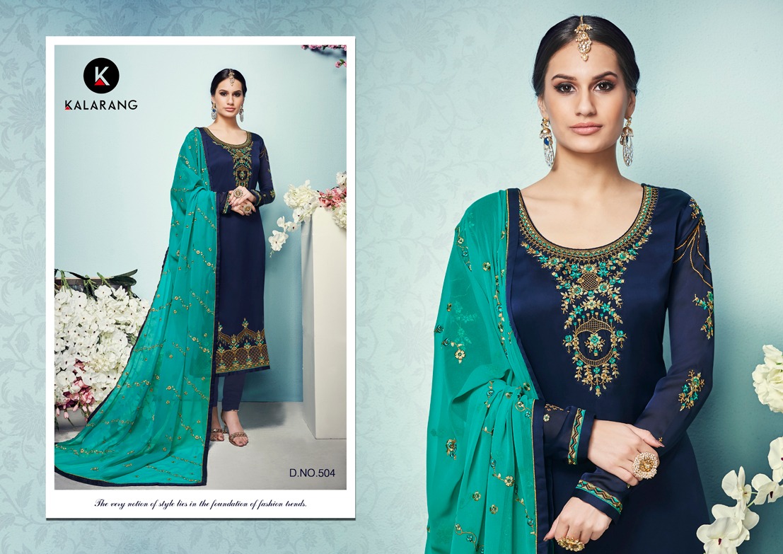Antra Vol 2 By Kalarang Series 501 To 504 Satin Georgette Embroidered Designer Party Wear Suits Wholesale Supplier Gujarat