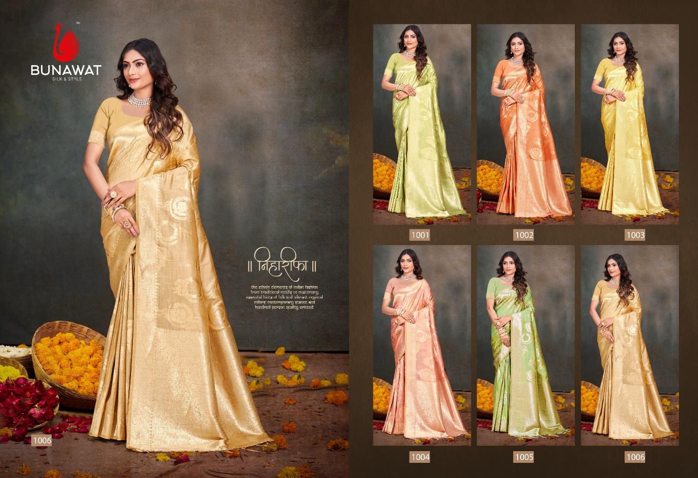 Buy Online Anubhuti Silk Vol 1 By Bunawat Cotton Silk Saree 6 Pcs of Full Catalogue at Wholesale Price. Looking for Anubhuti Silk Vol 1 By Bunawat Cotton Silk Saree Full Catalouge at Best Price? Buy Now Anubhuti Silk Vol 1 By Bunawat Cotton Silk Saree at Wholesale Rate of Rs 7194 with Total 6 Pcs from authroized dealer and supplier of Brand. Cost of Each piece is just only Rs 1199 which is very low and affordable price to resale the product in your retail store ,This is Surat based Wholesale Supplier & Dealer of Brand. Click on Brand name to Know more about Brand's products.Call or Whatsapp on 9898838984 for booking or enquiry