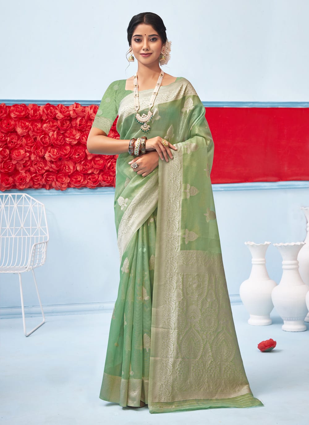*New Catalog Exclusively Launching* Catalog Name: *Anurag* Brand: *Sangam Prints* Product Type: Saree Fabric: Cotton Price Per Piece: 1280/- Gst Extra: 5% SINGLE AVAILABLE Work: Woven Work Other Specifications: Rich Weaving Pallu Saree Mtr: 5.5 Mtr Blouse: 0.8 Mtr Total Pcs: 6 _*Book your orders now*_ 100+single |