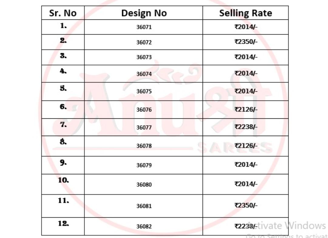 Buy Online Anushree 36071 Series Designer Party Wear Sarees Singles And Set Wholesale Supplier And Dealer Surat 0 Pcs of Full Catalogue at Wholesale Price. Looking for Anushree 36071 Series Designer Party Wear Sarees Singles And Set Wholesale Supplier And Dealer Surat Full Catalouge at Best Price? Buy Now Anushree 36071 Series Designer Party Wear Sarees Singles And Set Wholesale Supplier And Dealer Surat at Wholesale Rate of Rs 0 with Total 0 Pcs from authroized dealer and supplier of BRAND'S Brand. Cost of Each piece is just only Rs 0 which is very low and affordable price to resale the product in your retail store ,This is Surat based Wholesale Supplier & Dealer of BRAND'S Brand. Click on Brand name to Know more about BRAND'S Brand's products.Call or Whatsapp on 9898838984 for booking or enquiry