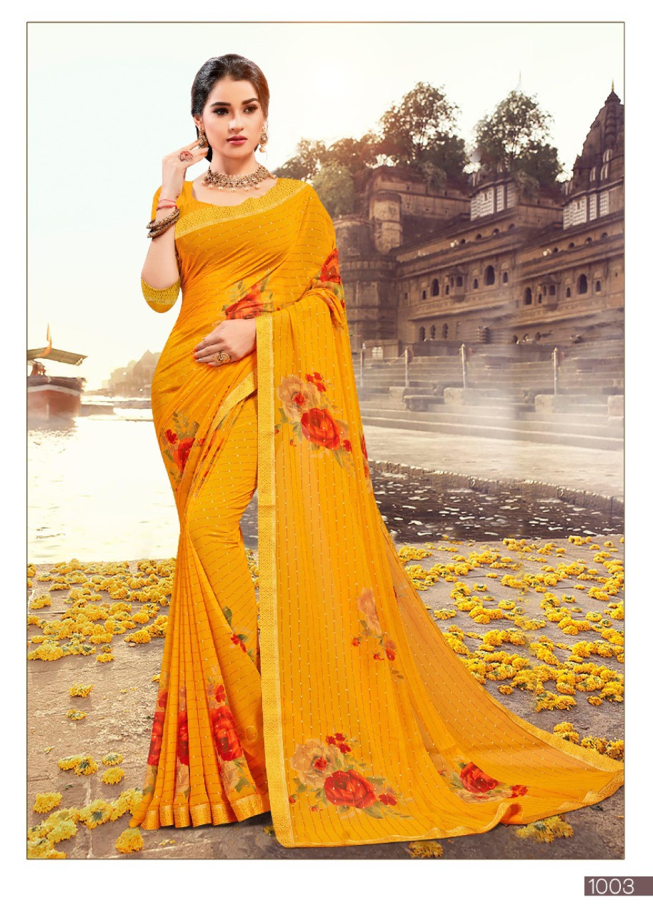 _NEW INTRODUCING_ _*ANVI*_ _Brand:- *MANSAROVER FASHION*_ _Rate:- *490/-*_ _Fabric:- *PURE WEIGHTLESS DIGITAL FLOWER FOIL PRINT* *WITH EXCLUSIVE DYABLE BANARASI BODER* _Total Designs:- *08*_ _*WITH BLOUSE*_ Set to set |