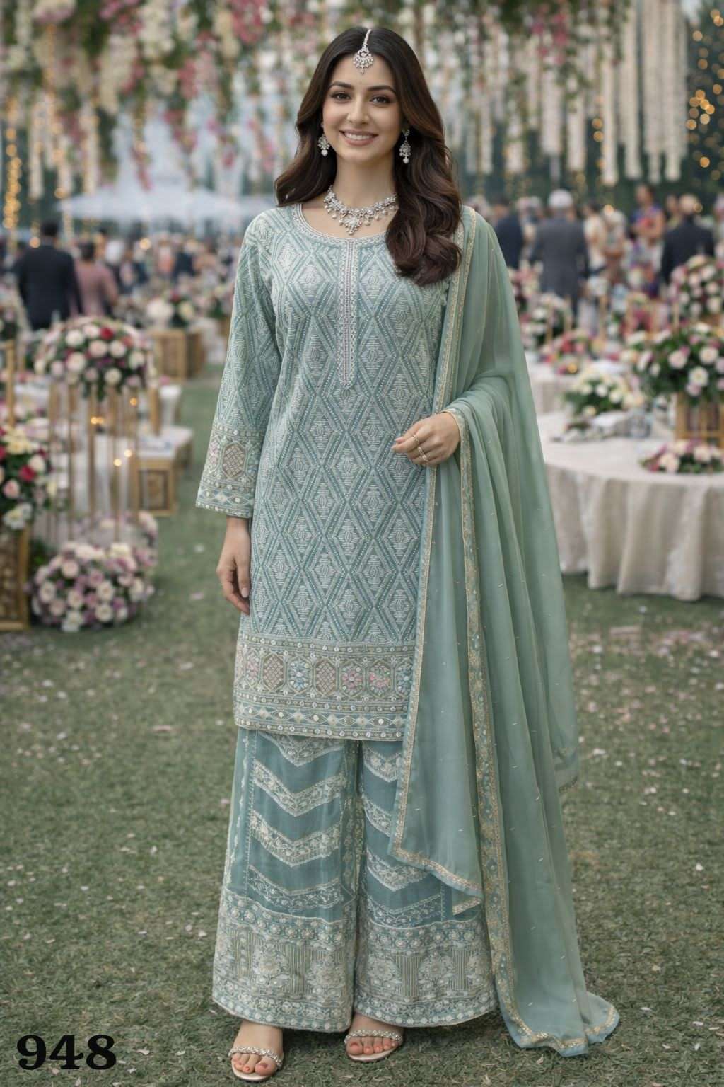 FABRIC - REAL PREMIUM GEORGETTE ( HEAVY EMBROIDERED WORK TOP WITH PLAZZO AND DUPATTA )