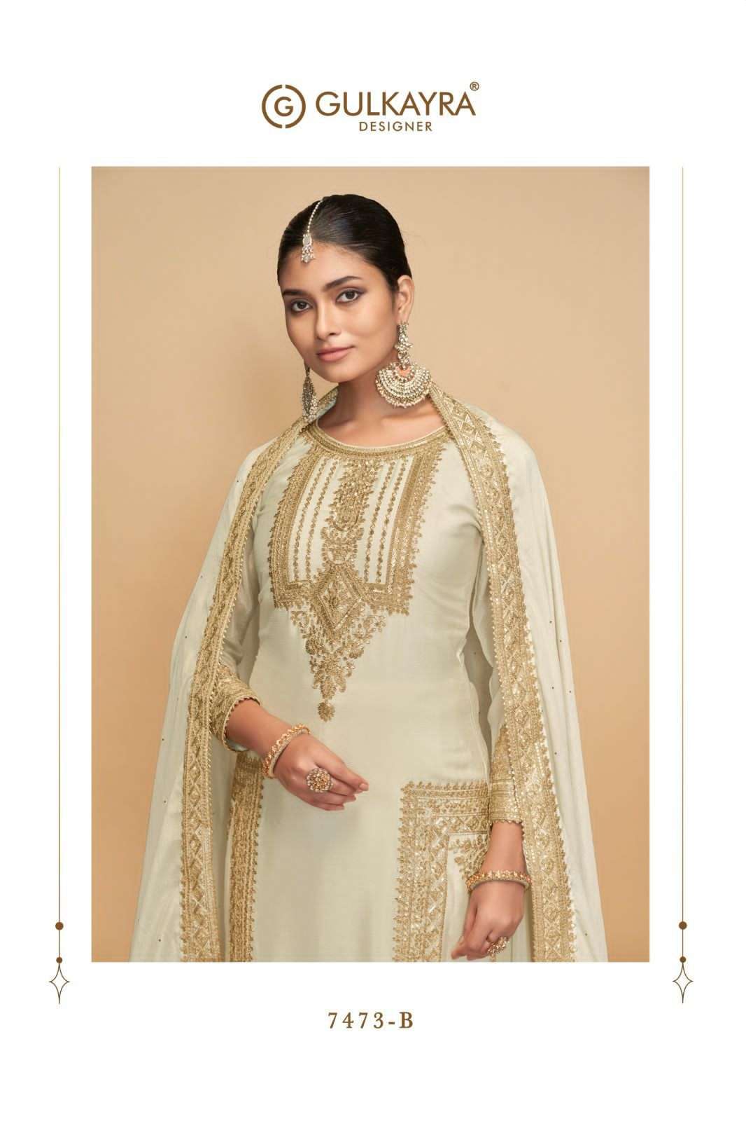 Buy Online APSARA SERIES 7473 COLOR BY GULKAYRA DESIGNER 2 Pcs of Full Catalogue at Wholesale Price. Looking for APSARA SERIES 7473 COLOR BY GULKAYRA DESIGNER Full Catalouge at Best Price? Buy Now APSARA SERIES 7473 COLOR BY GULKAYRA DESIGNER at Wholesale Rate of Rs 5000 with Total 2 Pcs from authroized dealer and supplier of Gulkayra designer Brand. Cost of Each piece is just only Rs 2500 which is very low and affordable price to resale the product in your retail store ,This is Surat based Wholesale Supplier & Dealer of Gulkayra designer Brand. Click on Brand name to Know more about Gulkayra designer Brand's products.Call or Whatsapp on 9898838984 for booking or enquiry