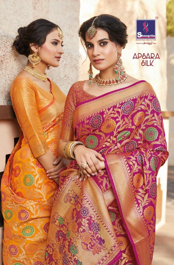 Buy Online Apsara Silk By Shangrilla Pure Bnarasi Silk 6 Pcs of Full Catalogue at Wholesale Price. Looking for Apsara Silk By Shangrilla Pure Bnarasi Silk Full Catalouge at Best Price? Buy Now Apsara Silk By Shangrilla Pure Bnarasi Silk at Wholesale Rate of Rs 5910 with Total 6 Pcs from authroized dealer and supplier of SHANGRILA Brand. Cost of Each piece is just only Rs 985 which is very low and affordable price to resale the product in your retail store ,This is Surat based Wholesale Supplier & Dealer of SHANGRILA Brand. Click on Brand name to Know more about SHANGRILA Brand's products.Call or Whatsapp on 9898838984 for booking or enquiry