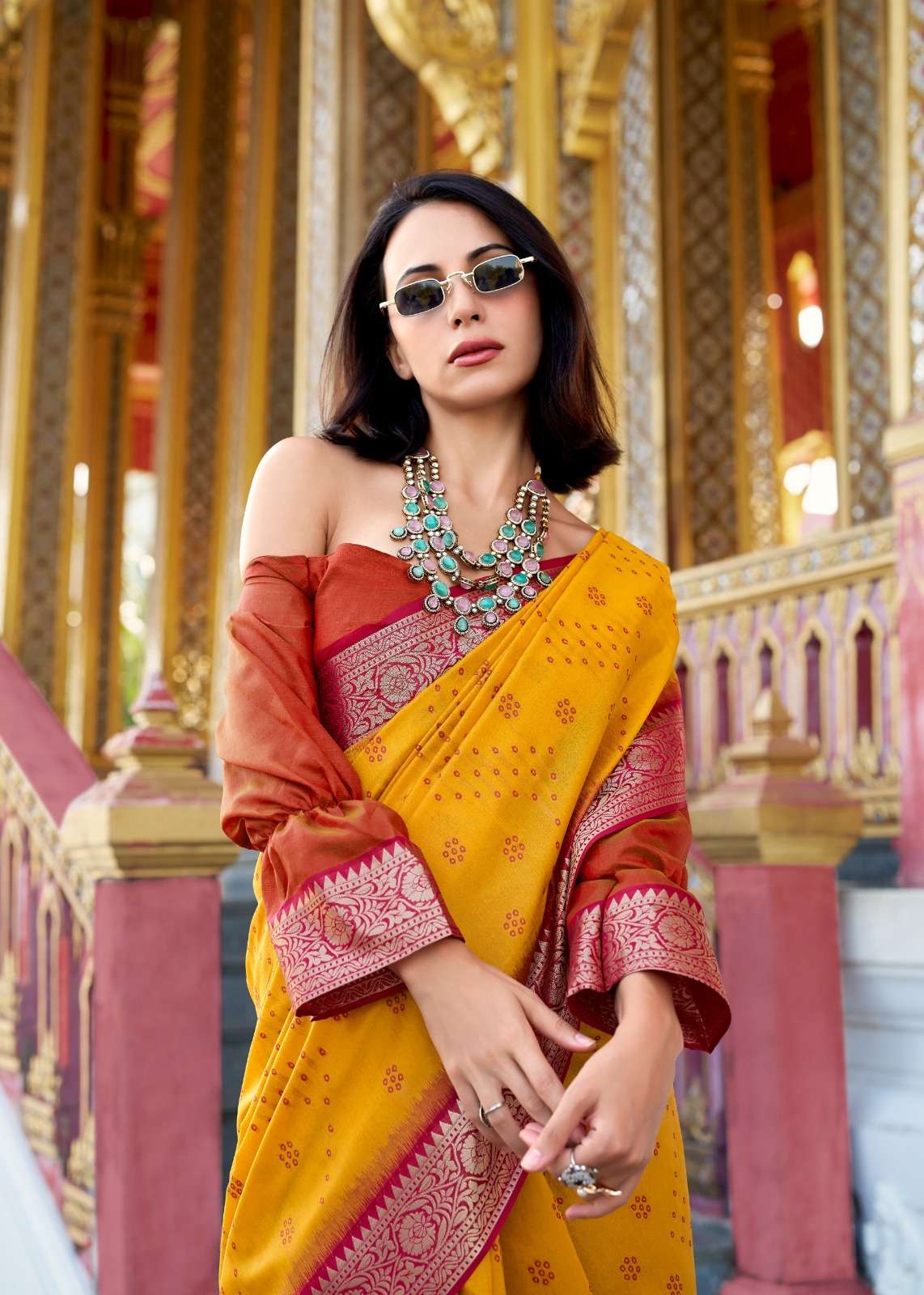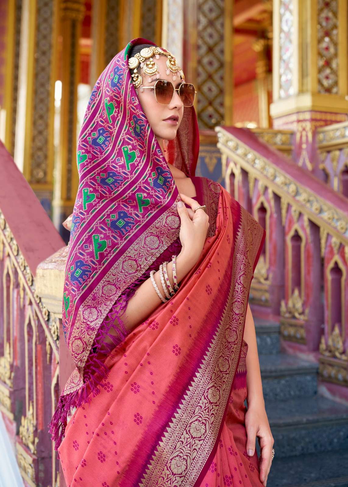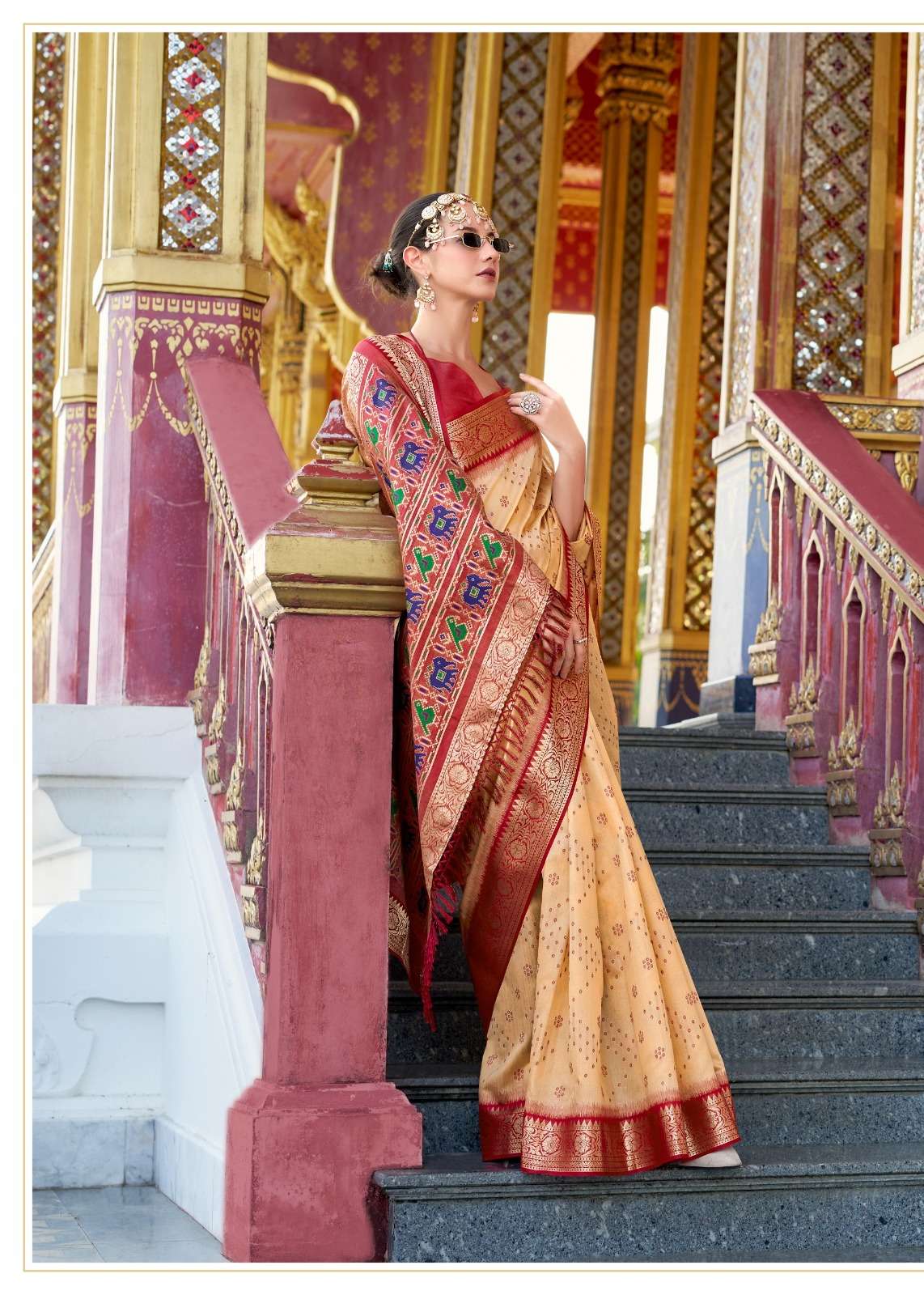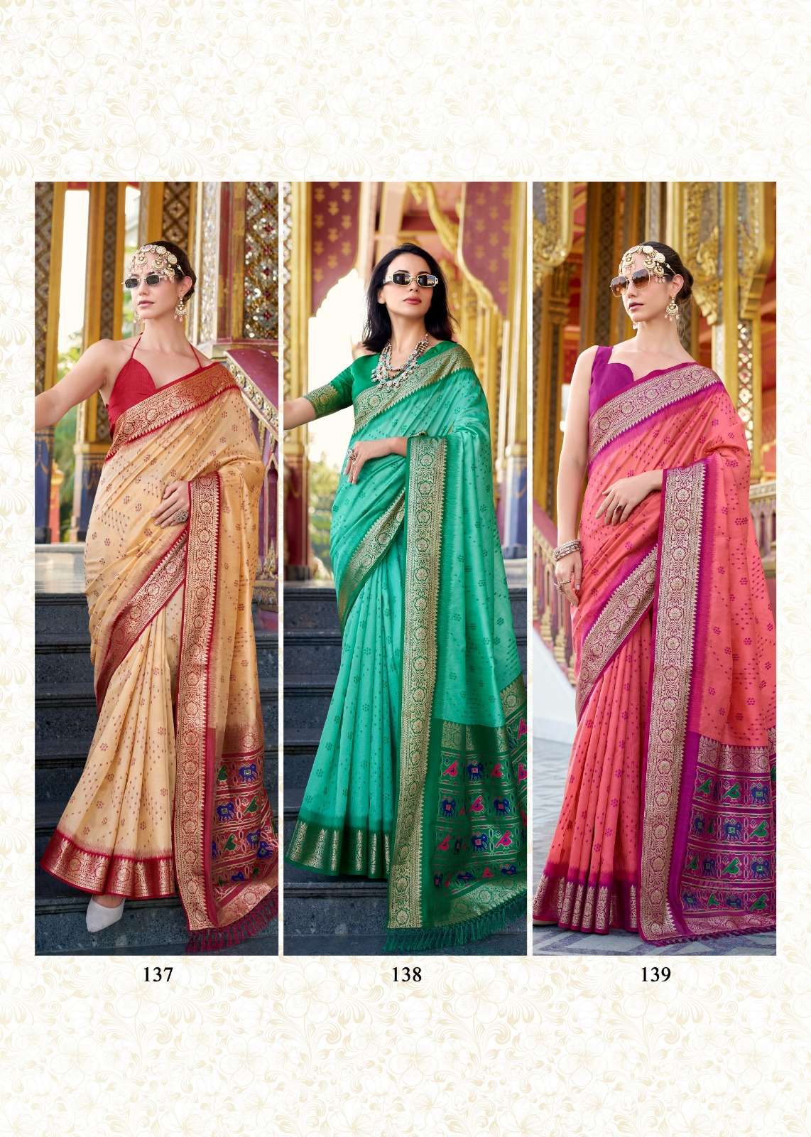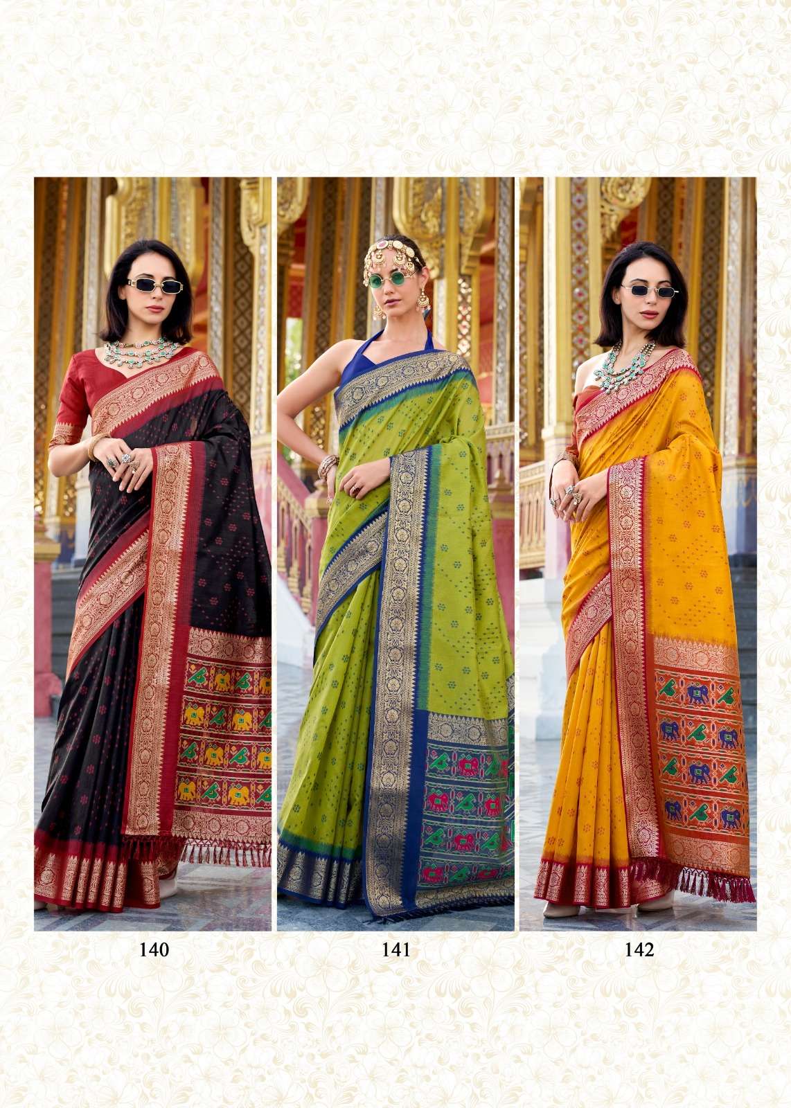 ➡️Catalog - *Aradhya Silk* ➡️Fabric - *Tusser Handloom Silk with Zari weaving border & Patola Weaved Pallu* ➡️Rate - *1295+5%*