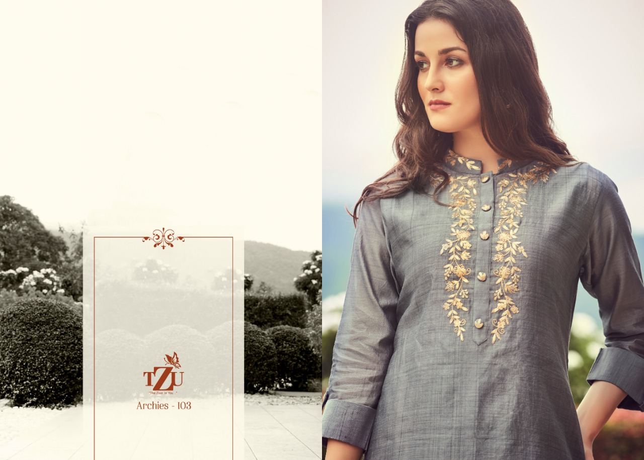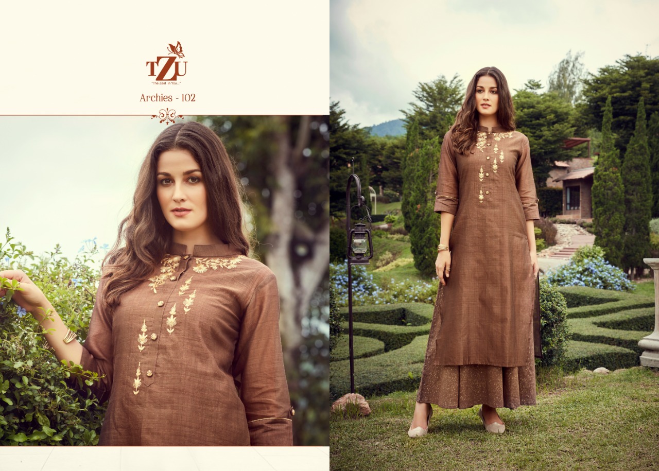 Buy Online Archies By Tzu Series 1001 To 1004 Designer Kurtis With Plazzo Wholesale Supplier Surat 4 Pcs of Full Catalogue at Wholesale Price. Looking for Archies By Tzu Series 1001 To 1004 Designer Kurtis With Plazzo Wholesale Supplier Surat Full Catalouge at Best Price? Buy Now Archies By Tzu Series 1001 To 1004 Designer Kurtis With Plazzo Wholesale Supplier Surat at Wholesale Rate of Rs 5980 with Total 4 Pcs from authroized dealer and supplier of Brand. Cost of Each piece is just only Rs 1495 which is very low and affordable price to resale the product in your retail store ,This is Surat based Wholesale Supplier & Dealer of Brand. Click on Brand name to Know more about Brand's products.Call or Whatsapp on 9898838984 for booking or enquiry