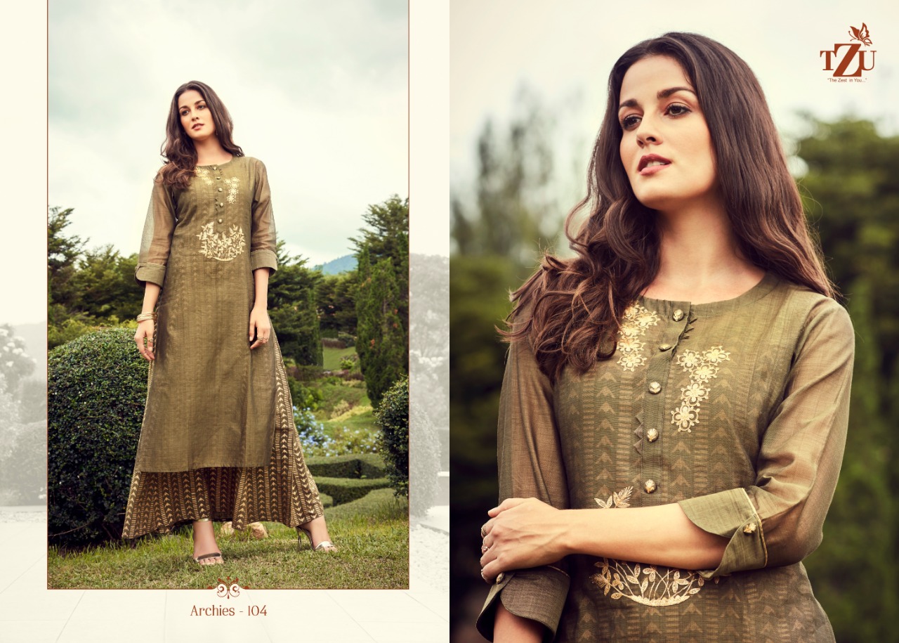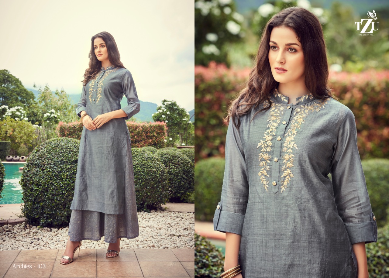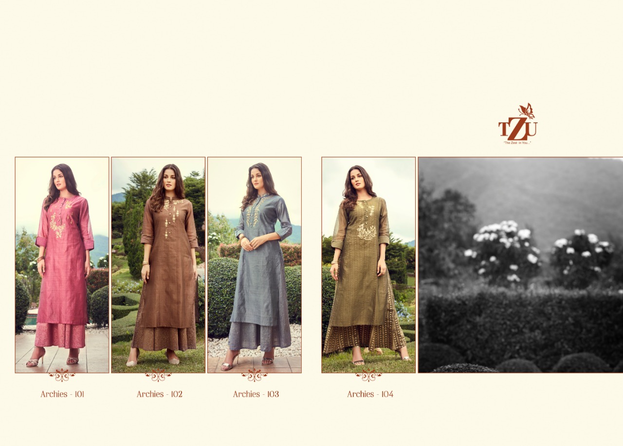 Archies By Tzu Series 1001 To 1004 Designer Kurtis With Plazzo Wholesale Supplier Surat