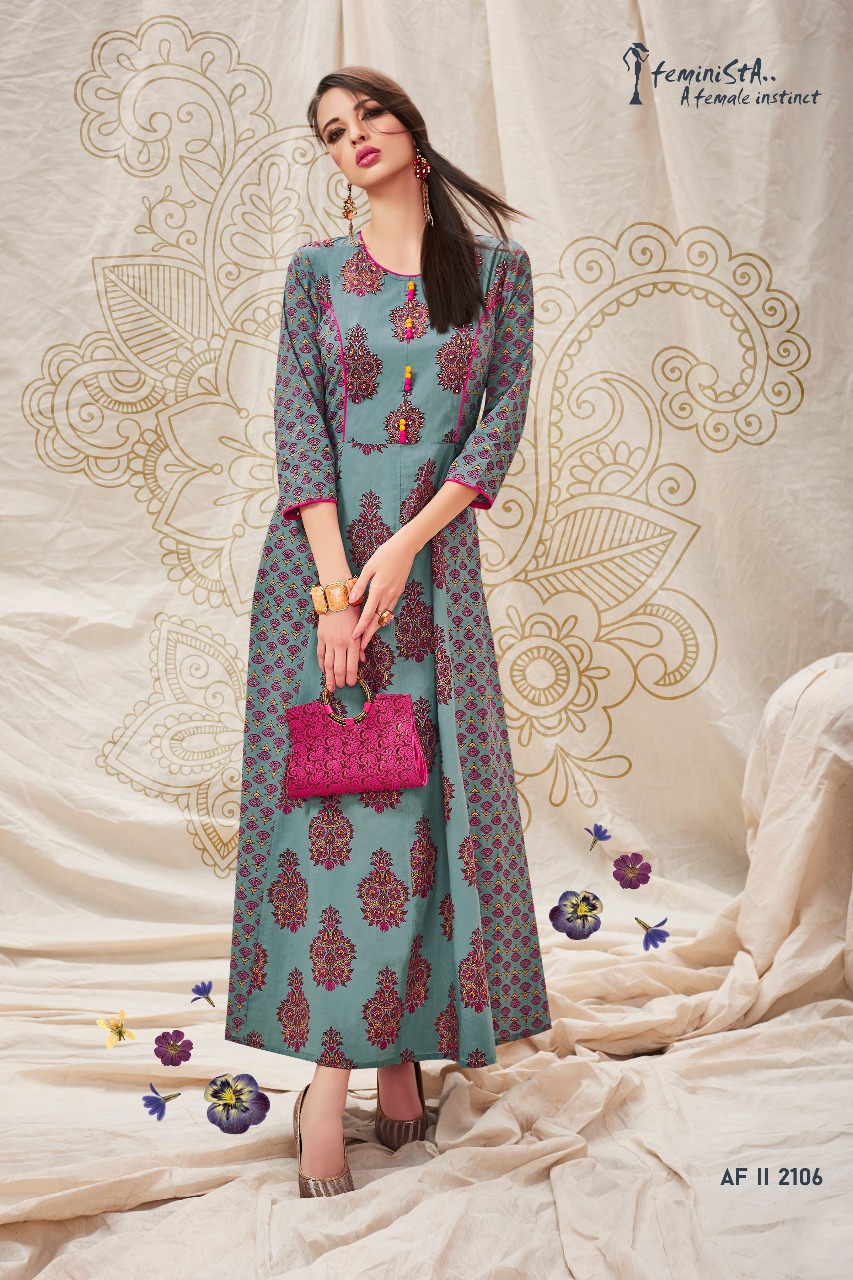 ARENA FASHIONS / FEMINISTA Fashion Nova *Fabric- Viscose Rayon / Cambric *Pieces- 8 *Length- 54 *Sizes- M - L - XL - XXL *Price - 950/- + Taxes *Bag Price- 7,600/- |