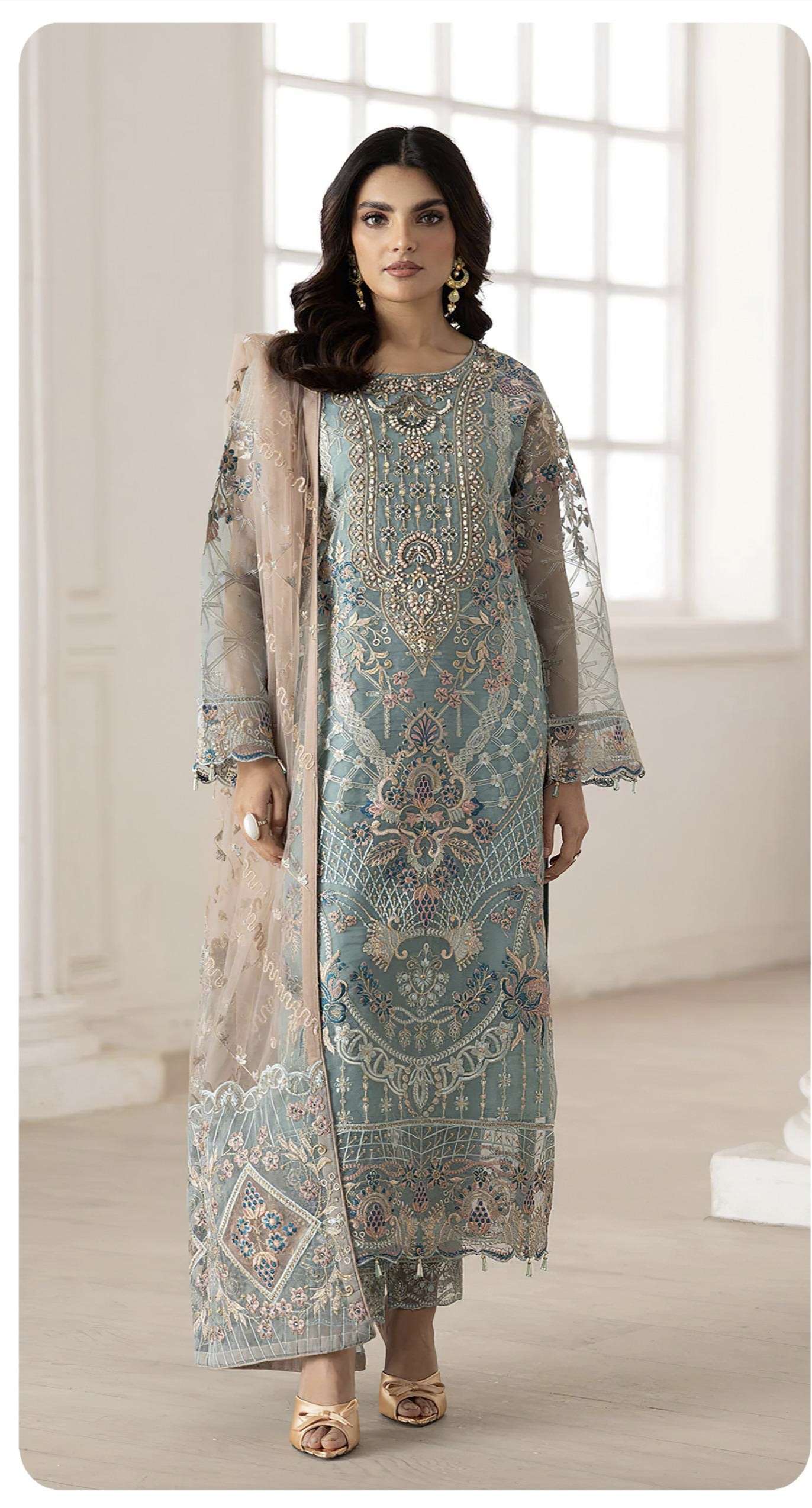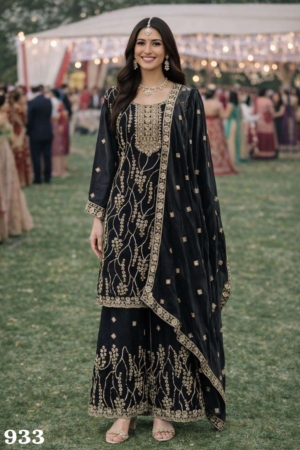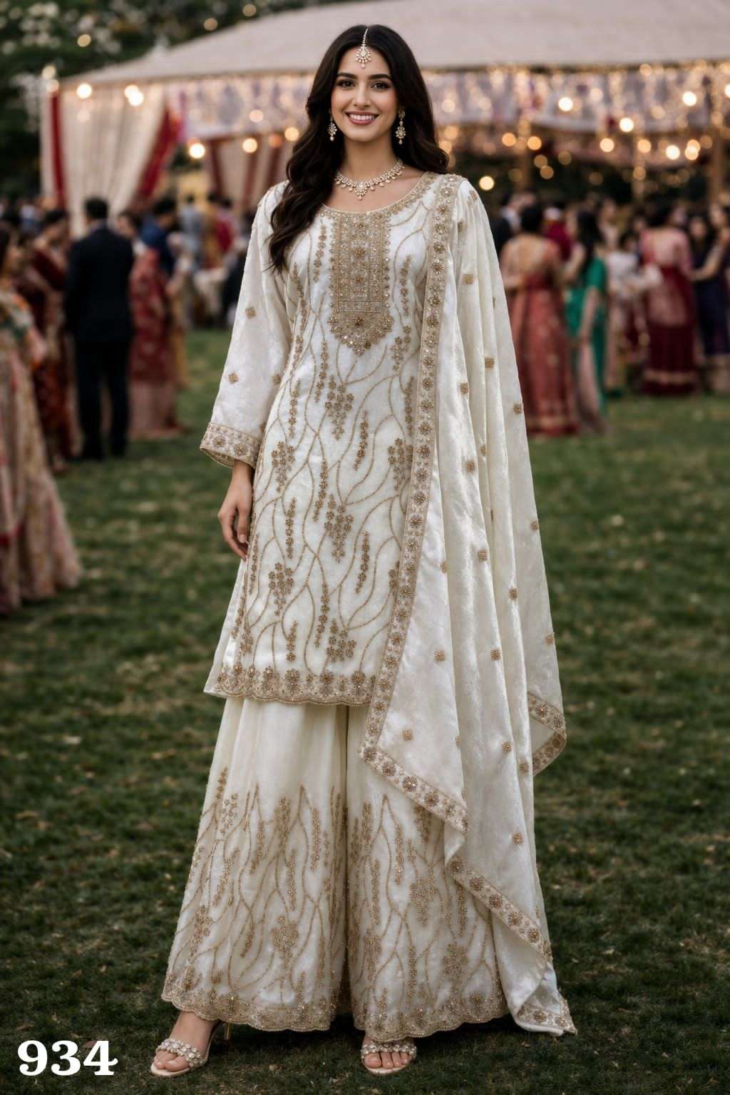 FABRIC - REAL PREMIUM FENDY SILK ( HEAVY FRONT & BACK EMBROIDERED SEQUENCE & CUT BEADS WORK TOP WITH PLAZZO AND DUPATTA )