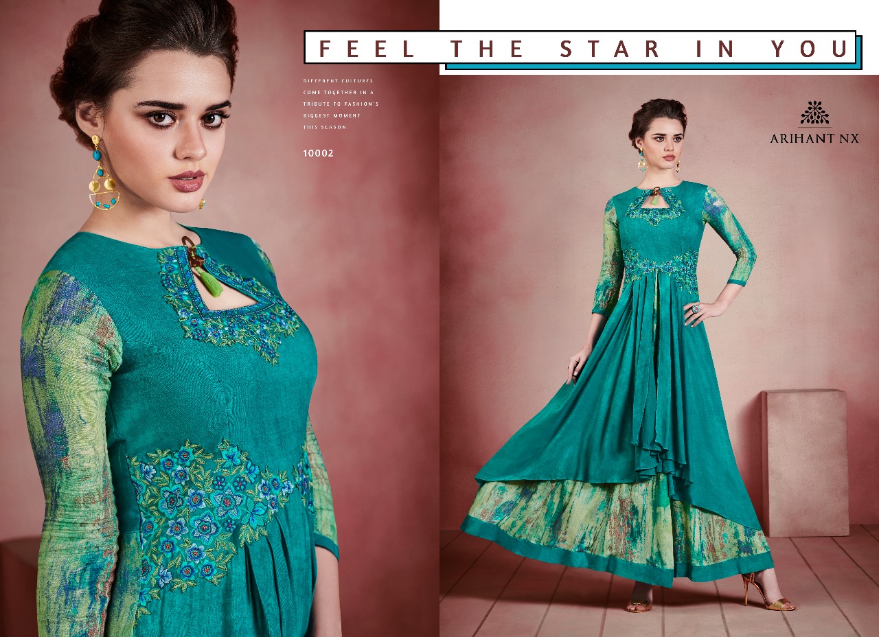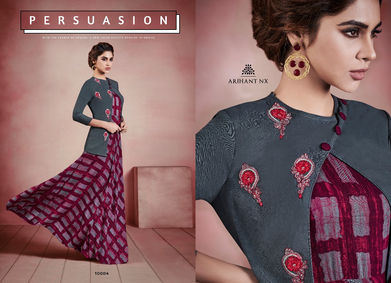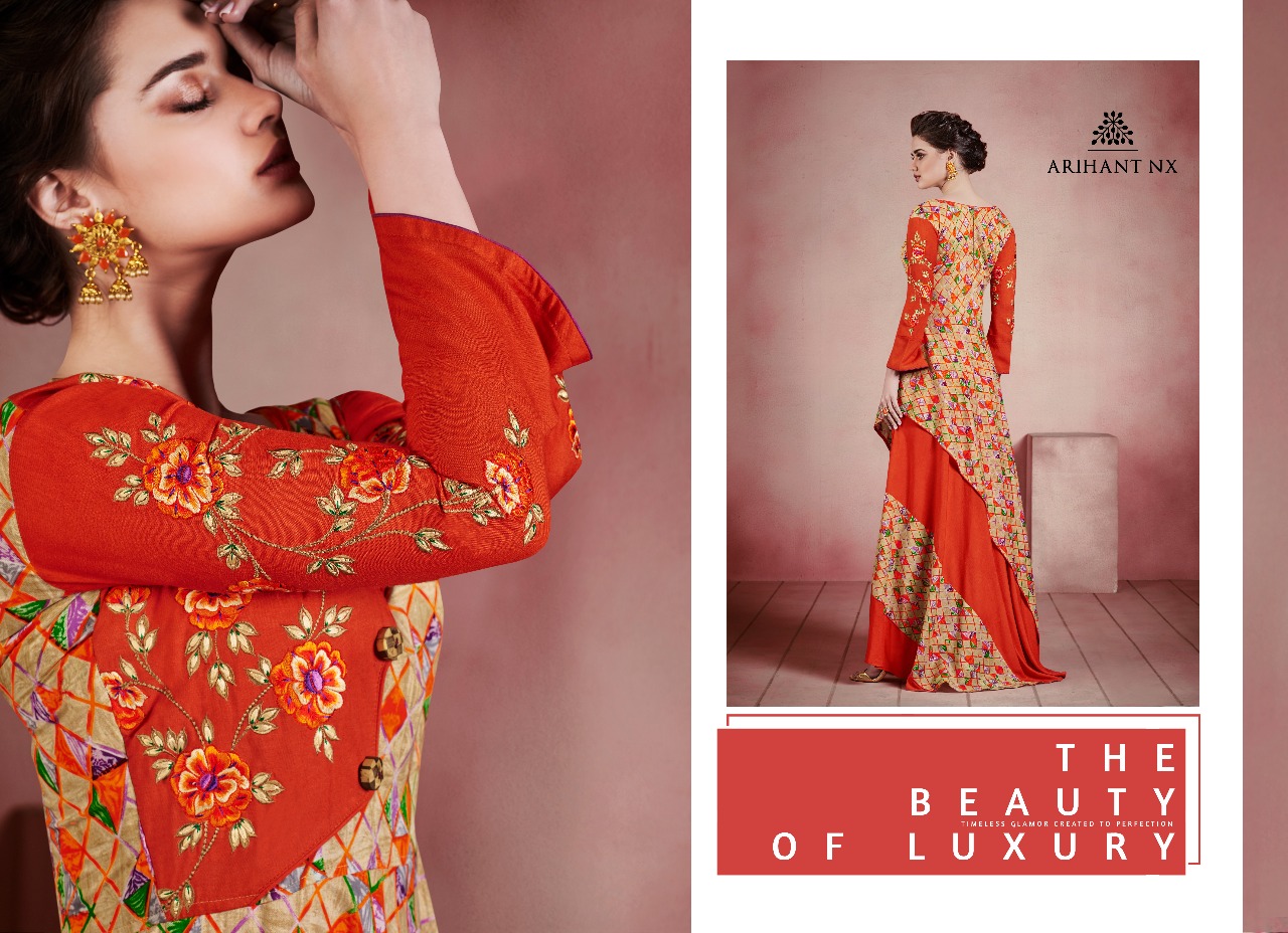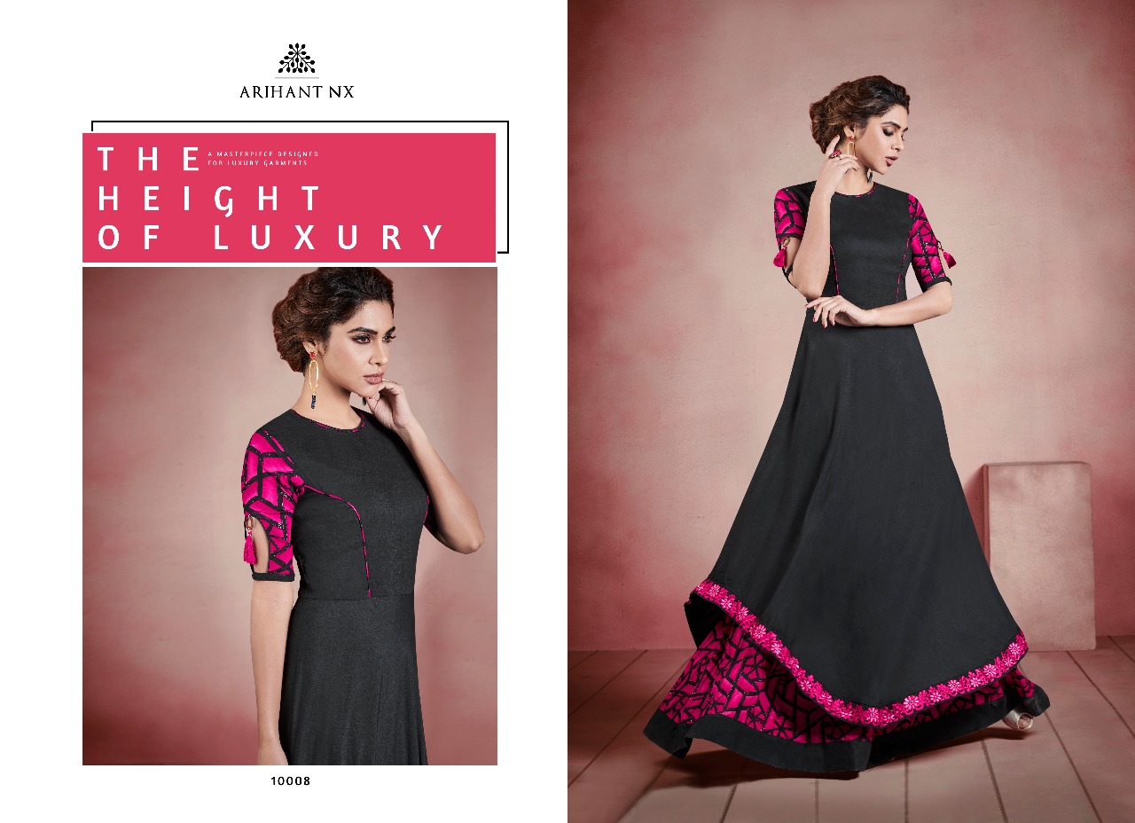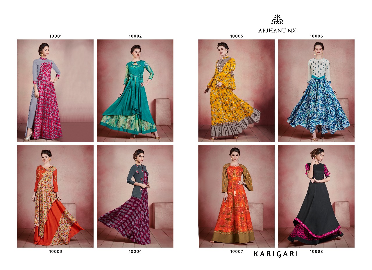 Buy Online Arihant Nx Karigari Designer Gown Catlog Wholesale Dealer Surat 8 Pcs of Full Catalogue at Wholesale Price. Looking for Arihant Nx Karigari Designer Gown Catlog Wholesale Dealer Surat Full Catalouge at Best Price? Buy Now Arihant Nx Karigari Designer Gown Catlog Wholesale Dealer Surat at Wholesale Rate of Rs 7960 with Total 8 Pcs from authroized dealer and supplier of ARIHANT NX Brand. Cost of Each piece is just only Rs 995 which is very low and affordable price to resale the product in your retail store ,This is Surat based Wholesale Supplier & Dealer of ARIHANT NX Brand. Click on Brand name to Know more about ARIHANT NX Brand's products.Call or Whatsapp on 9898838984 for booking or enquiry