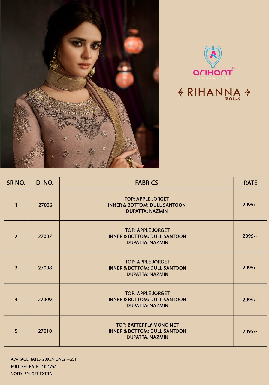 Arihant Rihanna Vol 2 27006 Series Designer Gown Suit Dealer
