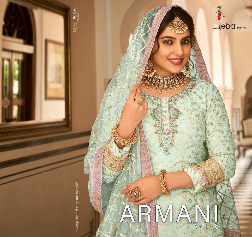 Armani Vol 3 By Eba Lifestyle Designer Georgette Suit Single And Set Stockiest And Supplier From Surat