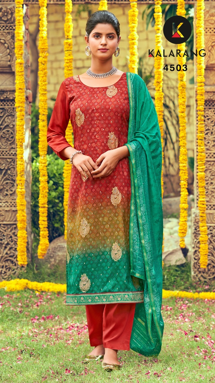 Buy Online Aroma By Kalarang Designer Collection Suppliers Surat 4 Pcs of Full Catalogue at Wholesale Price. Looking for Aroma By Kalarang Designer Collection Suppliers Surat Full Catalouge at Best Price? Buy Now Aroma By Kalarang Designer Collection Suppliers Surat at Wholesale Rate of Rs 4396 with Total 4 Pcs from authroized dealer and supplier of KALARANG Brand. Cost of Each piece is just only Rs 1099 which is very low and affordable price to resale the product in your retail store ,This is Surat based Wholesale Supplier & Dealer of KALARANG Brand. Click on Brand name to Know more about KALARANG Brand's products.Call or Whatsapp on 9898838984 for booking or enquiry