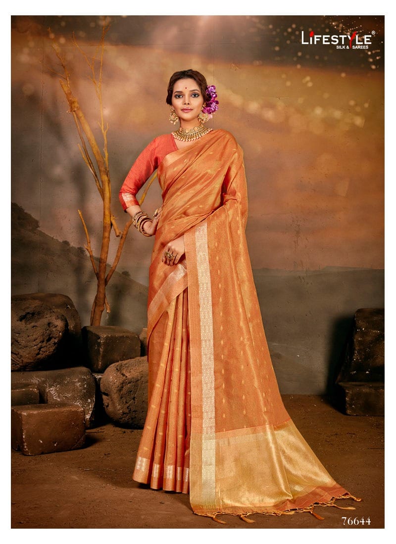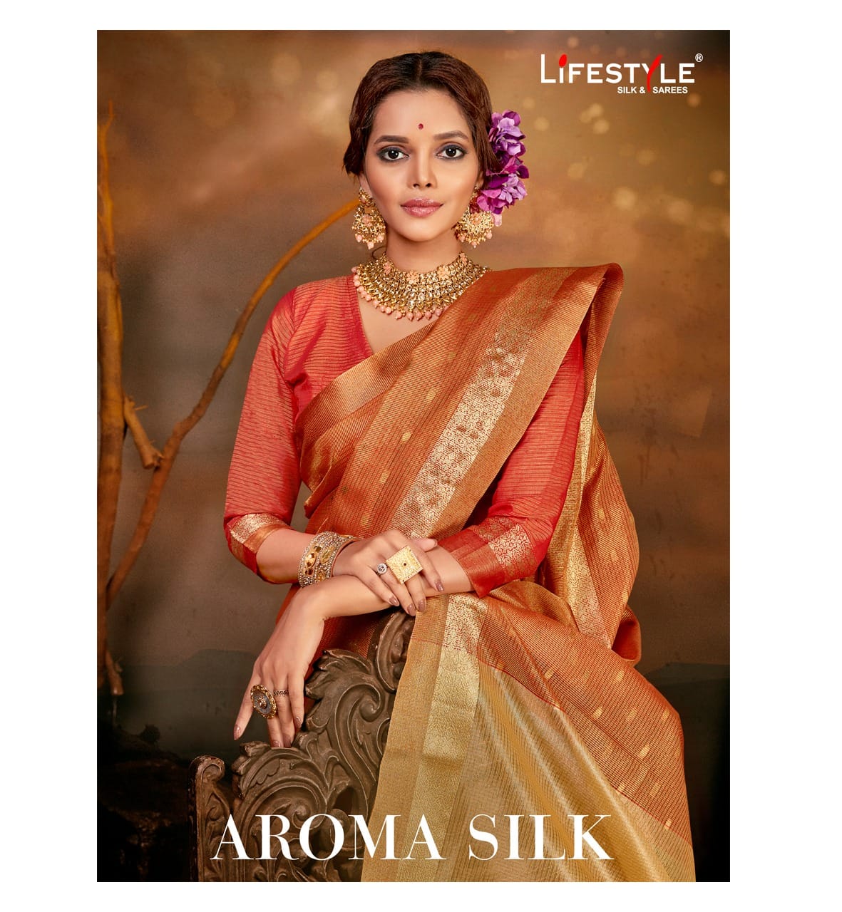 Brand = *LIFESTYLE* Catalog :- *AROMA SILK* Volume :- 1 Fabric :- *COTTON TISHU* Packing :- BOX Price :- *719/- * per pcs . Set to set Cut/Length :- 6.4 FANCY TISHU BUTTI CHIT PALLU PACKING - IN THIS WEEK |
