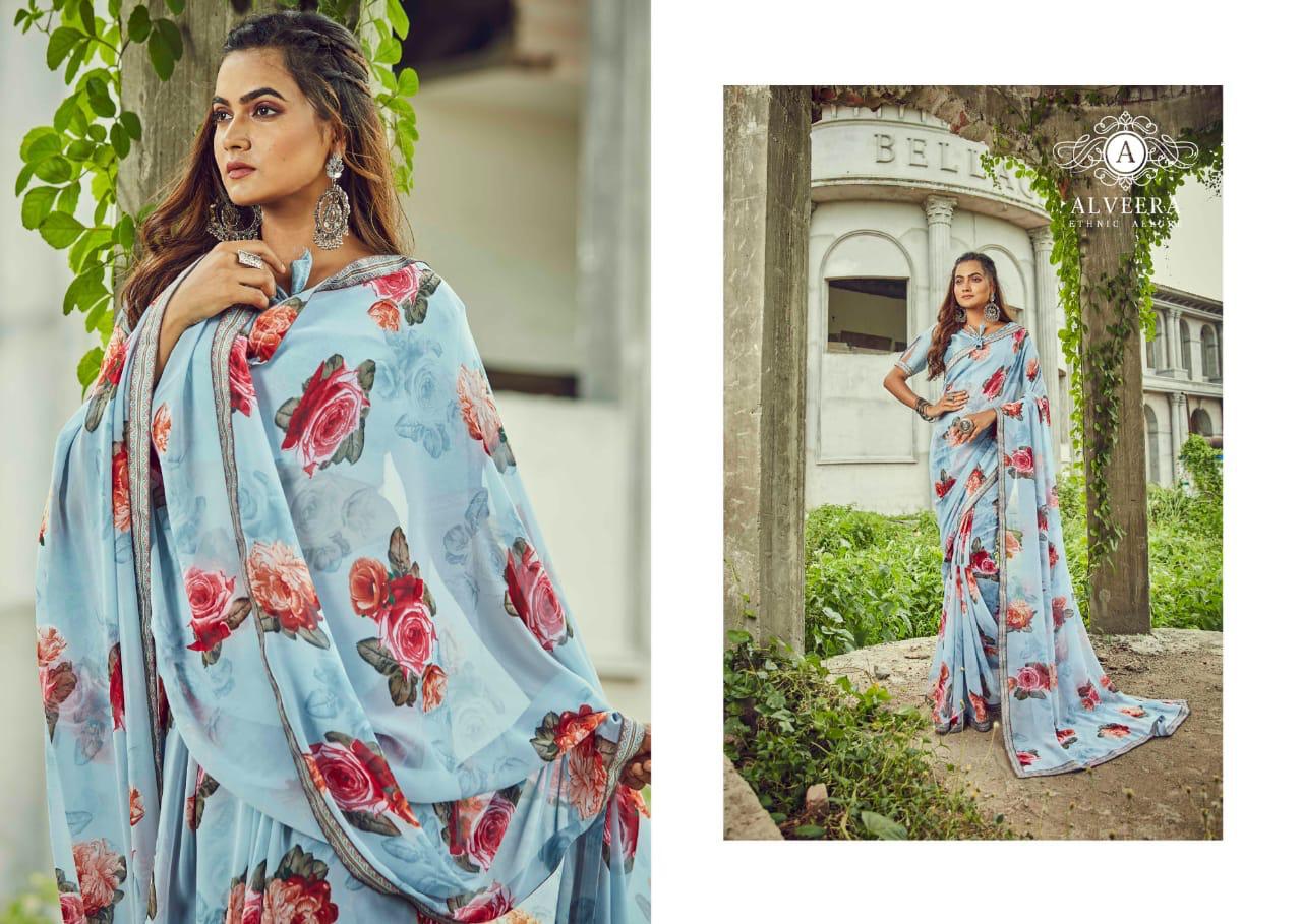 Brand - Alveera . Brand - ALVEERA Cetloge - ARPITA Fabrics - monopoly georgett Price - 440? per pcs . GST 5 Percent Extra 8 Design in cetloge. * set & loose & Singel * 100+single |