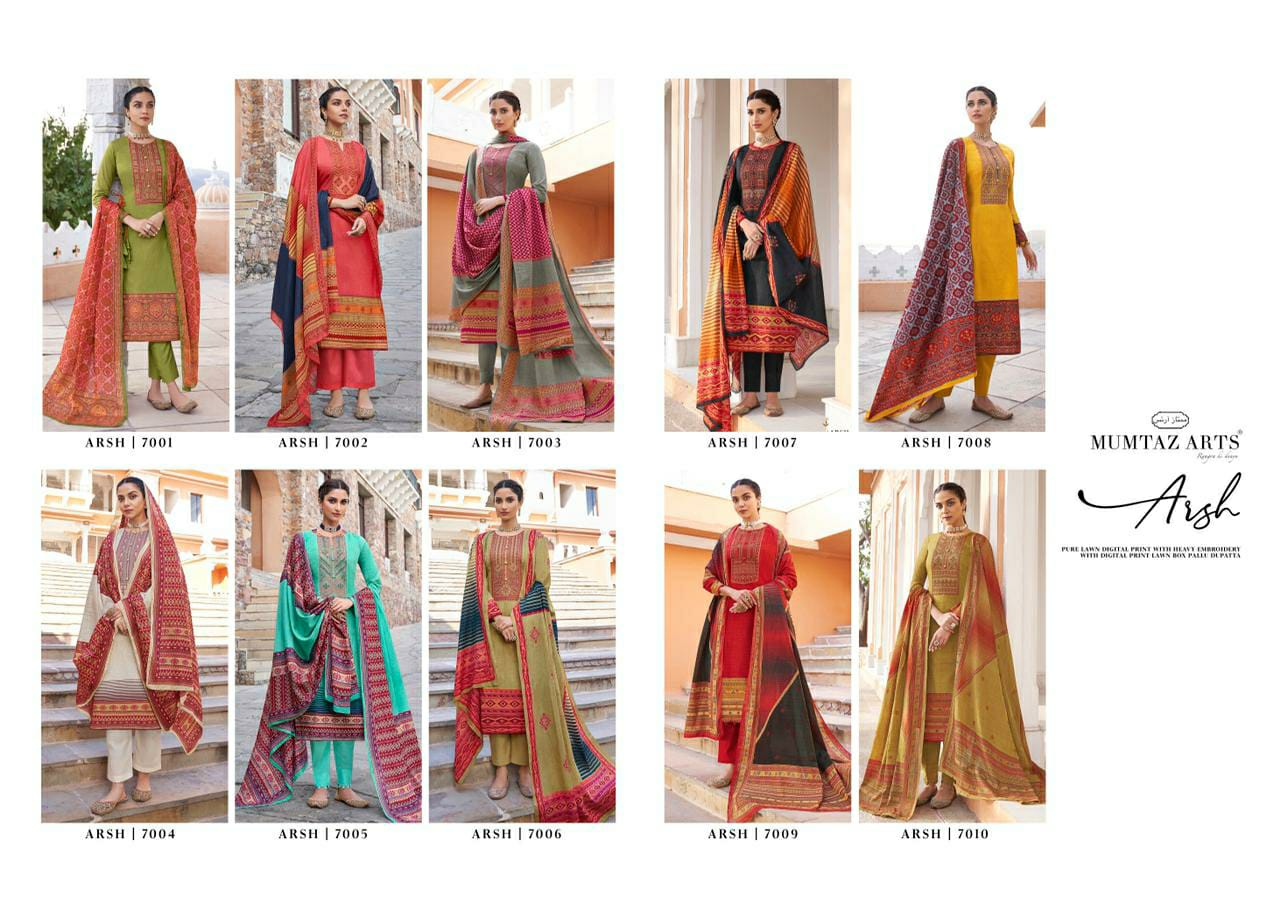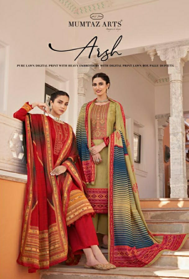 *Brand :* MUMTAZ ARTS *Catalog Name :* Arsh *Price :* ?695 *Piece :* 10 *Total Price :* 6950 ( GST Extra ) *Size :* Unstitched *Fabric :* lawn cotton *Availibility :* On Booking Only set to set |