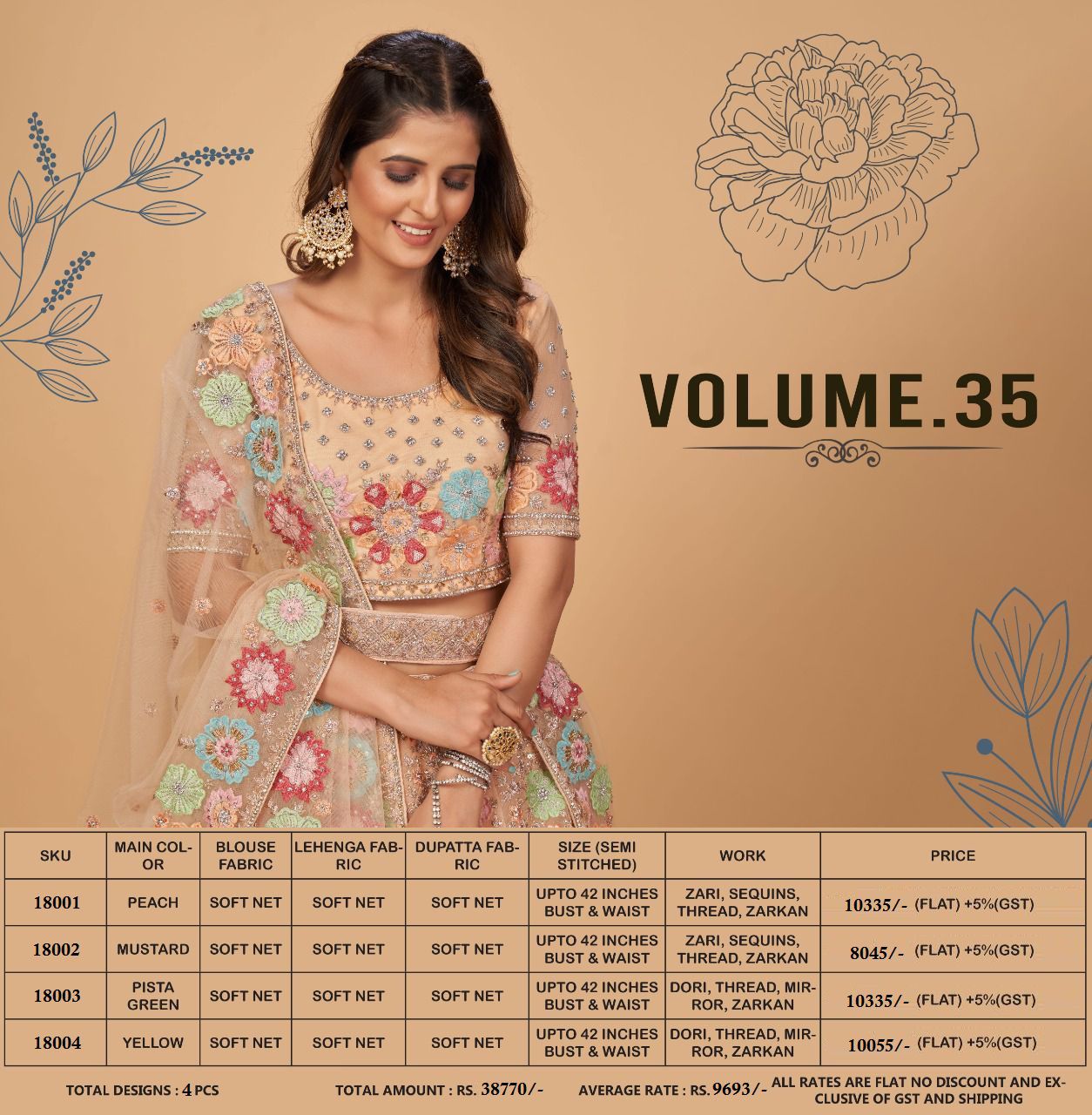 Buy Online Arya Designs Vol 35 Designer Lehanga Choli Single And Set Stockiest And Supplier From Surat 4 Pcs of Full Catalogue at Wholesale Price. Looking for Arya Designs Vol 35 Designer Lehanga Choli Single And Set Stockiest And Supplier From Surat Full Catalouge at Best Price? Buy Now Arya Designs Vol 35 Designer Lehanga Choli Single And Set Stockiest And Supplier From Surat at Wholesale Rate of Rs 0 with Total 4 Pcs from authroized dealer and supplier of Brand. Cost of Each piece is just only Rs 0 which is very low and affordable price to resale the product in your retail store ,This is Surat based Wholesale Supplier & Dealer of Brand. Click on Brand name to Know more about Brand's products.Call or Whatsapp on 9898838984 for booking or enquiry
