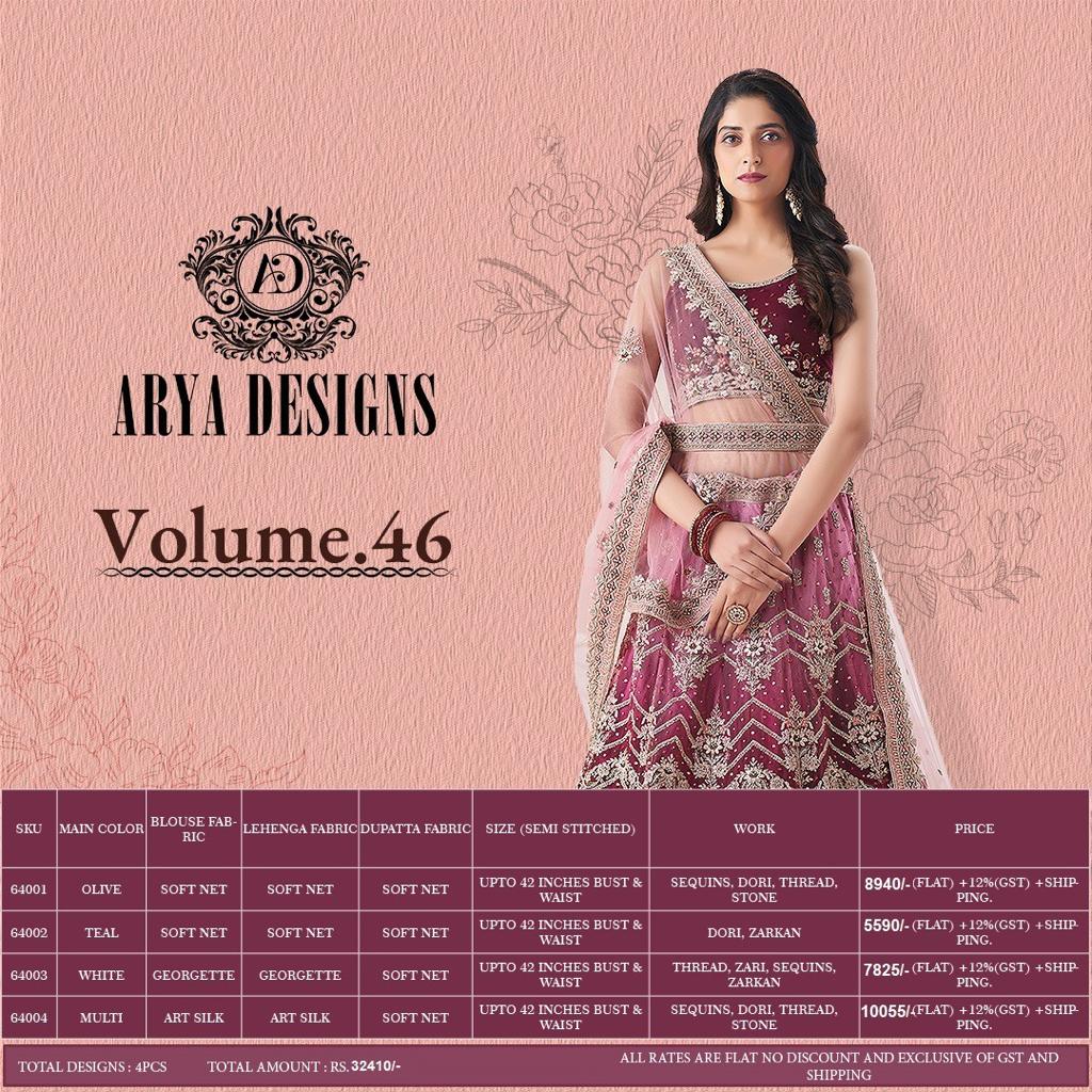 Arya Designs Vol 46 Series 64001 To 64004 Fancy Lehangas Manufacturer Surat