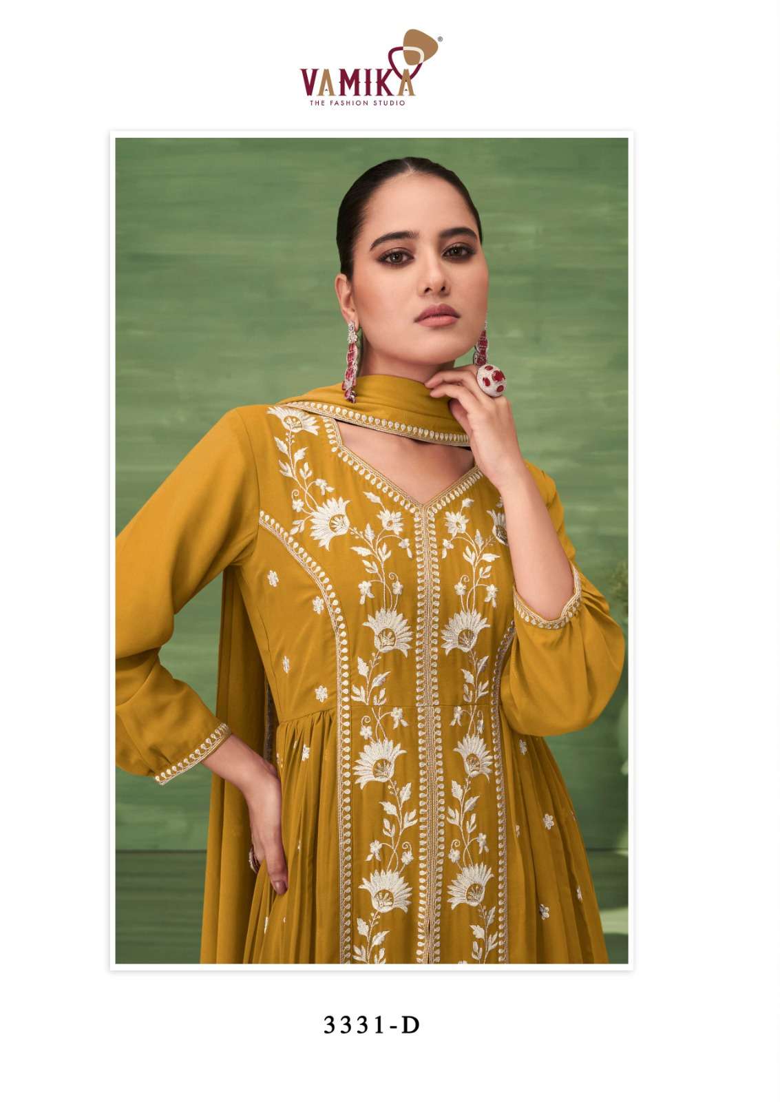 Buy Online ASHIMA VOL 1 by vamika D NO3331A To 3331E PLAZO suit collection manufacturer surat 5 Pcs of Full Catalogue at Wholesale Price. Looking for ASHIMA VOL 1 by vamika D NO3331A To 3331E PLAZO suit collection manufacturer surat Full Catalouge at Best Price? Buy Now ASHIMA VOL 1 by vamika D NO3331A To 3331E PLAZO suit collection manufacturer surat at Wholesale Rate of Rs 9495 with Total 5 Pcs from authroized dealer and supplier of VAMIKA NX Brand. Cost of Each piece is just only Rs 1899 which is very low and affordable price to resale the product in your retail store ,This is Surat based Wholesale Supplier & Dealer of VAMIKA NX Brand. Click on Brand name to Know more about VAMIKA NX Brand's products.Call or Whatsapp on 9898838984 for booking or enquiry
