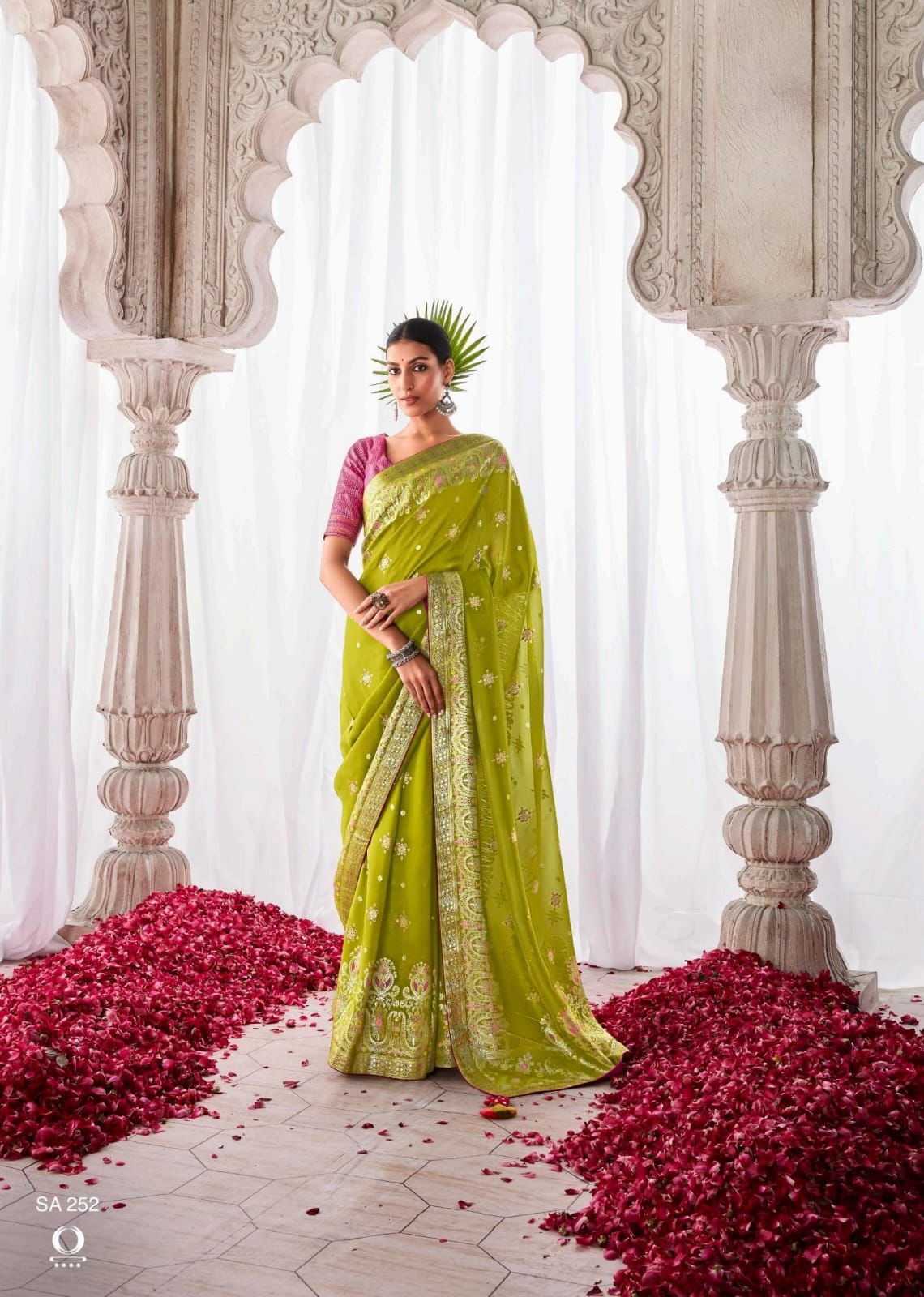 LAUNCHING ANOTHER SPECIAL DESIGNER CONCEPT FOR THIS WEDDING SESSION BRAND � KIMORA CATALOG:- ASIANA RATE:- 3150+5%GST SERIES: 248 TO 256 FABRIC :- KORA SILK WITH DESIGNER MINAKARI PALLU & ATTACHED WITH HEAVY TUSSLES FANCY UNSTITCHED BLOUSE OCCASION : FESTIVAL WEAR, PARTY WEAR 100+ SINGLE |
