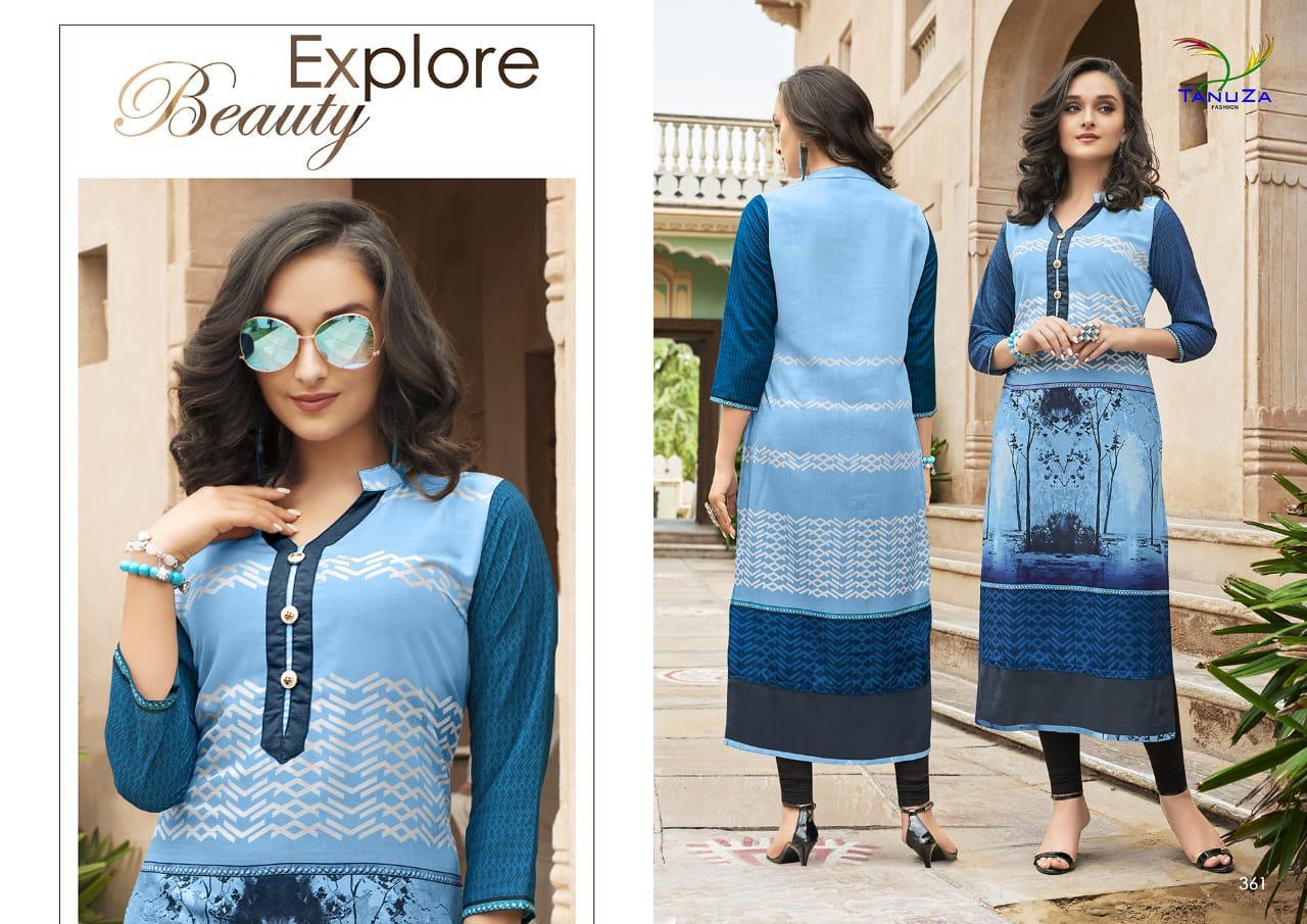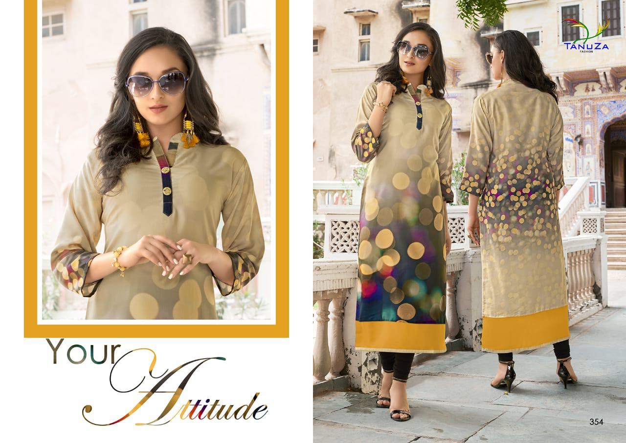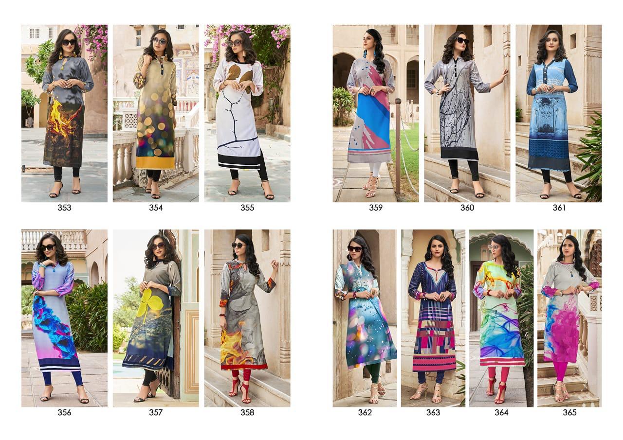 Buy Online Asima By Tanuja 353 Series Fancy Poly Reyon Printed Kurti Catlog Wholesaler Surat 13 Pcs of Full Catalogue at Wholesale Price. Looking for Asima By Tanuja 353 Series Fancy Poly Reyon Printed Kurti Catlog Wholesaler Surat Full Catalouge at Best Price? Buy Now Asima By Tanuja 353 Series Fancy Poly Reyon Printed Kurti Catlog Wholesaler Surat at Wholesale Rate of Rs 7475 with Total 13 Pcs from authroized dealer and supplier of TANUJA Brand. Cost of Each piece is just only Rs 575 which is very low and affordable price to resale the product in your retail store ,This is Surat based Wholesale Supplier & Dealer of TANUJA Brand. Click on Brand name to Know more about TANUJA Brand's products.Call or Whatsapp on 9898838984 for booking or enquiry