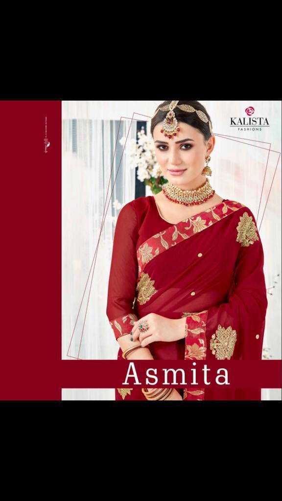 ?KALISTA INDUSTRIES LLP ? ?Catalogue Name - * *ASMITA** ? ? *Price : 675+5% GST* ? ?Fabric : *60 gram Georgette* *Availability - Full set* GST 5 Percent Extra . Delivery from today |