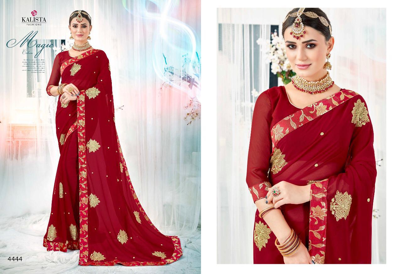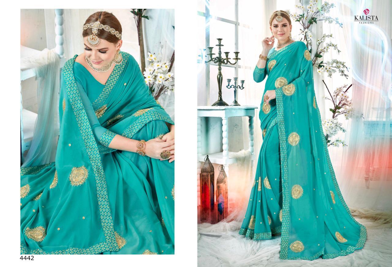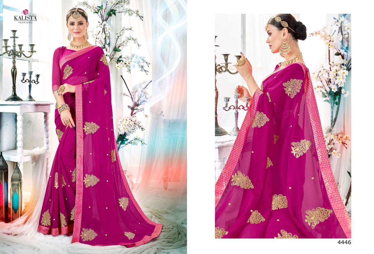 Buy Online Asmita By Kalista Series 4441 Fancy Designer Party Wear Sarees Wholesale Supplier Gujarat 8 Pcs of Full Catalogue at Wholesale Price. Looking for Asmita By Kalista Series 4441 Fancy Designer Party Wear Sarees Wholesale Supplier Gujarat Full Catalouge at Best Price? Buy Now Asmita By Kalista Series 4441 Fancy Designer Party Wear Sarees Wholesale Supplier Gujarat at Wholesale Rate of Rs 5400 with Total 8 Pcs from authroized dealer and supplier of KALISTA FASHION Brand. Cost of Each piece is just only Rs 675 which is very low and affordable price to resale the product in your retail store ,This is Surat based Wholesale Supplier & Dealer of KALISTA FASHION Brand. Click on Brand name to Know more about KALISTA FASHION Brand's products.Call or Whatsapp on 9898838984 for booking or enquiry