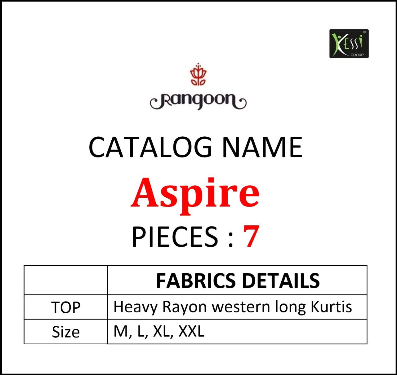 Buy Online Aspire By Rangoon Heavy Reyon Kurtis Wholesale Supplier And Trader Surat 7 Pcs of Full Catalogue at Wholesale Price. Looking for Aspire By Rangoon Heavy Reyon Kurtis Wholesale Supplier And Trader Surat Full Catalouge at Best Price? Buy Now Aspire By Rangoon Heavy Reyon Kurtis Wholesale Supplier And Trader Surat at Wholesale Rate of Rs 3493 with Total 7 Pcs from authroized dealer and supplier of RANGOON Brand. Cost of Each piece is just only Rs 499 which is very low and affordable price to resale the product in your retail store ,This is Surat based Wholesale Supplier & Dealer of RANGOON Brand. Click on Brand name to Know more about RANGOON Brand's products.Call or Whatsapp on 9898838984 for booking or enquiry