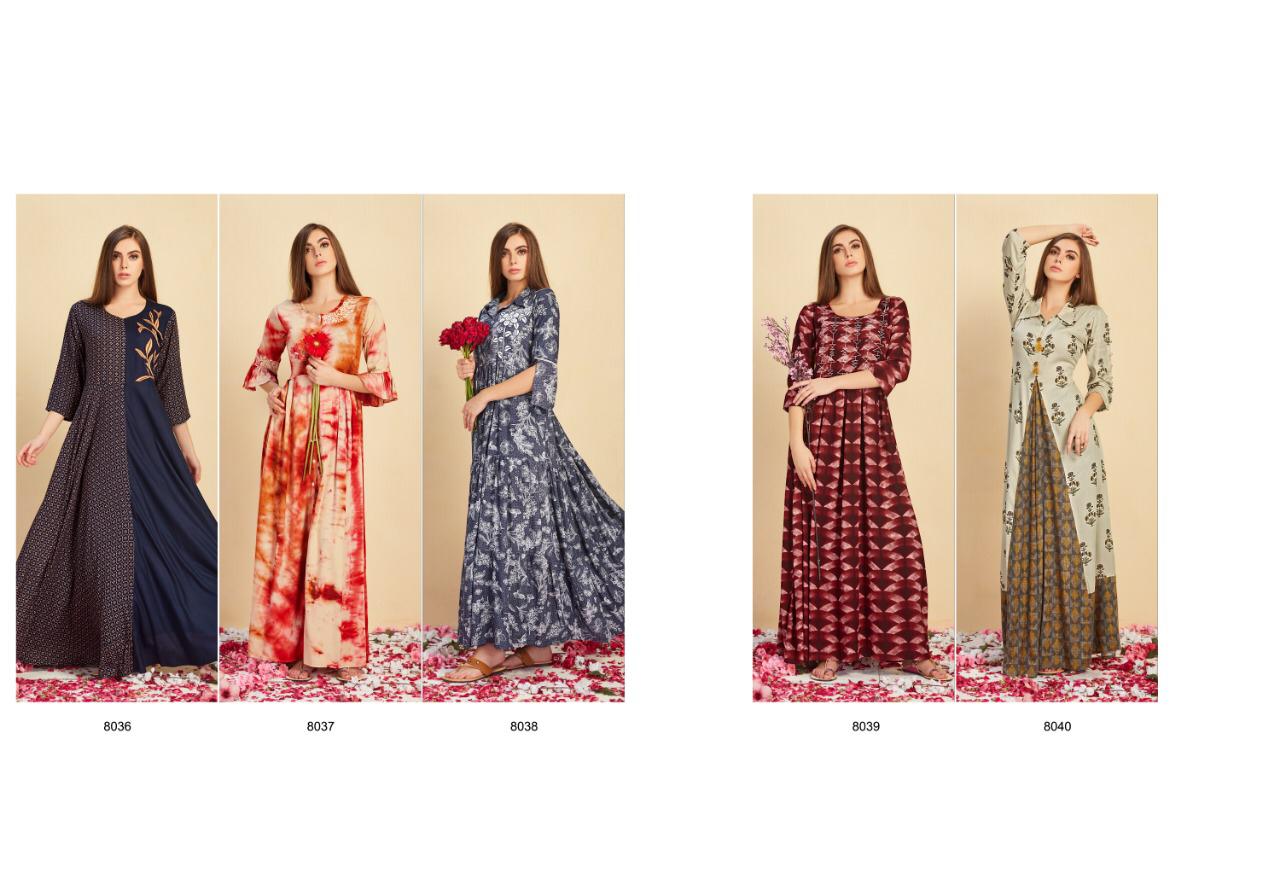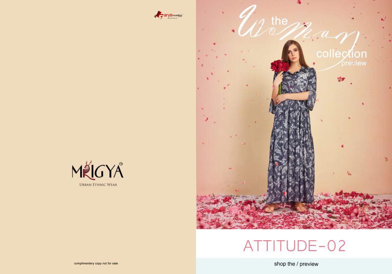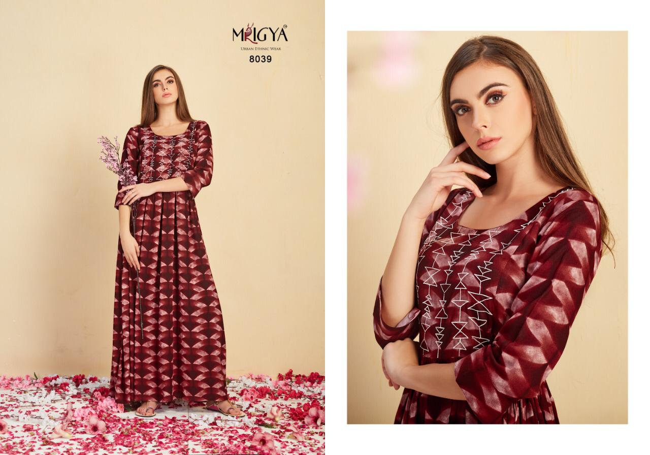 Buy Online Attitude Vol 2 By Mrigya 8036 Series Fancy Designer Gown Style Kurti Catlog Wholesale Dealer Surat 6 Pcs of Full Catalogue at Wholesale Price. Looking for Attitude Vol 2 By Mrigya 8036 Series Fancy Designer Gown Style Kurti Catlog Wholesale Dealer Surat Full Catalouge at Best Price? Buy Now Attitude Vol 2 By Mrigya 8036 Series Fancy Designer Gown Style Kurti Catlog Wholesale Dealer Surat at Wholesale Rate of Rs 5640 with Total 6 Pcs from authroized dealer and supplier of MRIGYA Brand. Cost of Each piece is just only Rs 940 which is very low and affordable price to resale the product in your retail store ,This is Surat based Wholesale Supplier & Dealer of MRIGYA Brand. Click on Brand name to Know more about MRIGYA Brand's products.Call or Whatsapp on 9898838984 for booking or enquiry