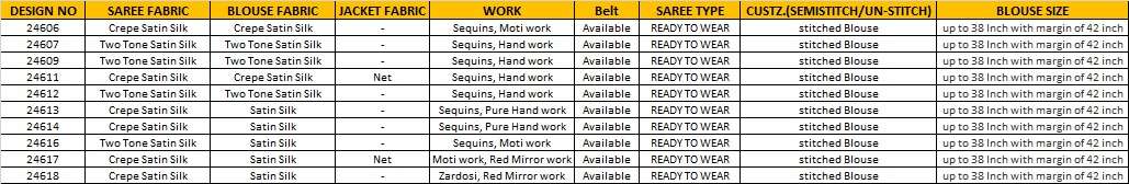 *PRICE :-* *24606-3675/-* *24607-3495/-* *24609-3425/-* *24610-4055/-* *24611-3415/-* *24612-3635/-* *24613-3035/-* *24614-4025/-* *24616-2925/-* *24617-3095/-* *24618-3325/-* +*5% GST EXTRA*