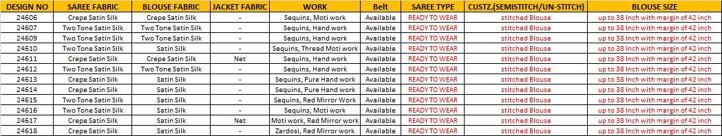 *PRICE :-* *24606-3675/-* *24607-3495/-* *24609-3425/-* *24610-4055/-* *24611-3415/-* *24612-3635/-* *24613-3035/-* *24614-4025/-* *24615-3715/-* *24616-2925/-* *24617-3095/-* *24618-3325/-* +*5% GST EXTRA*
