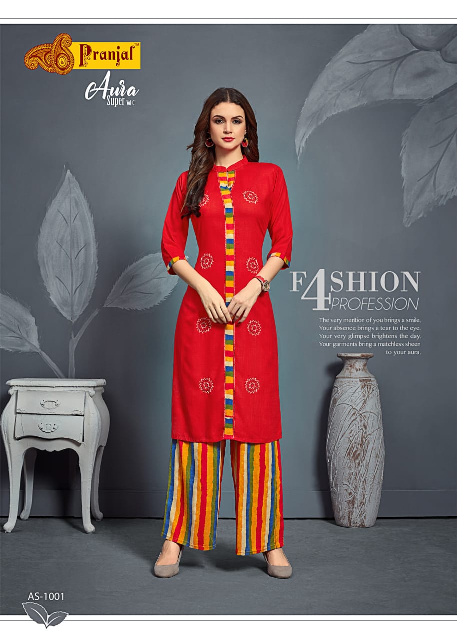 Aura Super Vol 1 By Pranjal Kurtis With Plazzo Wholesale Supplier Nd Dealer Gujarat