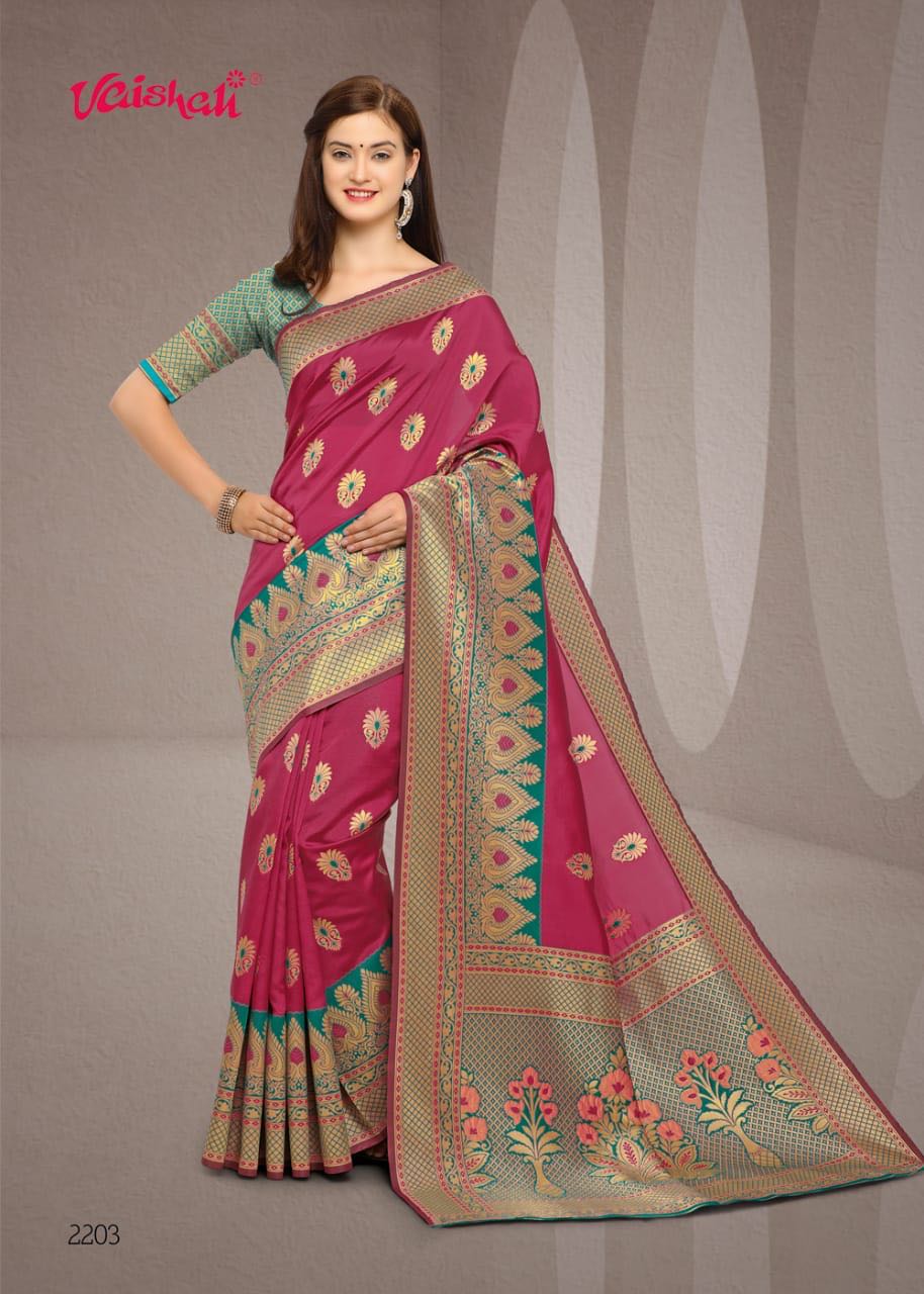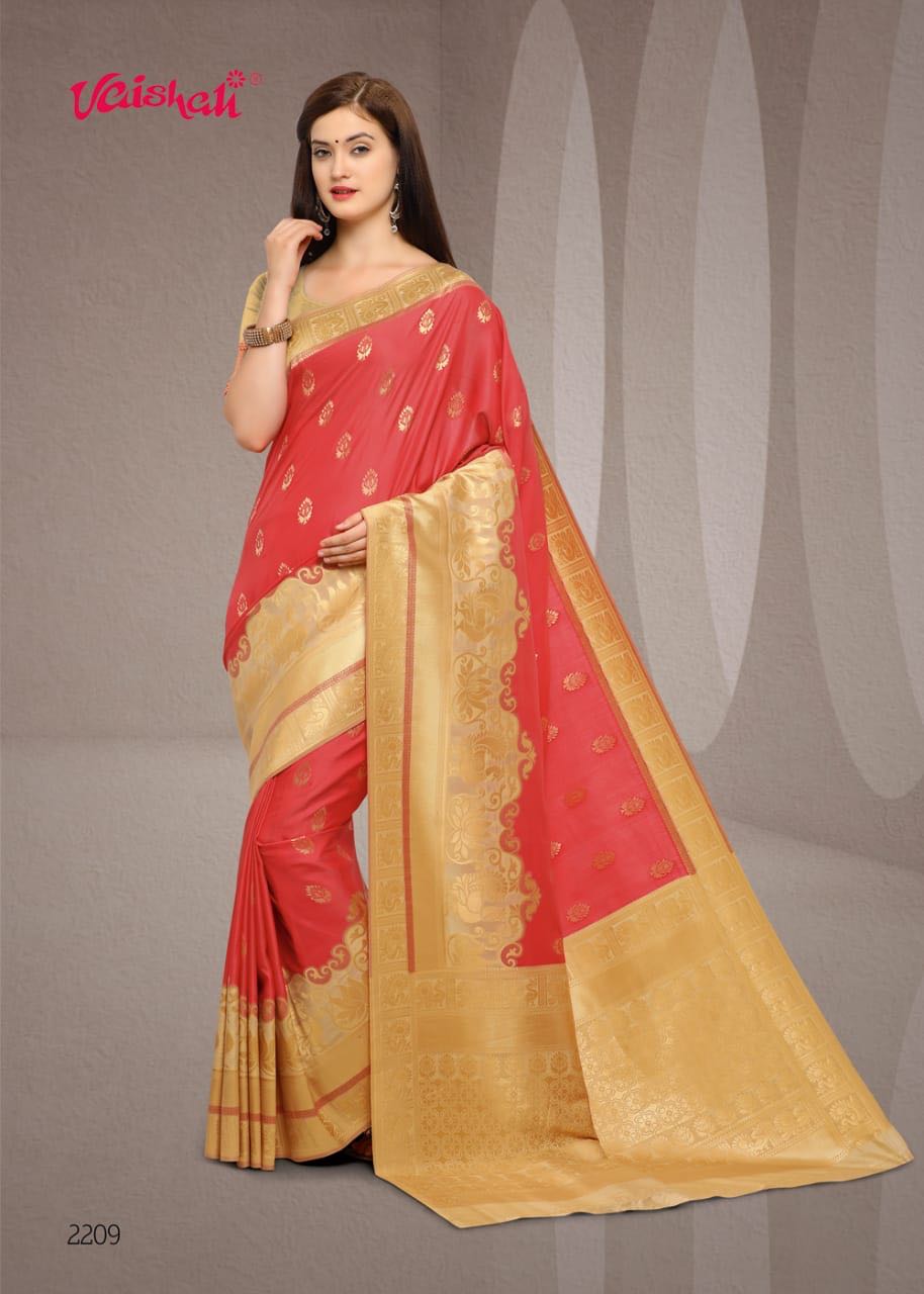 Buy Online Auspicious By Vaishali Series 2201 To 2210 Paithani Silk Designer Sarees Wholesale Supplier And Dealer Gujarat 10 Pcs of Full Catalogue at Wholesale Price. Looking for Auspicious By Vaishali Series 2201 To 2210 Paithani Silk Designer Sarees Wholesale Supplier And Dealer Gujarat Full Catalouge at Best Price? Buy Now Auspicious By Vaishali Series 2201 To 2210 Paithani Silk Designer Sarees Wholesale Supplier And Dealer Gujarat at Wholesale Rate of Rs 13350 with Total 10 Pcs from authroized dealer and supplier of VAISHALI FASHION Brand. Cost of Each piece is just only Rs 1335 which is very low and affordable price to resale the product in your retail store ,This is Surat based Wholesale Supplier & Dealer of VAISHALI FASHION Brand. Click on Brand name to Know more about VAISHALI FASHION Brand's products.Call or Whatsapp on 9898838984 for booking or enquiry