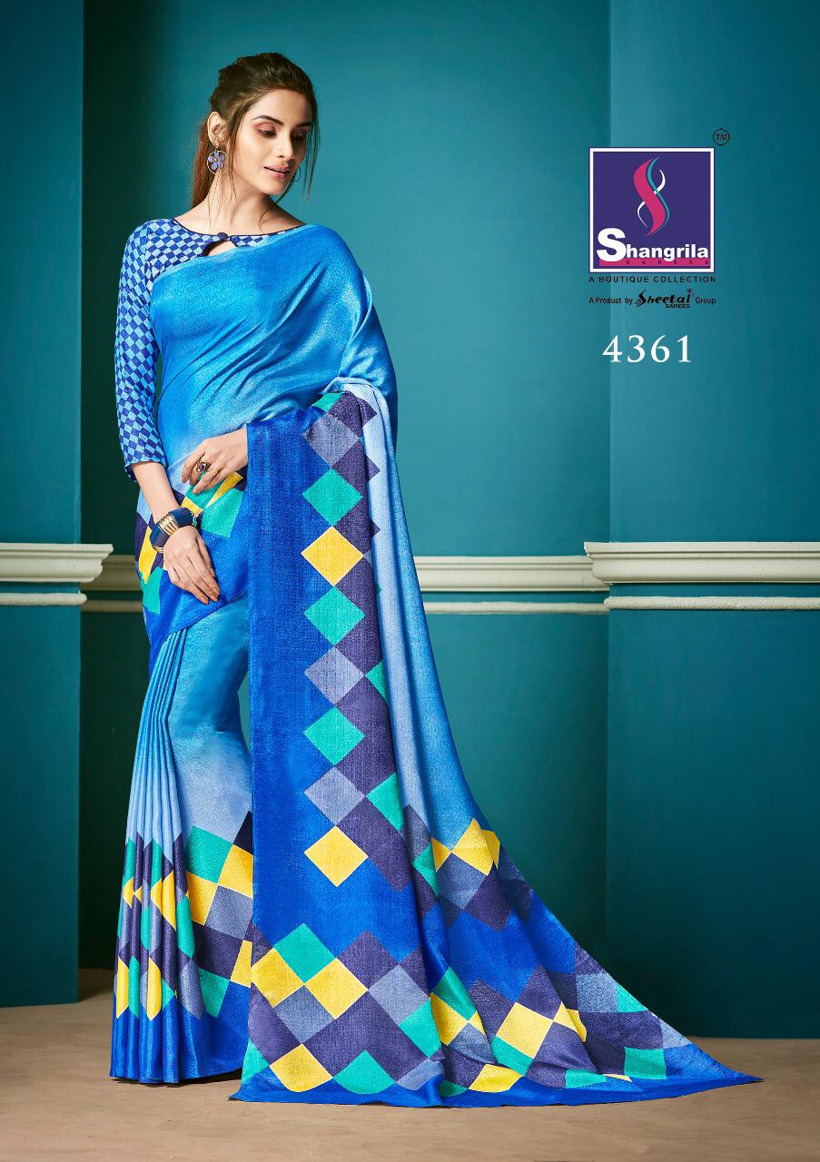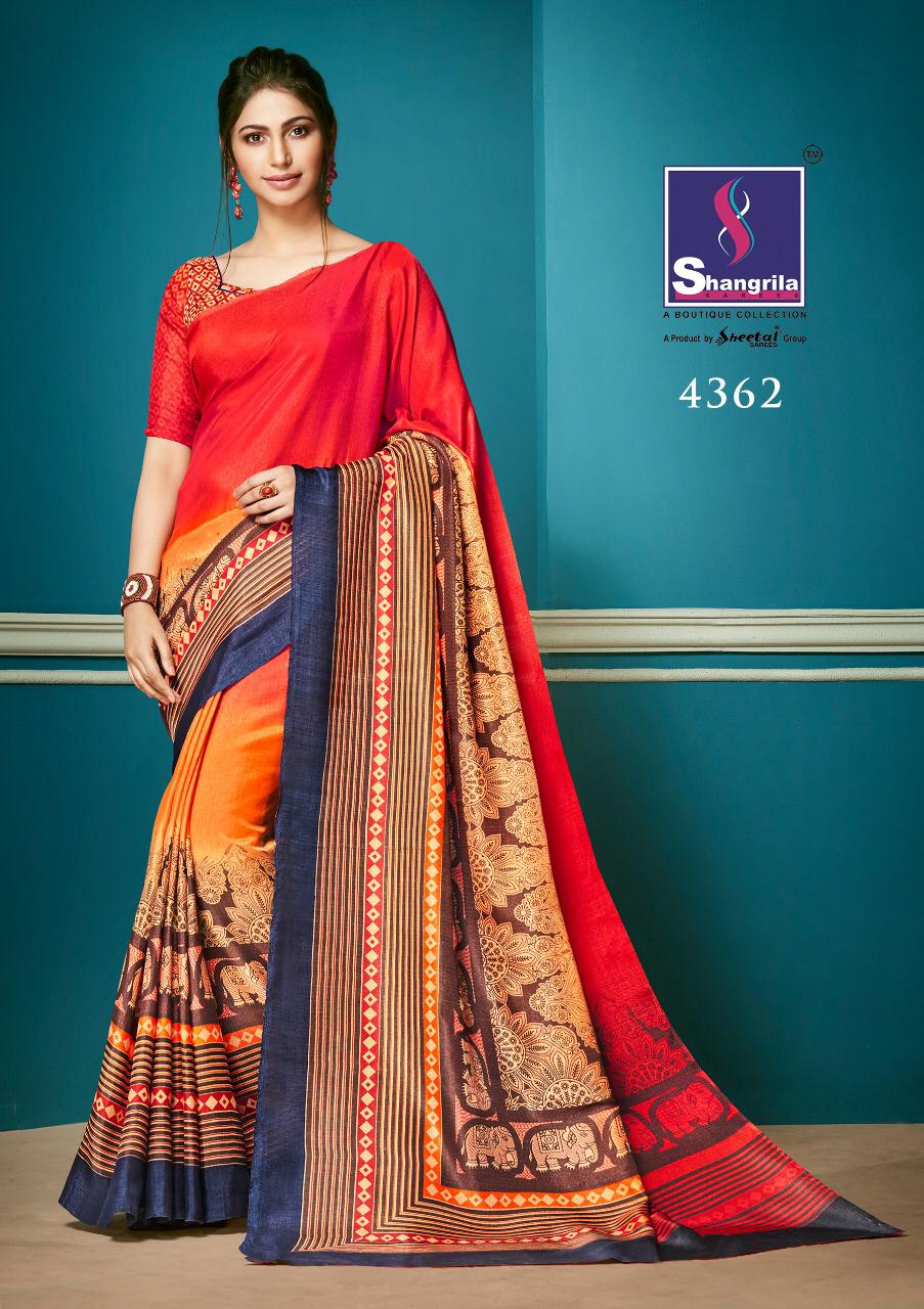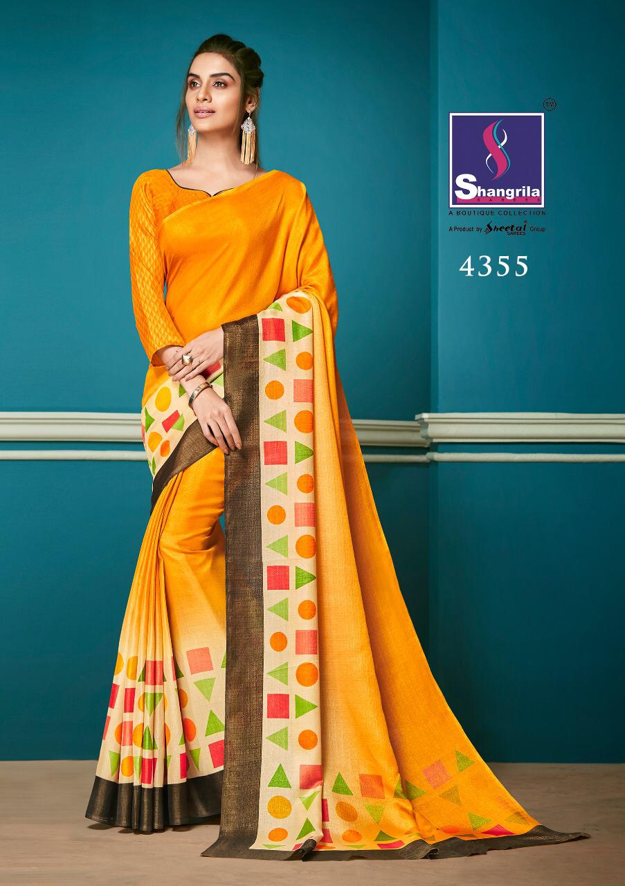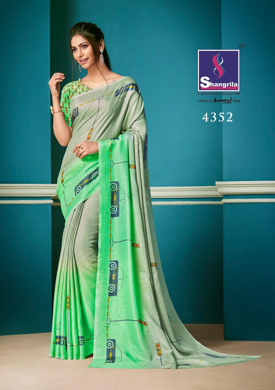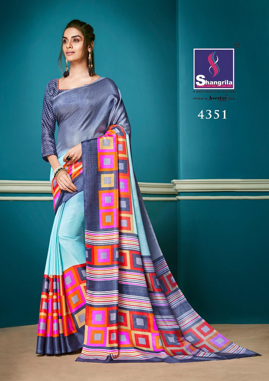 Buy Online Autograph By Shangrila 4351 Series Fancy Silky Printed Saree Catlog Wholesale Dealer Surat 12 Pcs of Full Catalogue at Wholesale Price. Looking for Autograph By Shangrila 4351 Series Fancy Silky Printed Saree Catlog Wholesale Dealer Surat Full Catalouge at Best Price? Buy Now Autograph By Shangrila 4351 Series Fancy Silky Printed Saree Catlog Wholesale Dealer Surat at Wholesale Rate of Rs 7080 with Total 12 Pcs from authroized dealer and supplier of SHANGRILA Brand. Cost of Each piece is just only Rs 590 which is very low and affordable price to resale the product in your retail store ,This is Surat based Wholesale Supplier & Dealer of SHANGRILA Brand. Click on Brand name to Know more about SHANGRILA Brand's products.Call or Whatsapp on 9898838984 for booking or enquiry