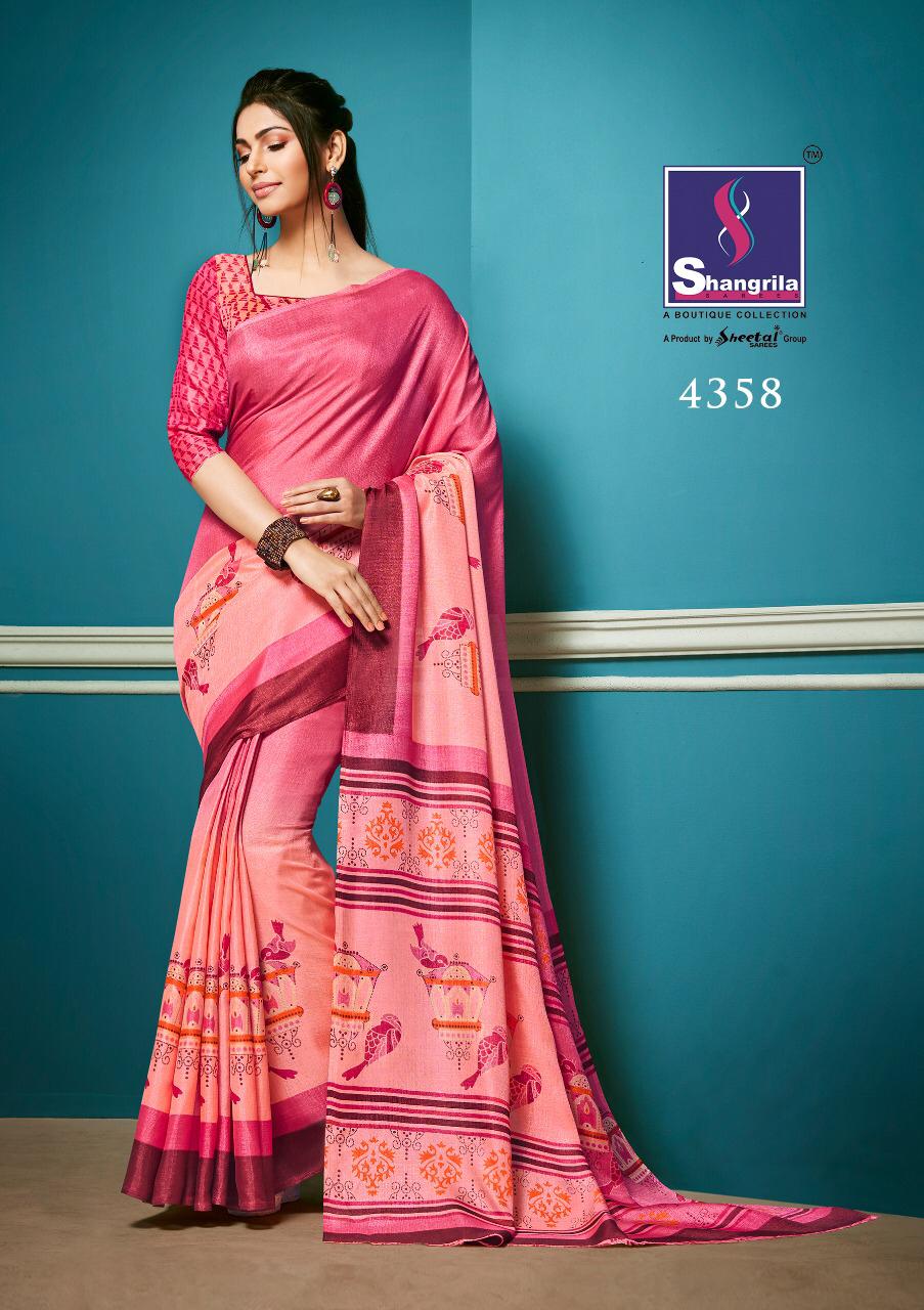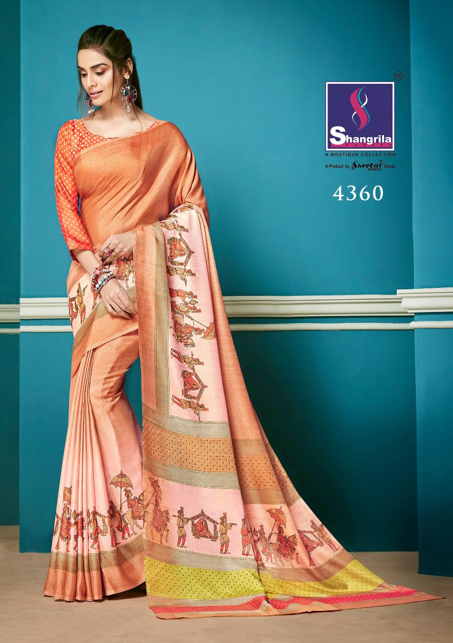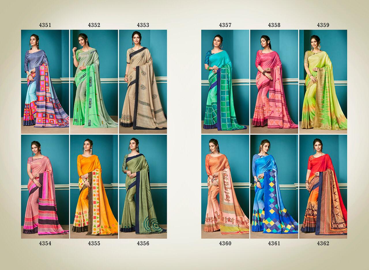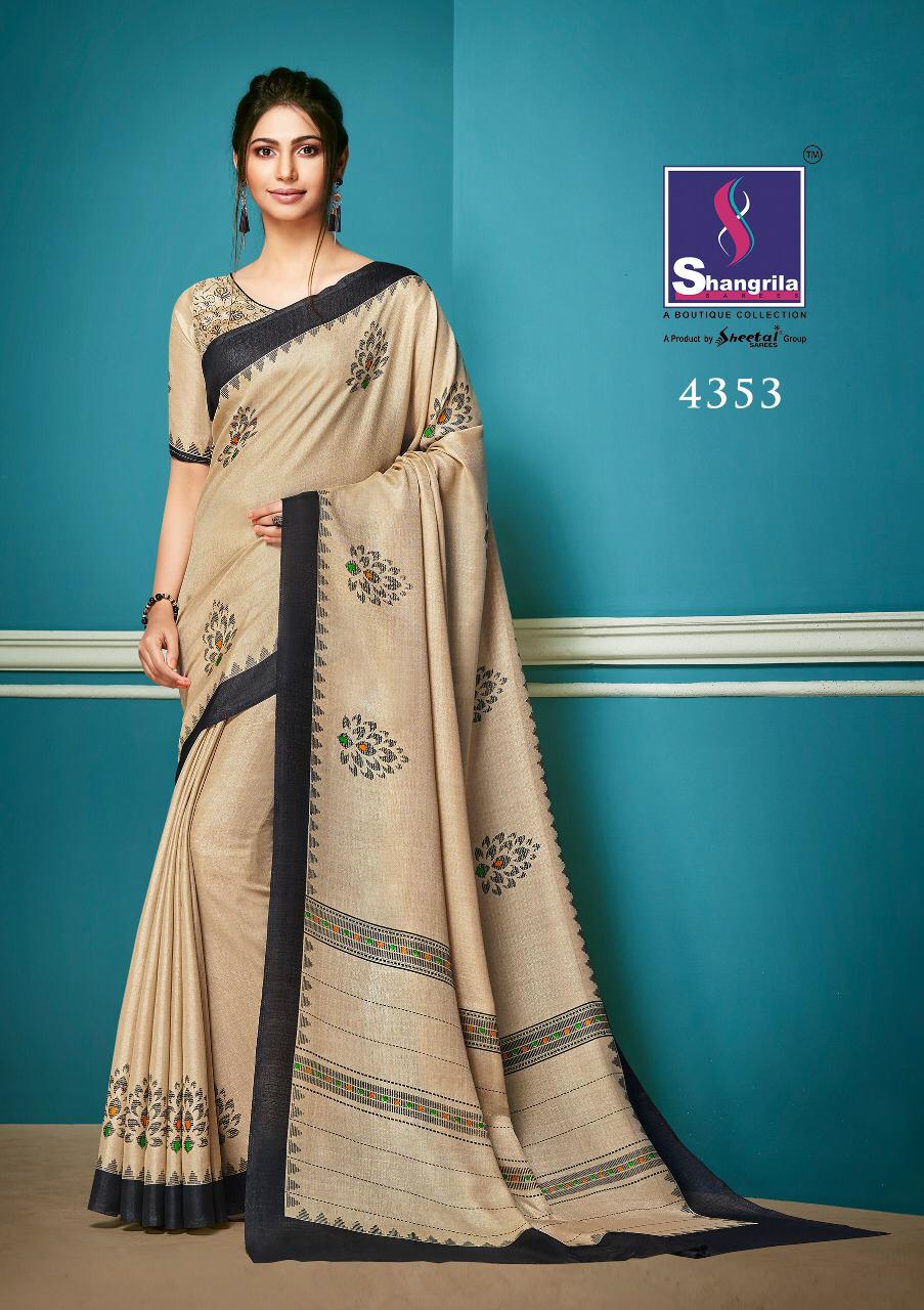 Buy Online Autograph By Shangrila 4351 Series Fancy Silky Printed Saree Catlog Wholesale Dealer Surat 12 Pcs of Full Catalogue at Wholesale Price. Looking for Autograph By Shangrila 4351 Series Fancy Silky Printed Saree Catlog Wholesale Dealer Surat Full Catalouge at Best Price? Buy Now Autograph By Shangrila 4351 Series Fancy Silky Printed Saree Catlog Wholesale Dealer Surat at Wholesale Rate of Rs 7080 with Total 12 Pcs from authroized dealer and supplier of SHANGRILA Brand. Cost of Each piece is just only Rs 590 which is very low and affordable price to resale the product in your retail store ,This is Surat based Wholesale Supplier & Dealer of SHANGRILA Brand. Click on Brand name to Know more about SHANGRILA Brand's products.Call or Whatsapp on 9898838984 for booking or enquiry