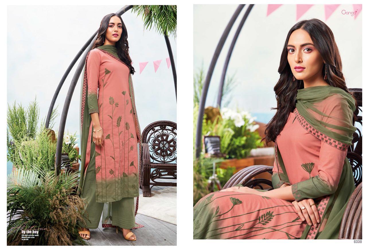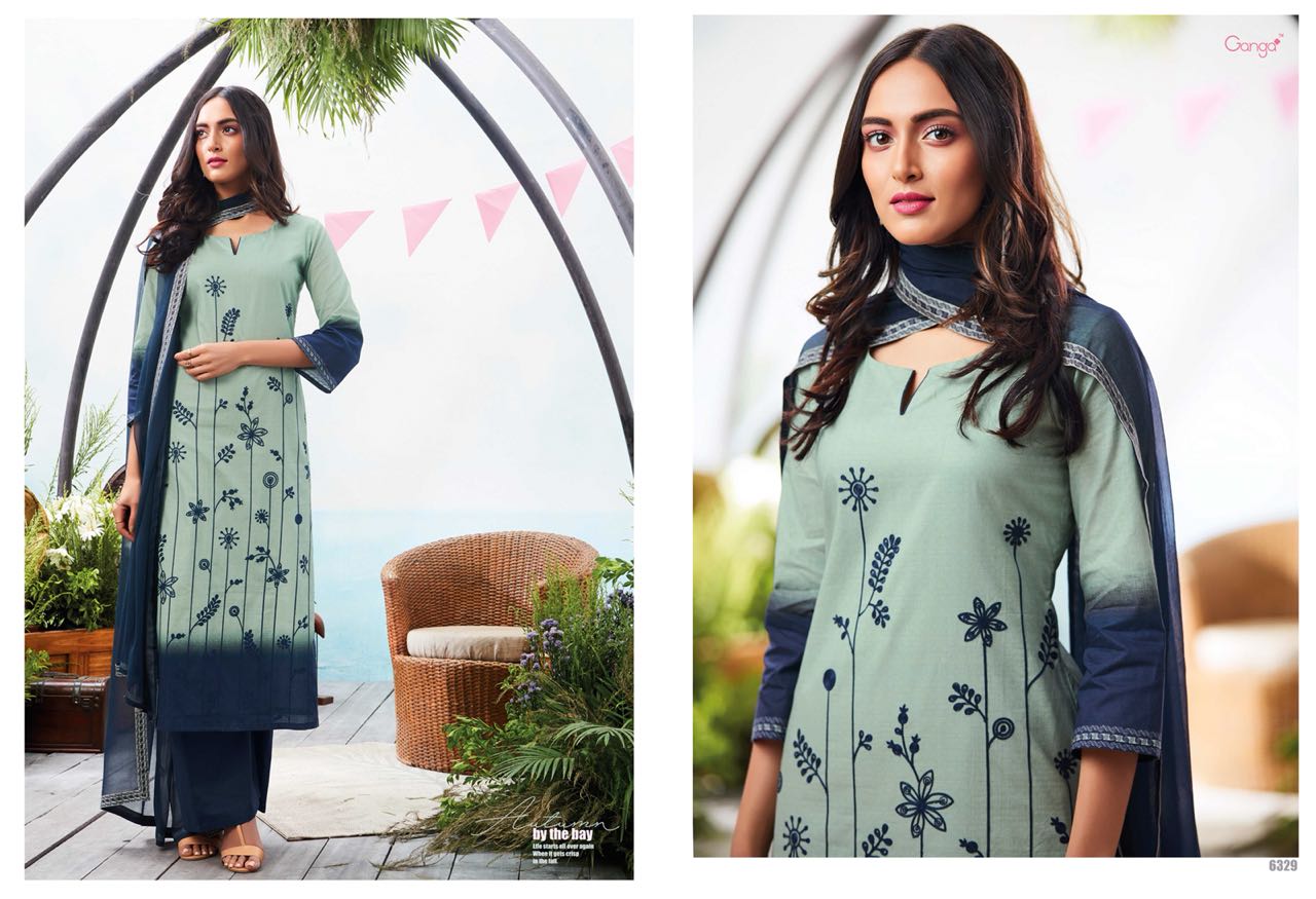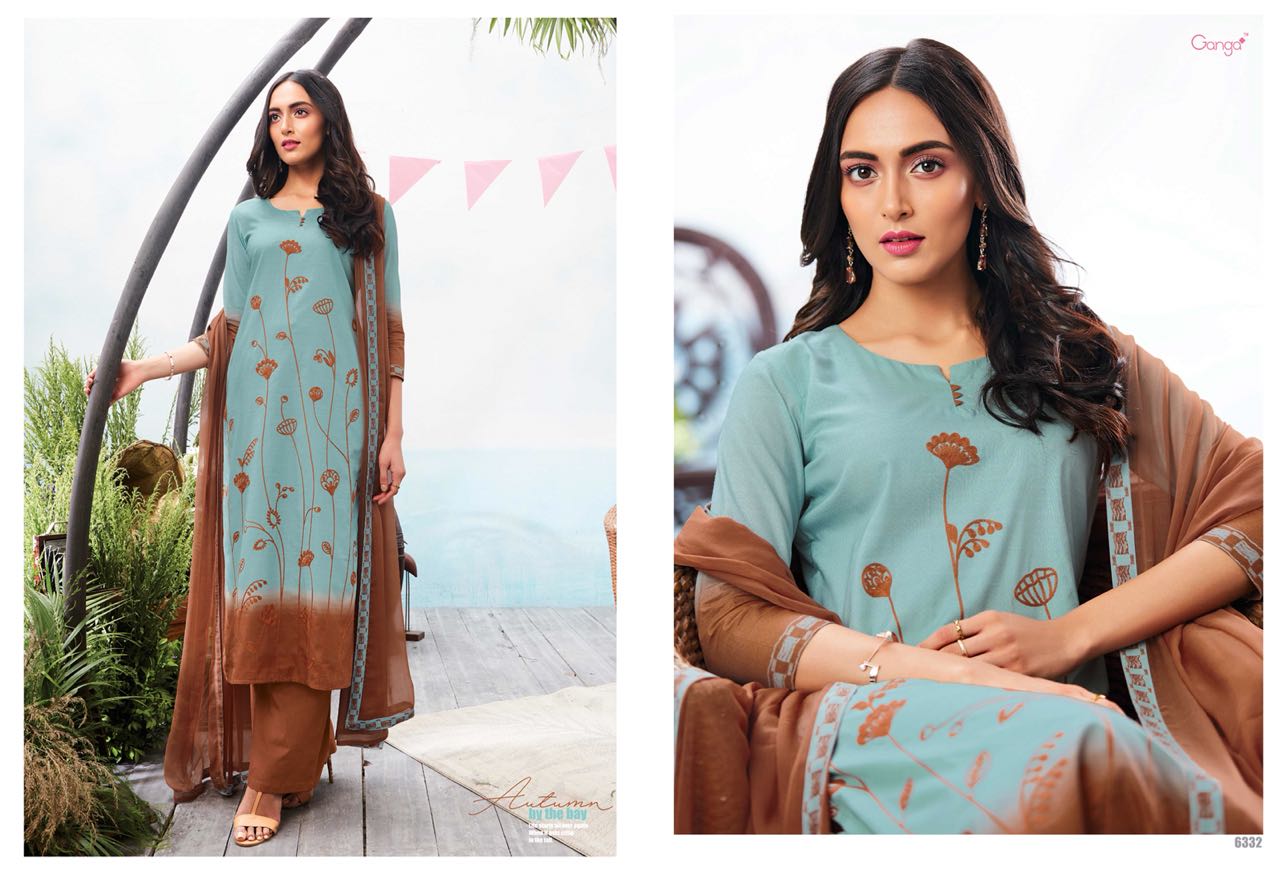 *GANGA* _Autumn by the bay_ Top superior cottton printed with extra sleeves with Emb Bottom cotton solid Dupatta bemberg chiffon solid with four side printed border 5%GST APPLICABLE ONLY SET TO SET DELIVERY WITHIN 2 DAYS |