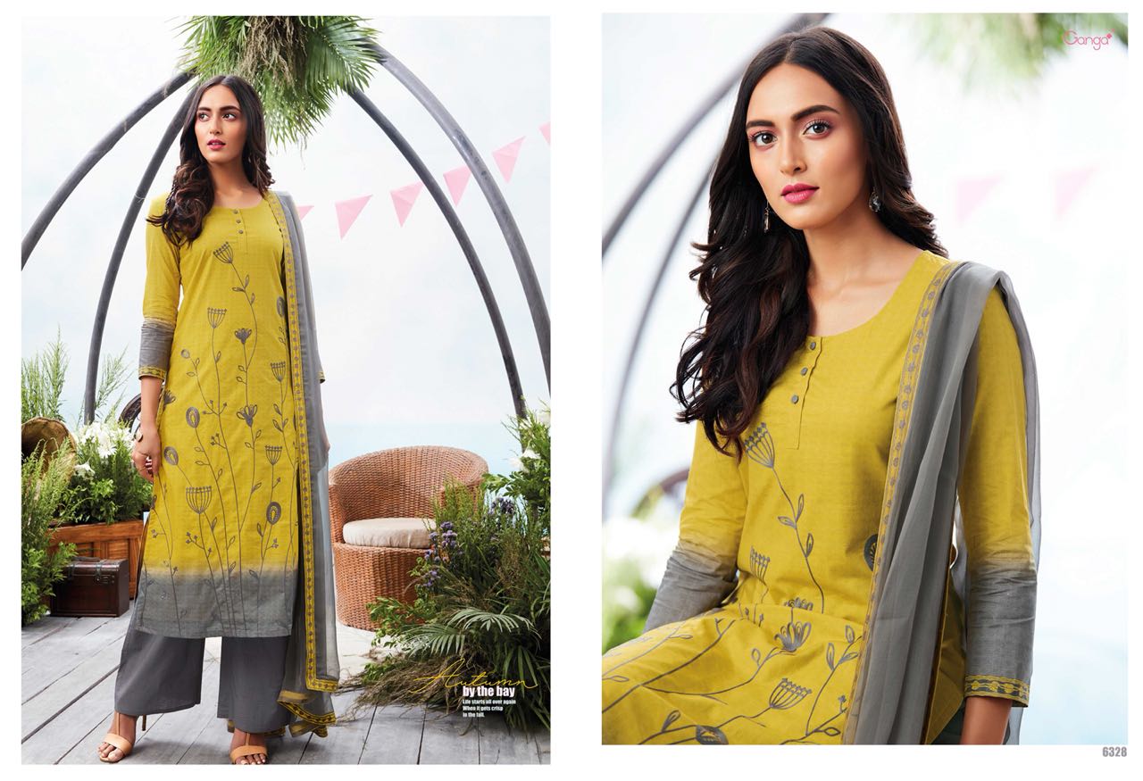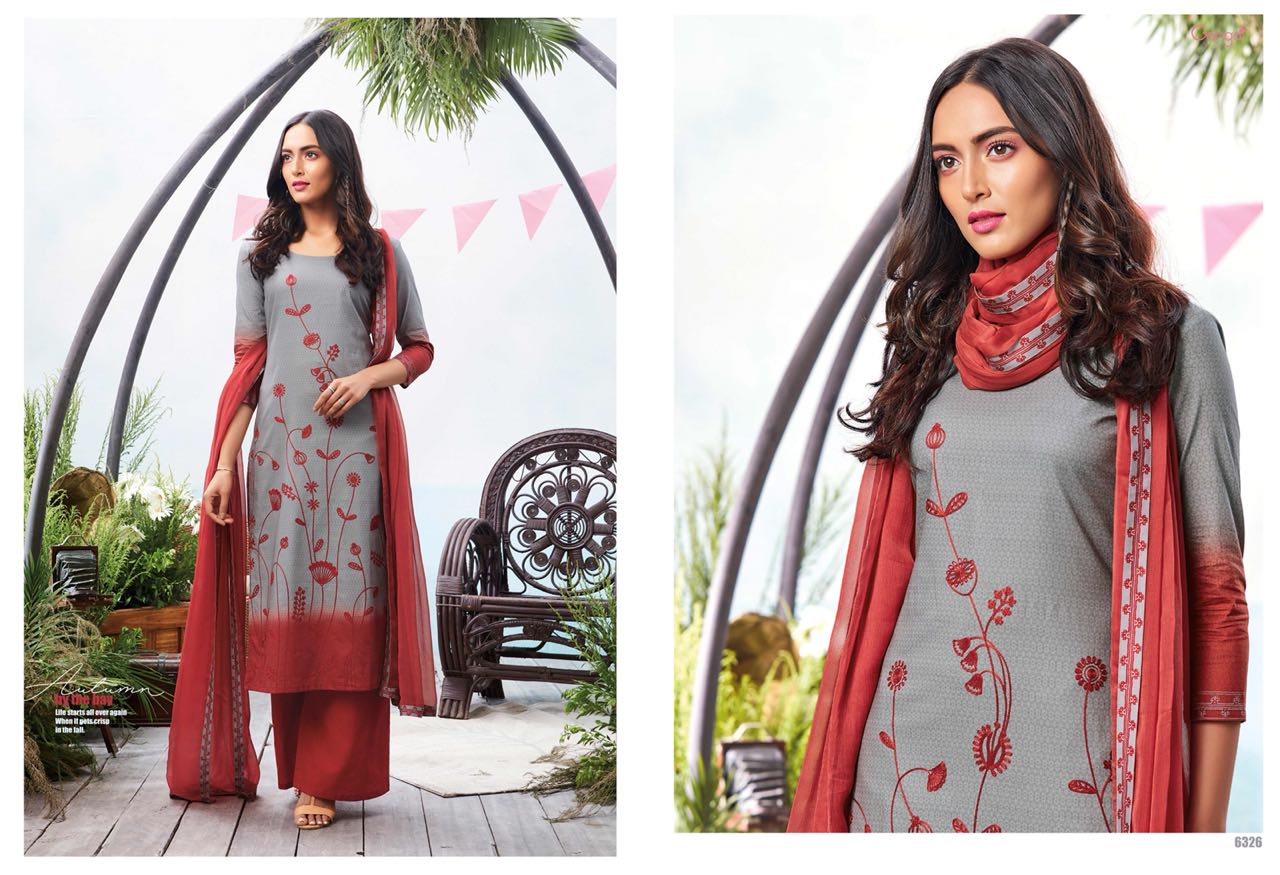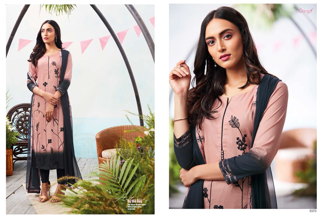 *GANGA* _Autumn by the bay_ Top superior cottton printed with extra sleeves with Emb Bottom cotton solid Dupatta bemberg chiffon solid with four side printed border 5%GST APPLICABLE ONLY SET TO SET DELIVERY WITHIN 2 DAYS |
