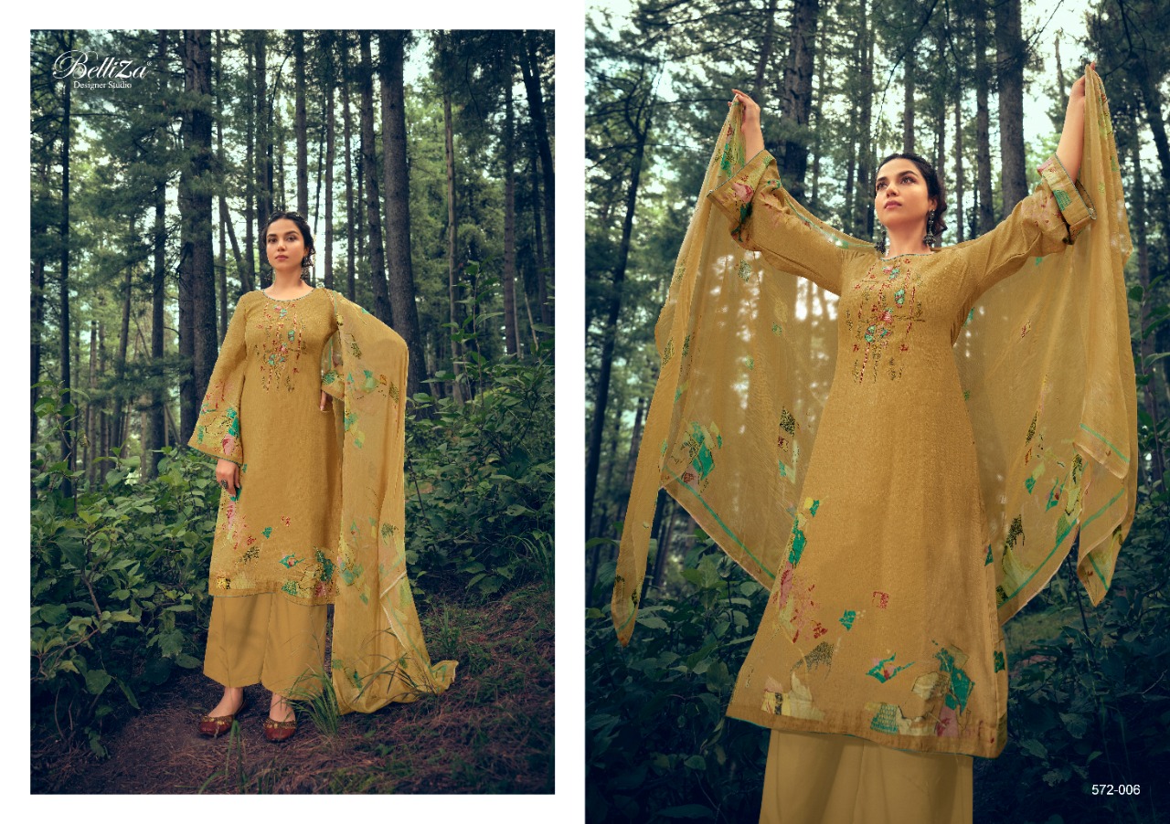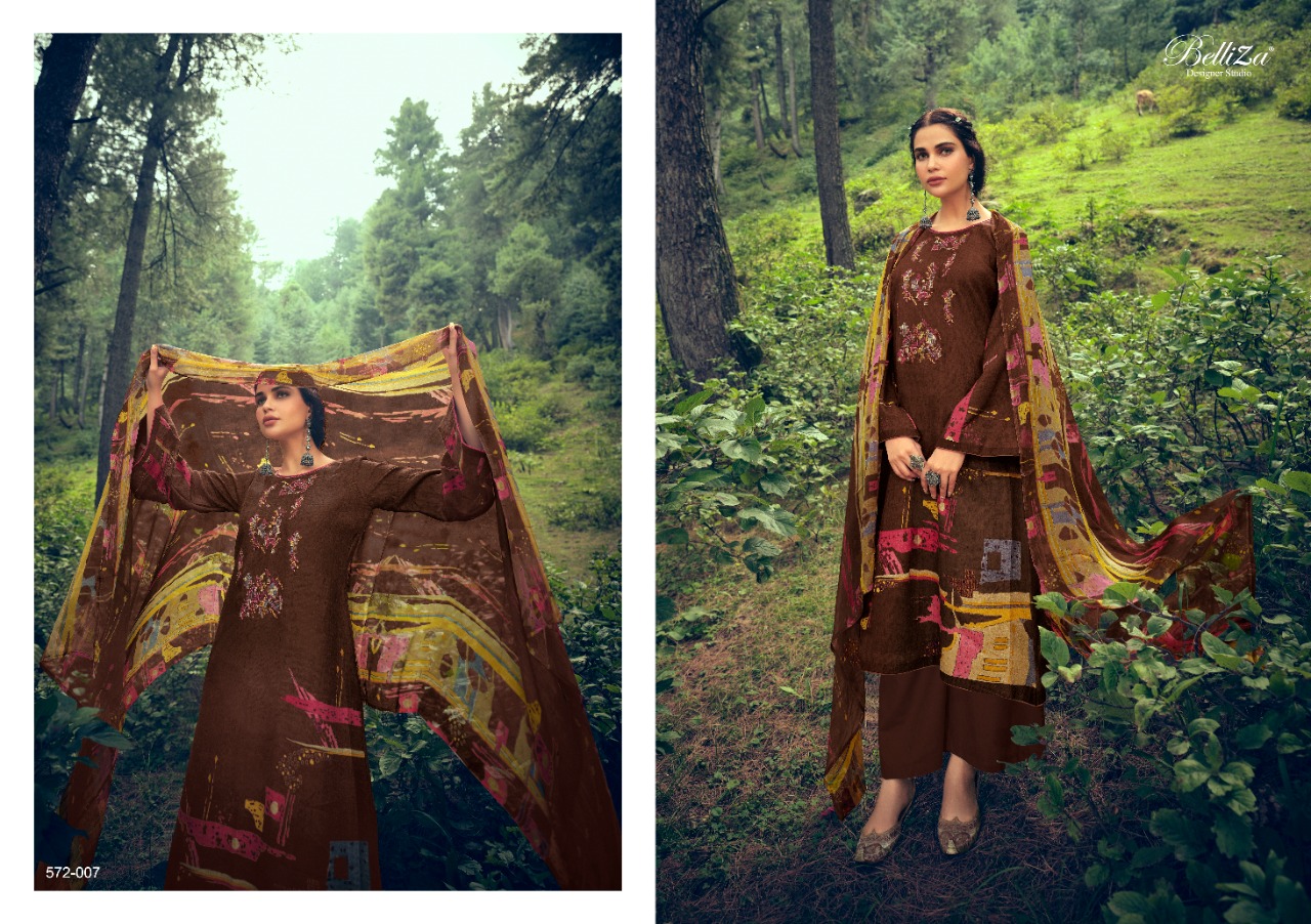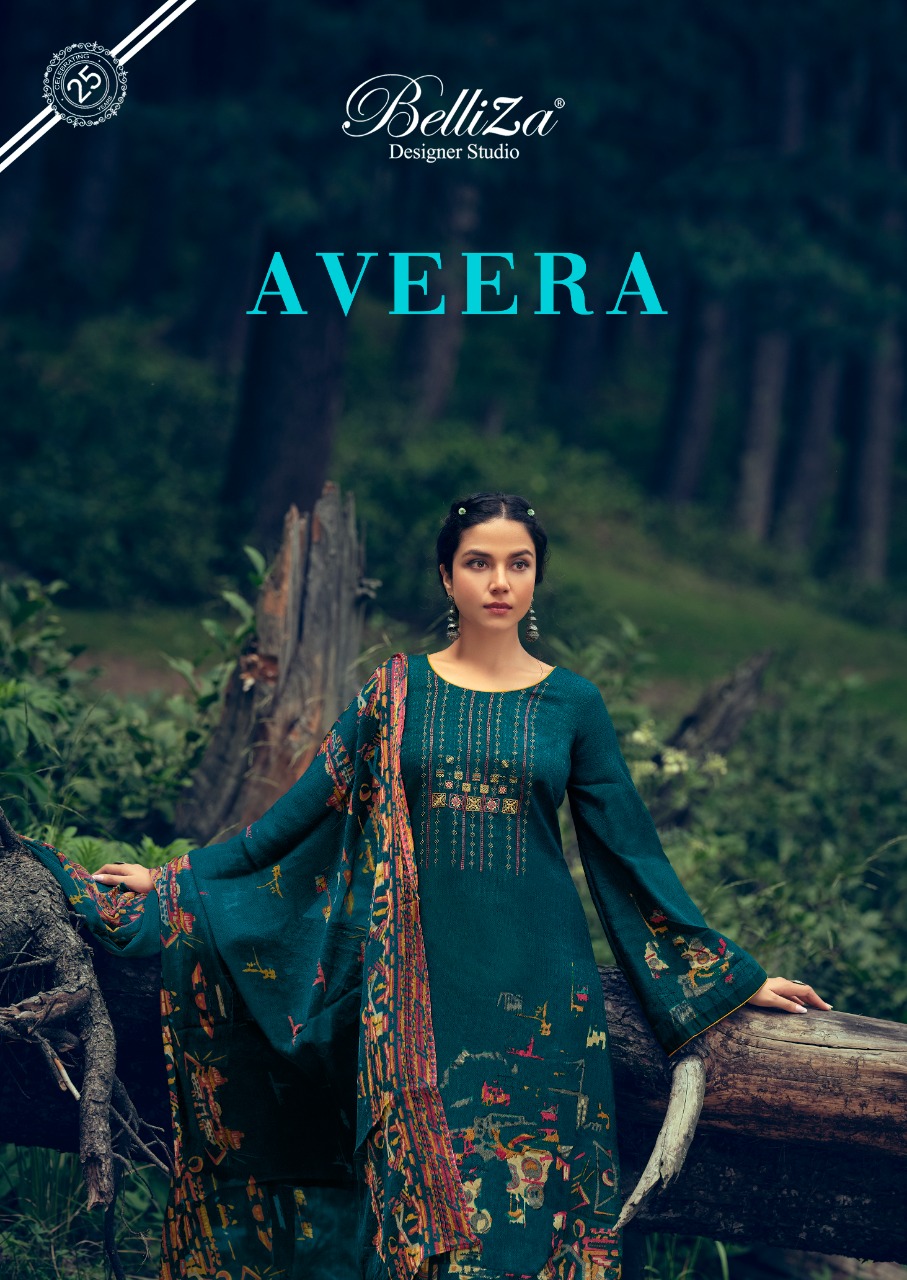 # BELLIZA # PURE DUPATTA # EXOTIC DESIGNS # UNBEATABLE COLORS _*......BelliZa DesigNer StuDio......*_ _presents_ *"AVEERA"* _...digital woollen collection..._ ?Top: 100% Pure Pashmina with Exclusive Heavy Embroidery. (2.50 mtrs) ?Dupatta: 100% Pure Bemberg 'Pure Dupatta'. (2.30 mtr) ?Bottom: Pure Pashmina Spun. (3 mtrs) ?Pcs: 10 ? Rate: 650/- # Book Now |