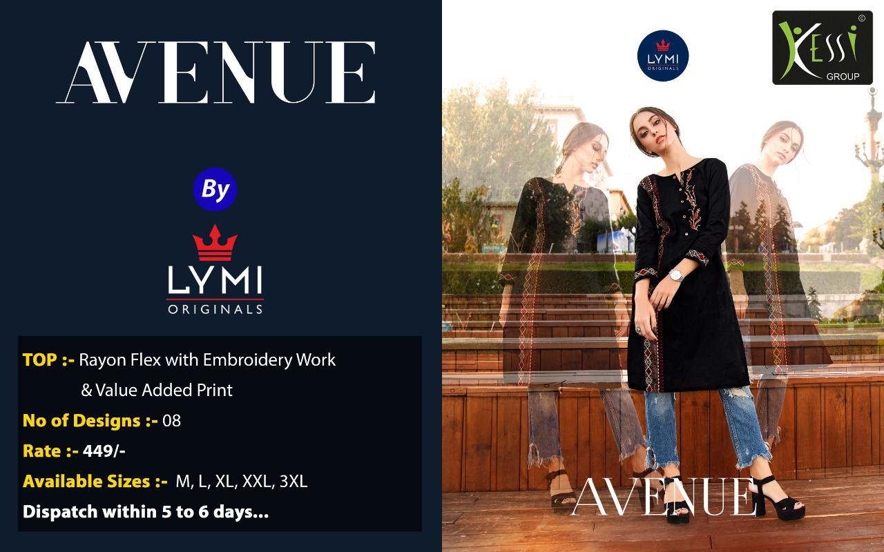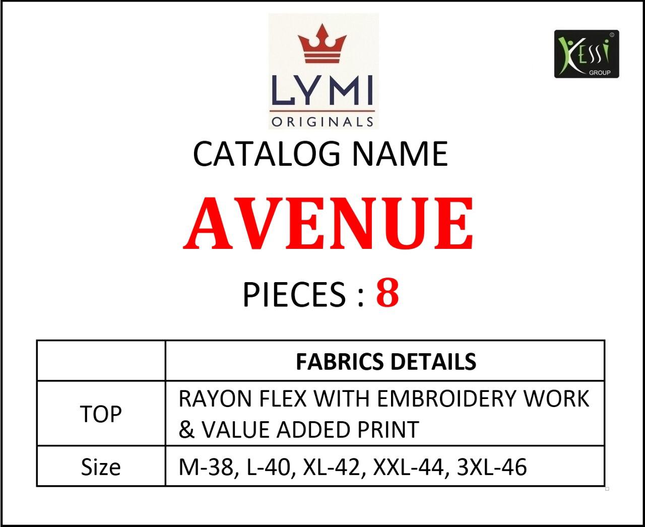 ? *LYMI (Kessi Fabrics Pvt. Ltd.)* has launched _Catalog name_ : *AVENUE* ? _Fabric Details_ ? ?Top:- Rayon Flex with Embroidery Work & Value Added Print ?Total Design:- 8 Rate - 449 per Pcs . Set to set : GST 5 Percent Extra. ?Size;- M, L, XL, XXL, 3XL ?Dispatching 1 to 2 days later ?Booking started from now... ?Order yours soon.... |
