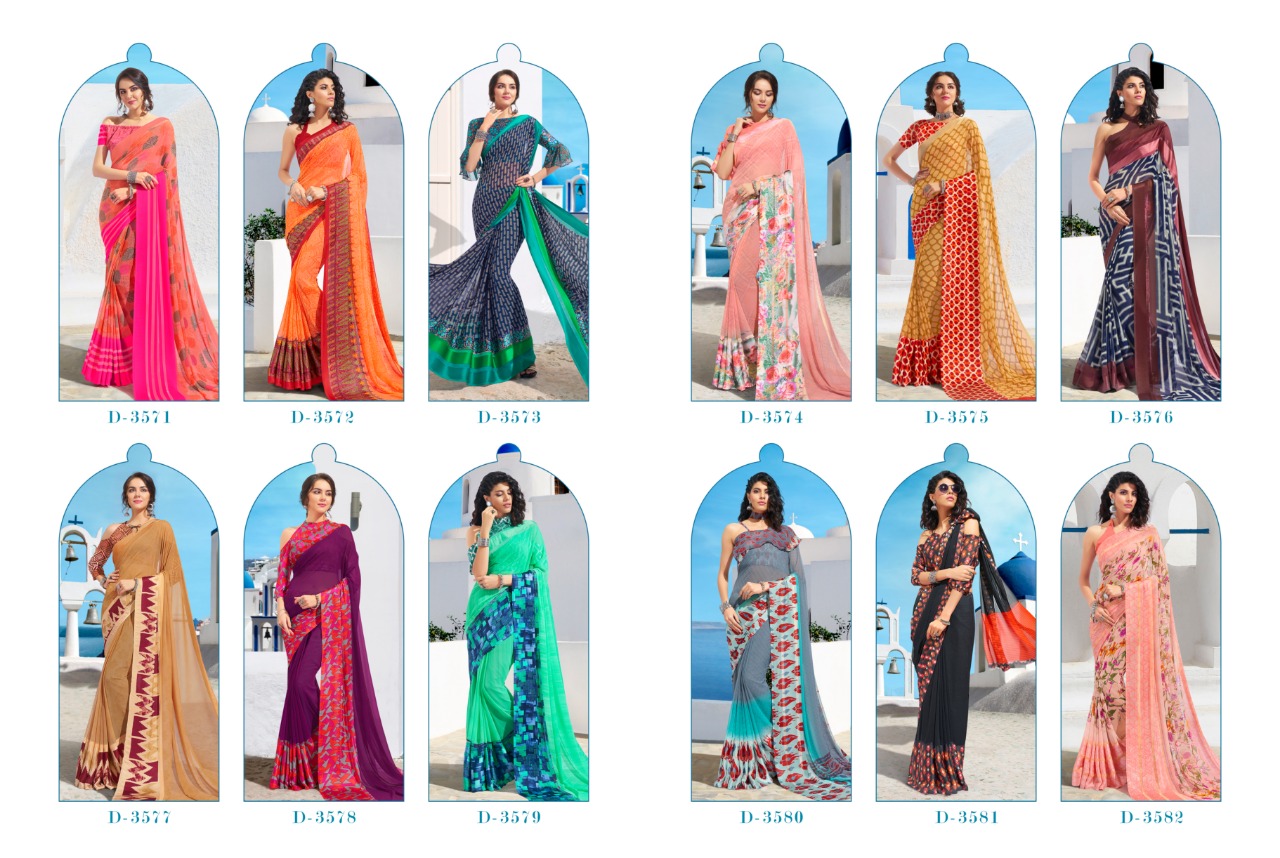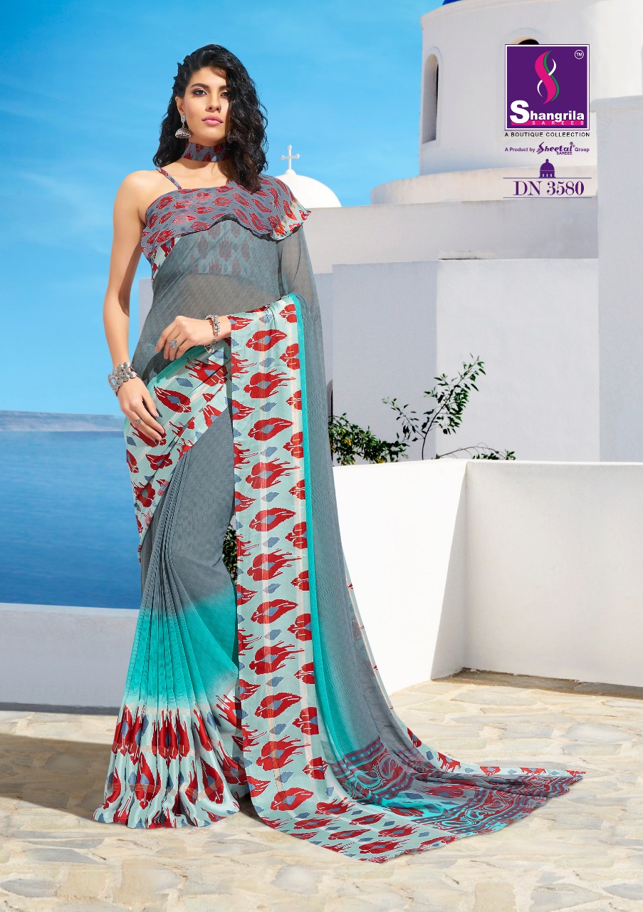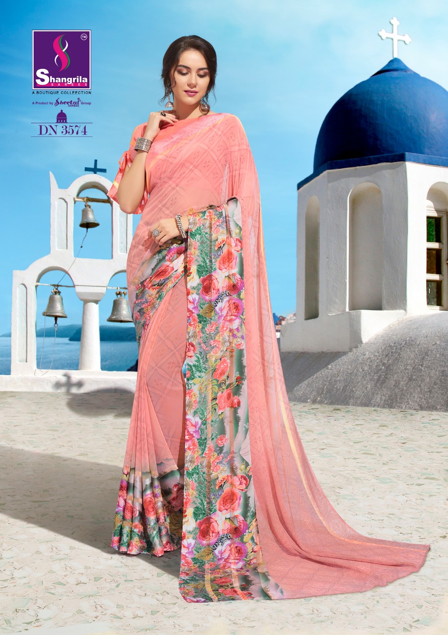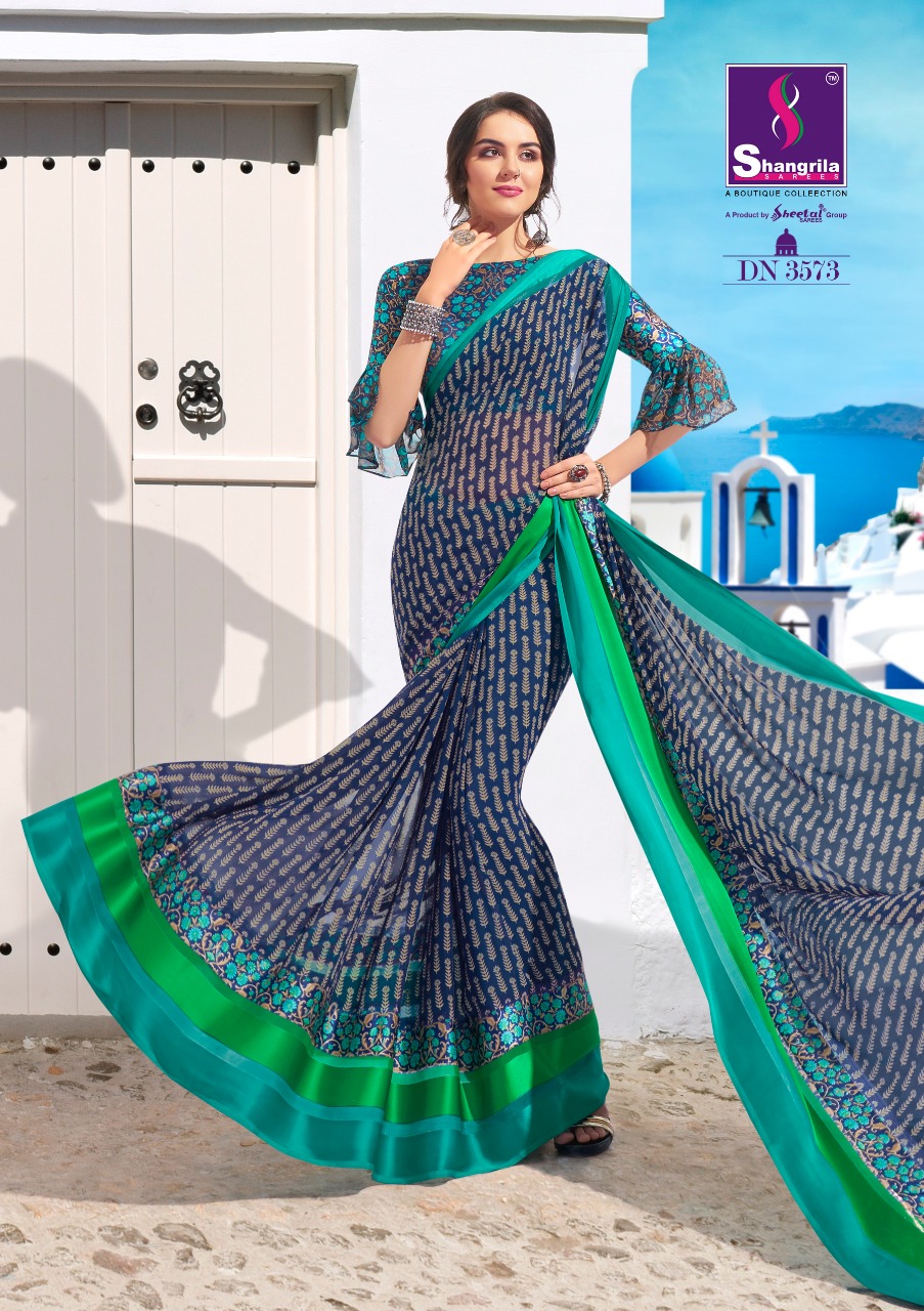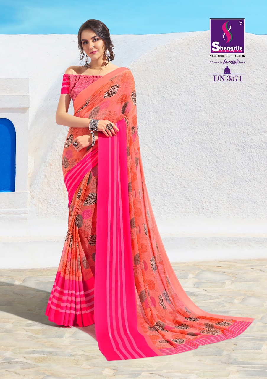 Buy Online Ayaana By Shangrila 3571 Series Fancy Georgette With Satin Border Printed Saree Catlog Wholesale Dealer And Supplier Surat 12 Pcs of Full Catalogue at Wholesale Price. Looking for Ayaana By Shangrila 3571 Series Fancy Georgette With Satin Border Printed Saree Catlog Wholesale Dealer And Supplier Surat Full Catalouge at Best Price? Buy Now Ayaana By Shangrila 3571 Series Fancy Georgette With Satin Border Printed Saree Catlog Wholesale Dealer And Supplier Surat at Wholesale Rate of Rs 6300 with Total 12 Pcs from authroized dealer and supplier of SHANGRILA Brand. Cost of Each piece is just only Rs 525 which is very low and affordable price to resale the product in your retail store ,This is Surat based Wholesale Supplier & Dealer of SHANGRILA Brand. Click on Brand name to Know more about SHANGRILA Brand's products.Call or Whatsapp on 9898838984 for booking or enquiry