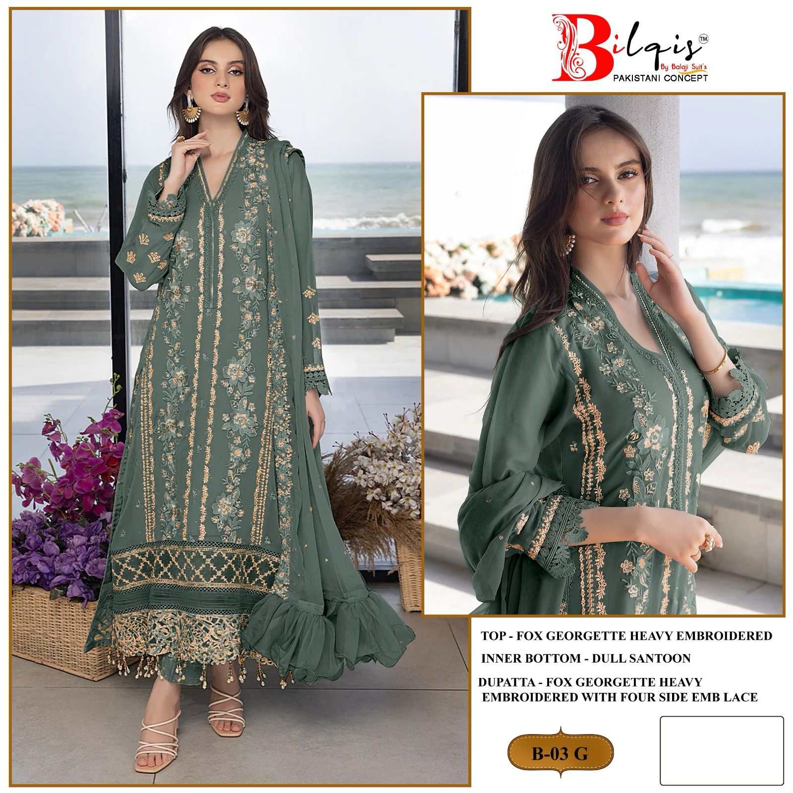 B 03 E To H By Bilqis Georgette Pakistani Suits